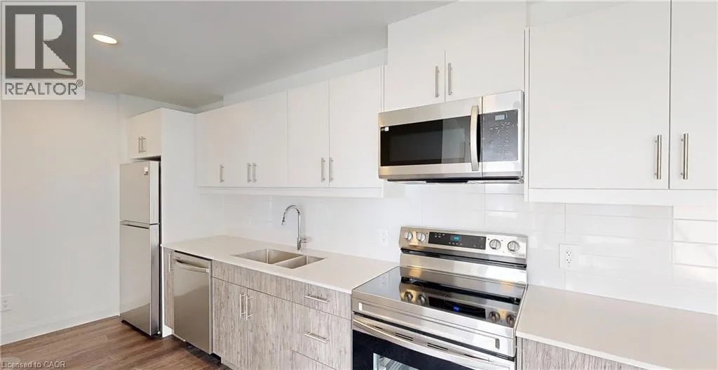 DISCOVER WEBER YARDS â Kitchenerâs newest 15-storey condominium, centrally located in Waterloo Region with quick access to Highways 7/8 and 401. Underground parking and storage locker included. Brand-new 1- and 2-bedroom suites available with flexible spring move-in. Minutes to Fairview Park Mall, public transit, and everyday essentials including Zehrs, Dollarama, Shoppers Drug Mart, Tim Hortons, Bulk Barn, FreshCo, and more. Amenities include 24/7 concierge, lobby lounge, fitness studio, co-working space, dog wash station, party room with kitchen, dining area, and lounge, plus underground parking, storage lockers, and bike storage. Suite 1205: Spacious 2-bed, 2-bath suite offering 1020 sq. ft. of interior living space. Modern kitchen features two-tone cabinetry (white uppers, dark lowers), quartz countertops, ceramic tile backsplash, and new stainless steel appliances. Luxury vinyl plank flooring flows seamlessly throughout the suite, while oversized windows flood the space with natural light. Includes in-suite laundry and custom window coverings/roller shades. Excellent credit and full application required. Tenant responsible for utilities. Book your showing today to explore all available options. (id:27476)