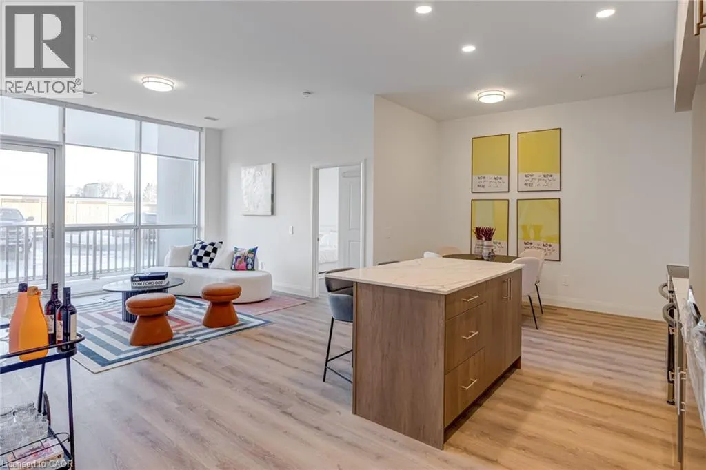 Take Fergus Ave to back of building to access the lobby. DISCOVER WEBER YARDS â Kitchenerâs newest 15-storey condominium, centrally located in Waterloo Region with quick access to Highways 7/8 and 401. Underground parking and storage locker included. Brand-new 1- and 2-bedroom suites available with flexible spring move-in. Minutes to Fairview Park Mall, public transit, and everyday essentials including Zehrs, Dollarama, Shoppers Drug Mart, Tim Hortons, Bulk Barn, FreshCo, and more. Amenities include 24/7 concierge, lobby lounge, fitness studio, co-working space, dog wash station, party room with kitchen, dining and lounge, plus underground parking, storage lockers, and bike storage. Suite 111: Bright 2-bedroom + den showstopper offering 1316 sq. ft. of beautifully designed living space. The open-concept kitchen, living, and dining area is perfect for entertaining, featuring premium cabinetry, stunning quartz countertops, ceramic tile backsplash, large island with breakfast bar, and new stainless steel appliances. Both bedrooms easily fit king-size beds and feature spacious walk-in closets. Custom window coverings/roller shades included. Excellent credit and full application required. Tenant responsible for utilities. Book your showing today to explore all available options. (id:27476)