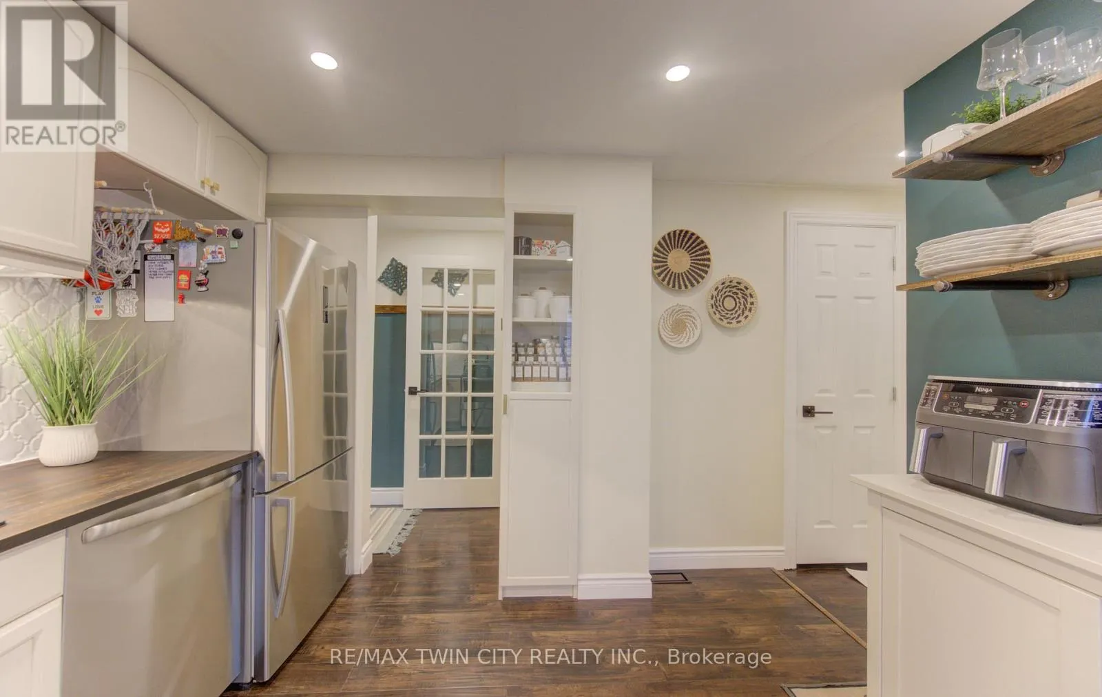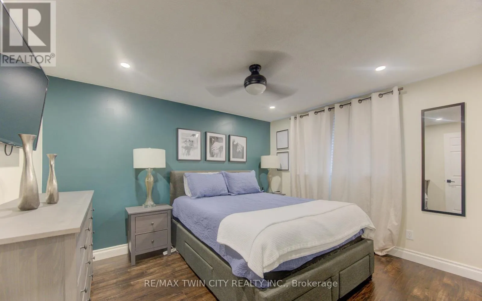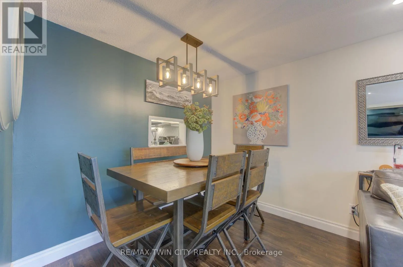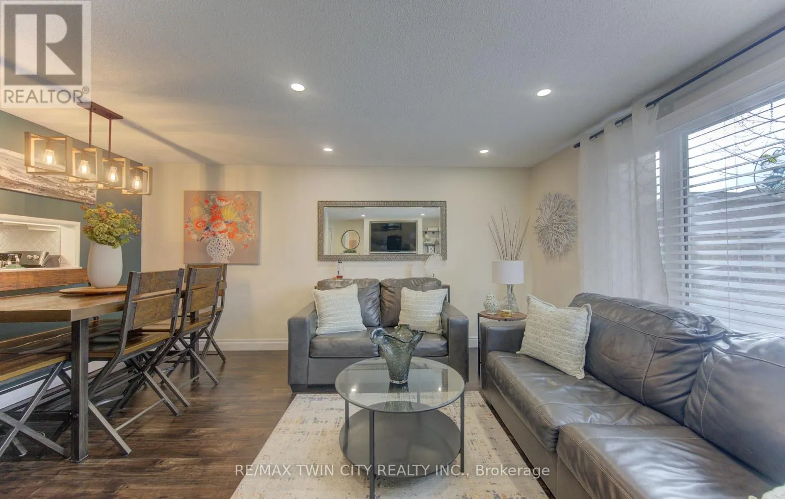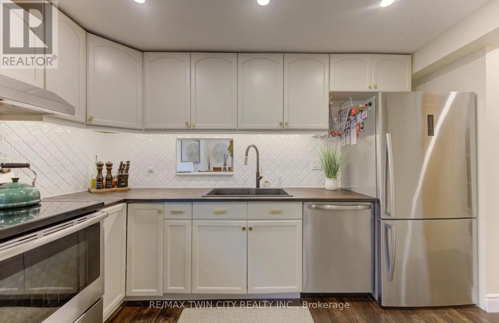 Cross Streets: Queens BLVD. ** Directions: Queens Blvd to Elm Ridge. The One You've Been Waiting For! Welcome to this beautifully updated bungalow-style townhouse-an exceptional opportunity for first-time buyers, downsizers, or savvy investors seeking comfort, style, and convenience. This move-in-ready home has been extensively renovated, featuring many updates like the kitchen, bathrooms, flooring, paint, hydro panel and furnace-offering peace of mind and modern living throughout. The bright, open-concept main level boasts a spacious, light-filled living room, a cheerful eat-in kitchen, three generously sized bedrooms, a full 4-piece bathroom, and ample storage space. Downstairs, enjoy a fully finished basement complete with a large recreation room, convenient in-suite laundry, and an additional 2-piece bath-perfect for relaxing or entertaining. Step outside from the kitchen to your private, fenced backyard, also accessible through the garage's rare drive-through rear door-ideal for enjoying quiet outdoor moments. Located in the desirable Forest Heights neighbourhood of West Kitchener, this home offers unbeatable convenience. Walk to parks, schools, shopping, restaurants, libraries, transit, and nearby trails, with quick access to Hwy 7/8 and the 401 for easy commuting. Immaculately maintained with evident pride of ownership, this home is easy to show and ready for its next chapter. An incredible opportunity that suites your lifestyle-don't miss it! (id:27476)