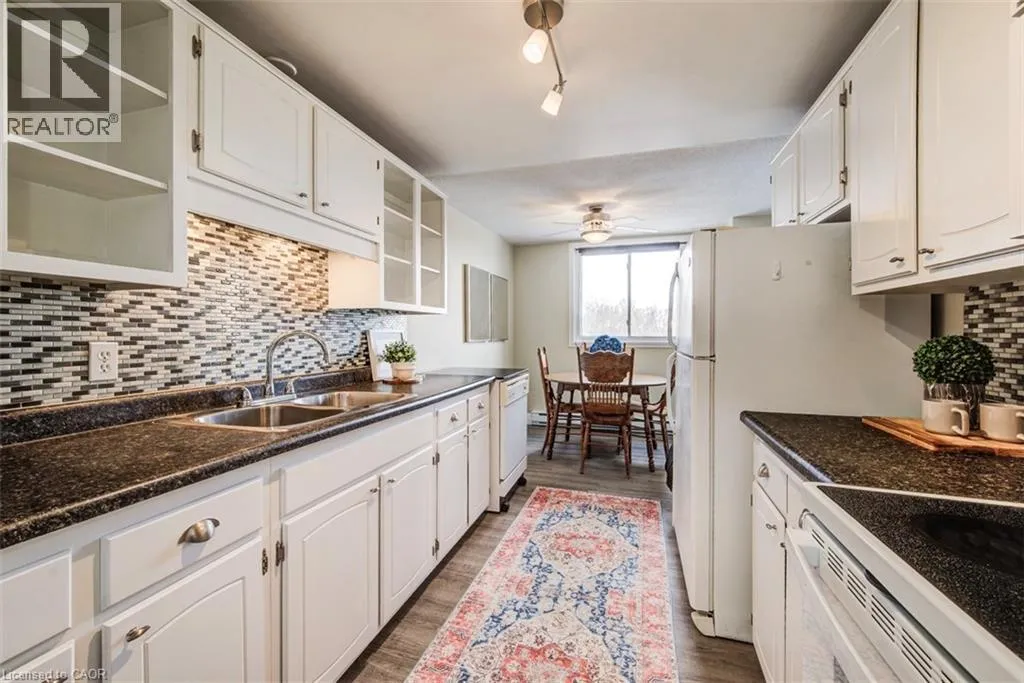 Located at dead end of street. Parking infront of building is permitted for showings. Welcome to your new home. This recently remodeled 3-bedroom residence is an ideal fit for first-time homebuyers, those looking to downsize, or savvy investors. Step into the inviting layout featuring a generous living room and dinette area, seamlessly connected to a covered balcony overlooking the serene greenspace of Meinzinger Park. Perfect for unwinding after a busy day or soaking in the picturesque surroundings. The modernized kitchen boasts ample storage, stainless steel appliances including a fridge and dishwasher, elegant countertops, and a tasteful tiled backsplash. With updated flooring throughout, each room flows effortlessly into the next. This unit offers three spacious bedrooms and a well-appointed 4-piece bathroom. Included with the unit are a 4x6 owned storage locker and a parking spot. Conveniently situated near the expressway and just a brief 10-minute drive from Downtown Kitchener, this condo offers both comfort and accessibility. Don't miss out on this incredible opportunity for affordable homeownership in Kitchener! Contact us today to schedule your private tour. (id:27476)