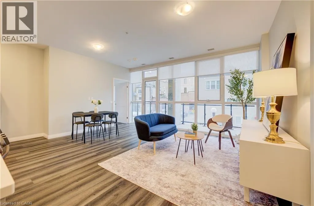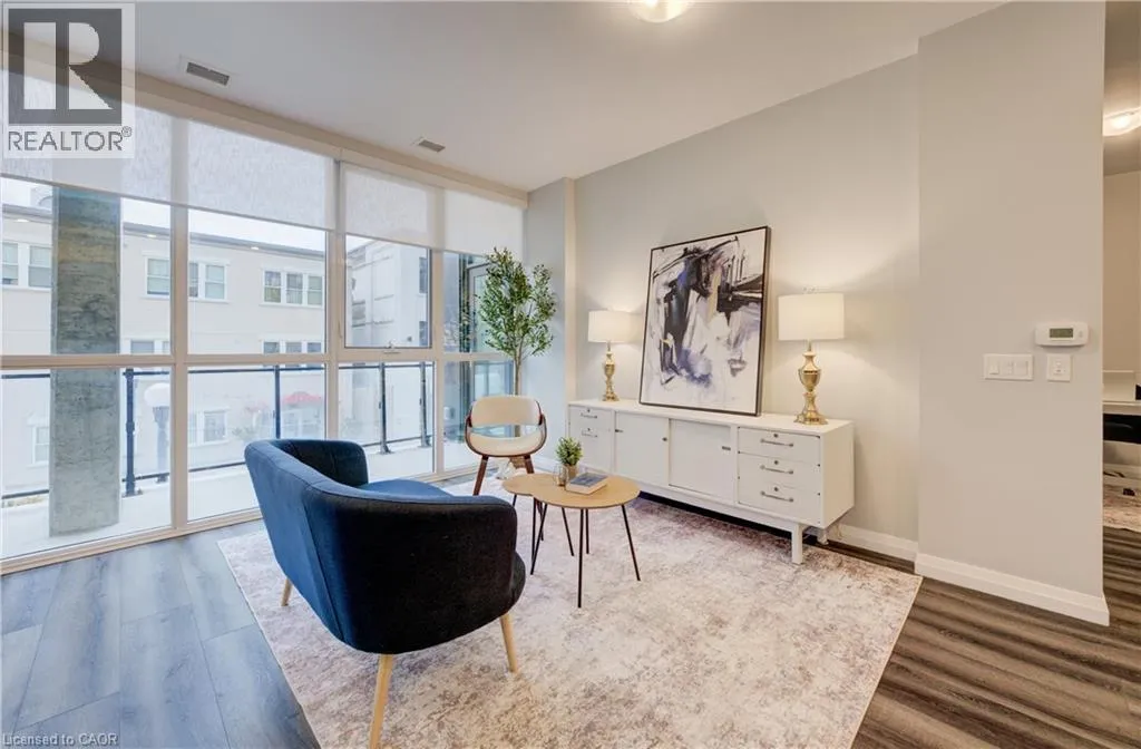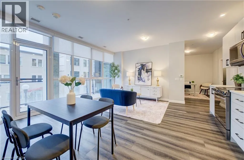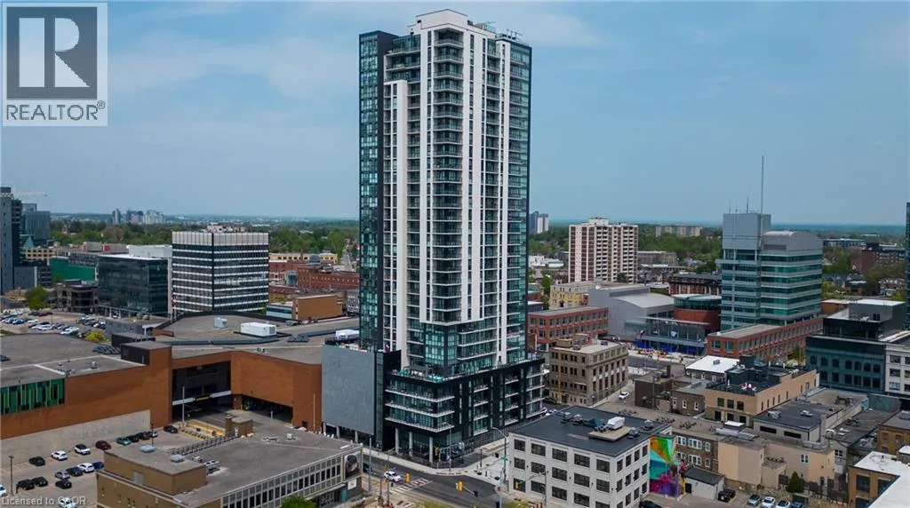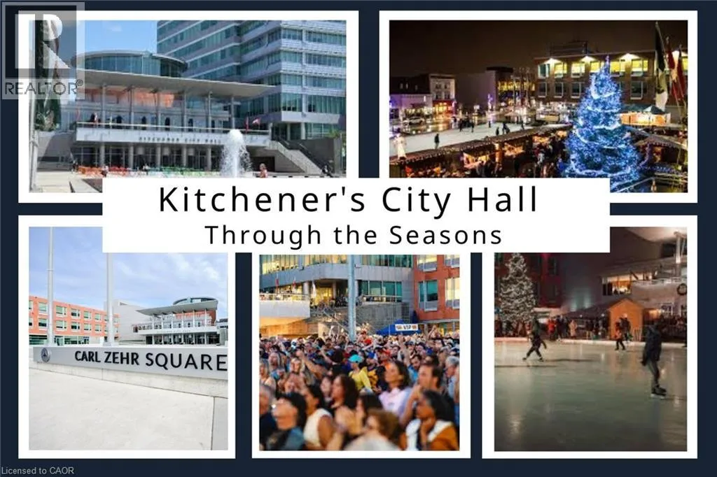 Charles Street W at Gaukel St. Several parking lots near by. Welcome to Charlie Westâwhere luxury meets lifestyle in the heart of downtown Kitchener. This rare 2-bedroom + den, 2-bath podium suite offers total 1,125 sq ft of bright, modern living with an oversized balcony. Floor-to-ceiling windows fill the space with natural light, highlighting sleek finishes and a thoughtfully designed open layout. The chef-inspired kitchen features granite countertops, stainless steel appliances, designer cabinetry, and ample prep spaceâperfect for both everyday living and entertaining. Unwind in the primary suite with direct balcony access. A second full bathroom ensures comfort for guests or family. Enjoy resort-style amenities including concierge service, fitness and yoga studios, stylish lounges, landscaped terrace with BBQs, guest suite, pet facilities, and more. Located steps from Victoria Park, ION LRT, Google HQ, and the best of downtown livingâwith a Walk Score of 99. Donât miss this opportunity to own in one of Kitchenerâs most sought-after buildings. (id:27476)