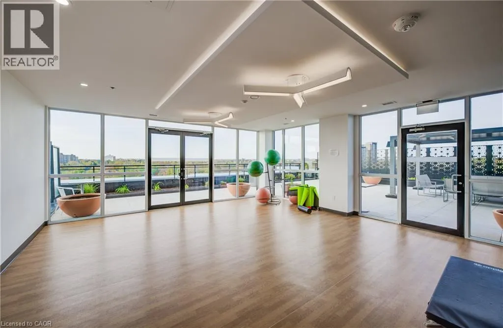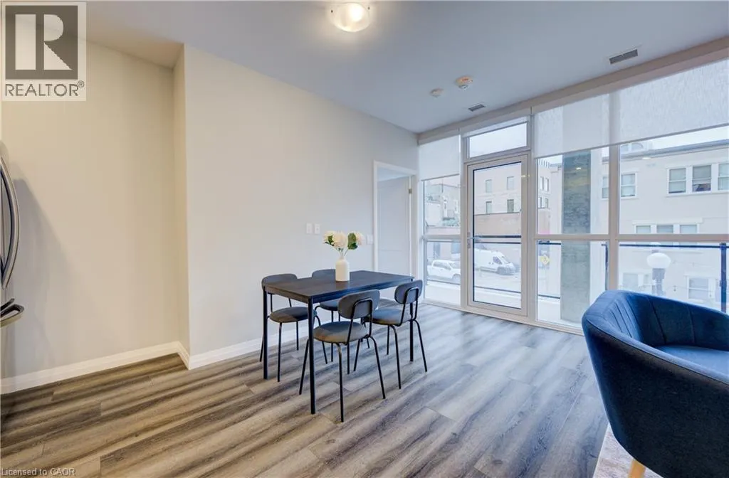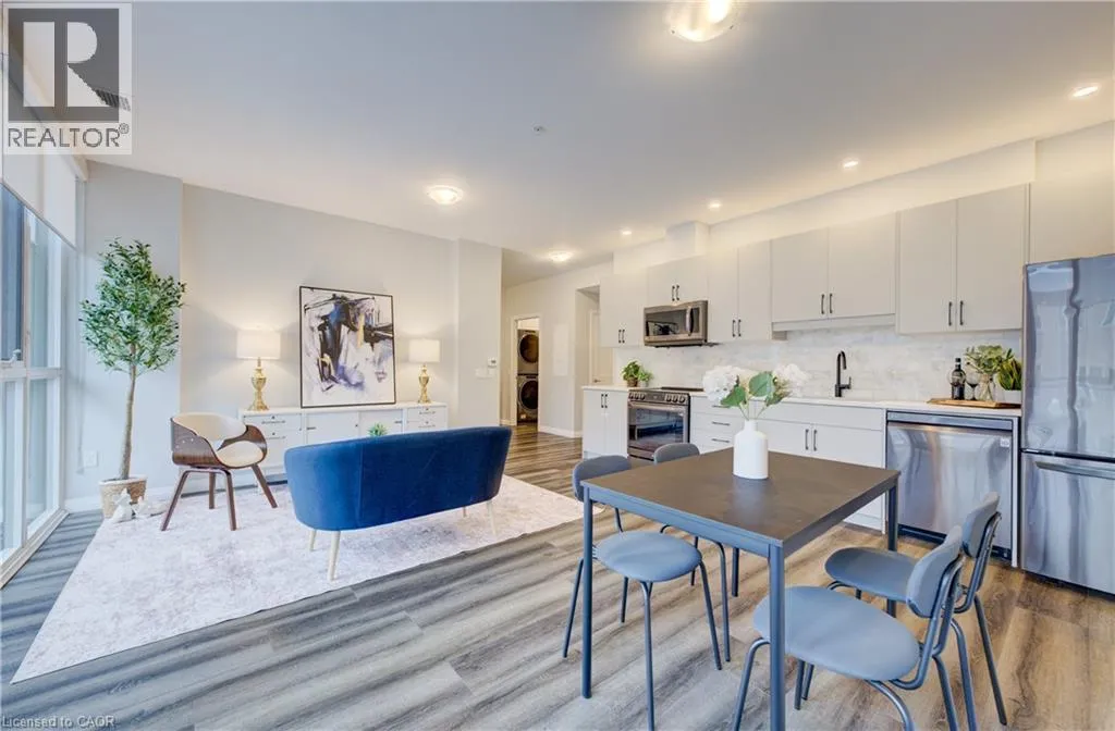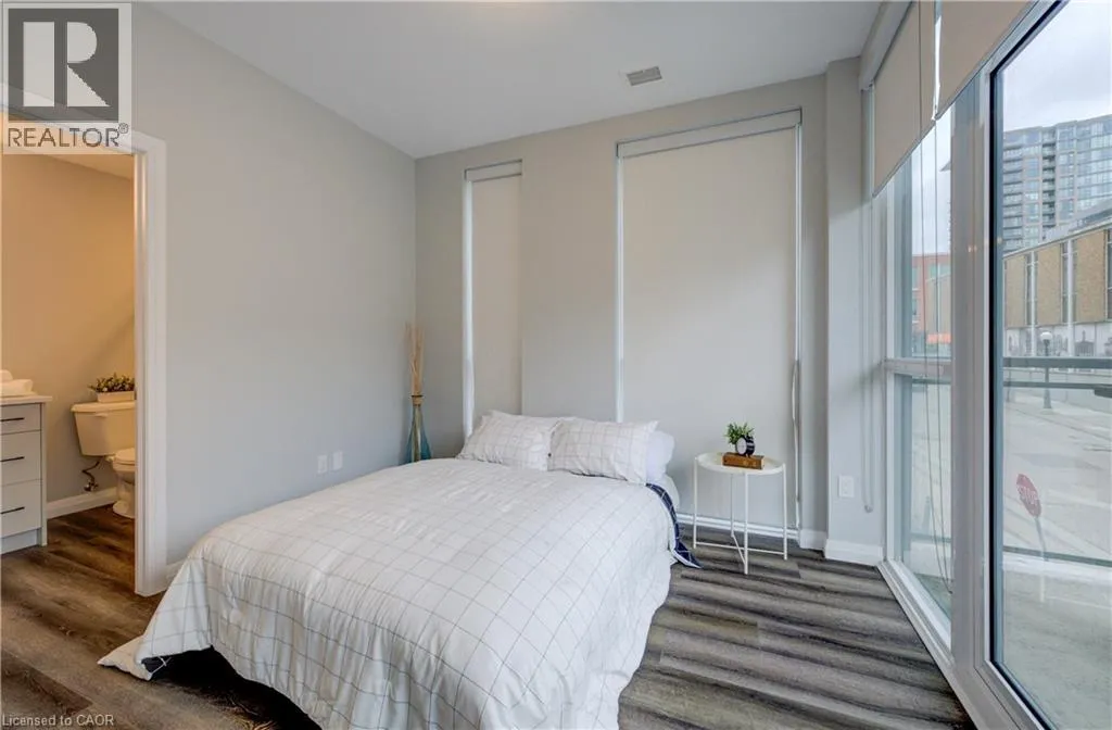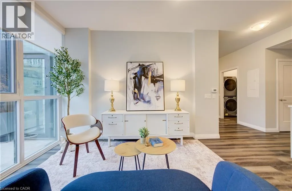 Charles Street W at Gaukel St. Several parking lots near by. Welcome to Charlie Westâwhere luxury meets lifestyle in the heart of downtown Kitchener. This rare 2-bedroom + den, 2-bath podium suite offers total 1,125 sq ft of bright, modern living with an oversized balcony. Floor-to-ceiling windows fill the space with natural light, highlighting sleek finishes and a thoughtfully designed open layout. The chef-inspired kitchen features granite countertops, stainless steel appliances, designer cabinetry, and ample prep spaceâperfect for both everyday living and entertaining. Unwind in the primary suite with direct balcony access. A second full bathroom ensures comfort for guests or family. Enjoy resort-style amenities including concierge service, fitness and yoga studios, stylish lounges, landscaped terrace with BBQs, guest suite, pet facilities, and more. Located steps from Victoria Park, ION LRT, Google HQ, and the best of downtown livingâwith a Walk Score of 99. Donât miss this opportunity to own in one of Kitchenerâs most sought-after buildings. (id:27476)