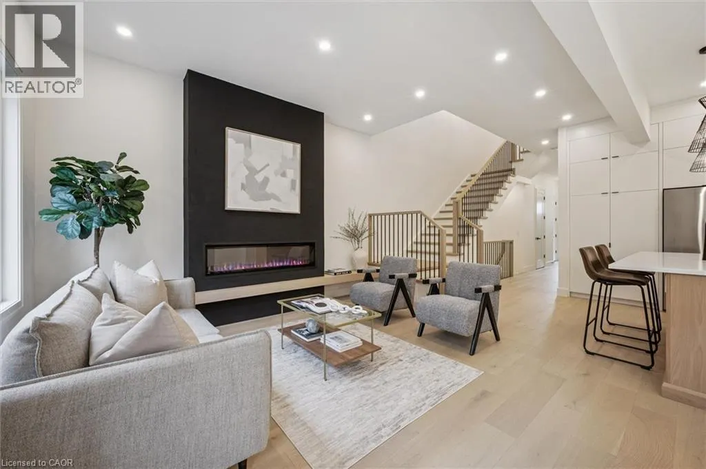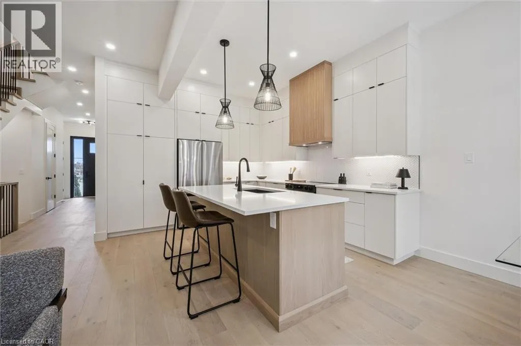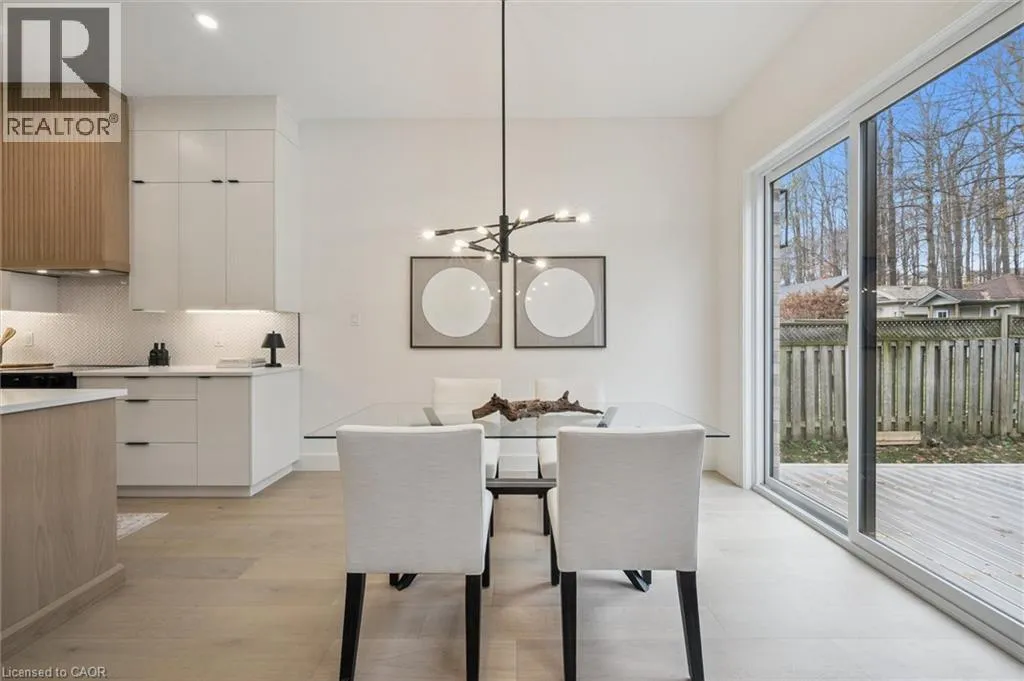 Ottawa St S to David Bergey Drive to Peach Blossom Court THE ONE that will take you by surprise - discover refined living in this beautifully appointed semidetached home in Kitchener, showcasing over 2300 sf of elegantly designed living space. With 4 bedrooms and 4 bathrooms, this home blends modern sophistication with comfort, offering a lifestyle of both luxury and ease. The heart of this home is the gourmet kitchen, featuring custom Chervin-built cabinetry, premium fixtures, and a seamless flow into the dining and living areasâperfect for both everyday living and entertaining. Oversized windows frame serene views of private green space, bringing natural light and tranquility indoors. Upstairs, discover a spacious primary retreat with a spa-inspired ensuite featuring a double-vanity & walk-in closet. Additional spacious bedrooms provide flexibility for family, guests, or a private home office, while the finished lower level offers even more living space. Step outside to your own sanctuaryâan expansive deep lot backing onto lush green space adorned with majestic maple trees. Whether enjoying morning coffee or evening gatherings, this tranquil backdrop provides year-round beauty and privacy. Ideally located near prestigious schools, vibrant shopping including the Sunrise Centre, dining, and recreation, this home seamlessly combines convenience, elegance, and natural charmâa rare offering in one of Kitchenerâs most desirable settings. Donât miss the opportunity to own this one-of-a-kind home â schedule your showing today! (id:27476)