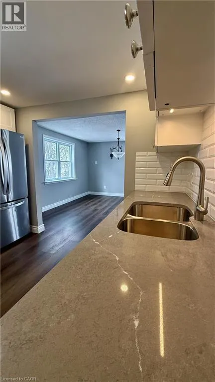Kingsway Dr to Ninth Ave Spacious upper-level unit offering two generously sized bedrooms and a full 4-piece bathroom. This well designed layout flows into a beautiful walk-through kitchen featuring quartz countertops, double stainless steel sinks, a ceramic backsplash, and brand-new stainless appliances. At the rear of the home, the expansive living and dining area is filled with natural light, creating a bright and inviting atmosphere. The unit also includes the convenience of in-suite laundry. Enjoy a private entrance and one parking space, all ideally located within walking distance to shopping, the mall, public transit, and nearby parks, with easy access to Highway 401. Great onsite landlords! Settle in to this family friendly neighborhood and enjoy the quite family friendly neighborhood as you call this beautiful space home for your next chapter. (id:27476)