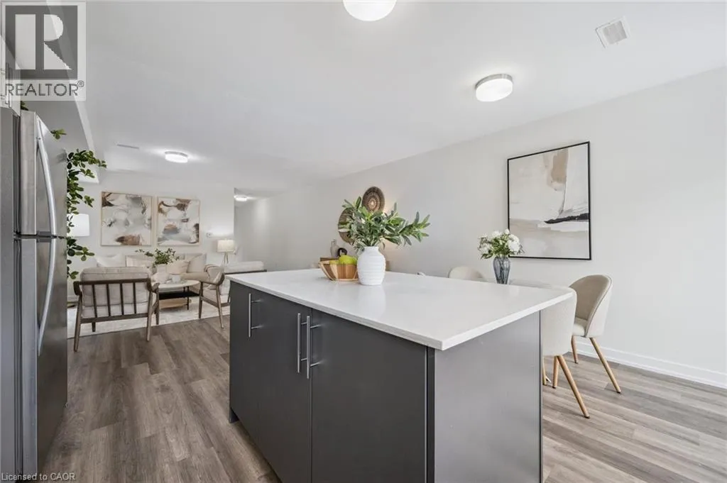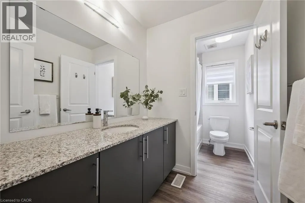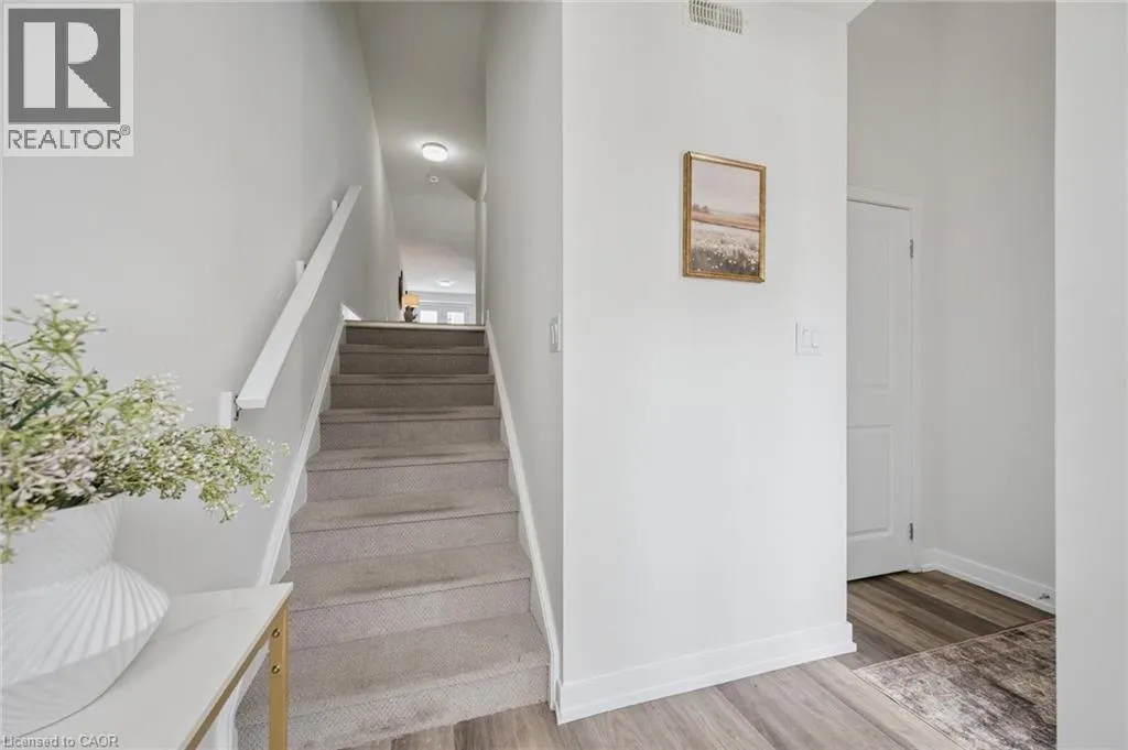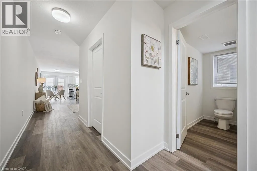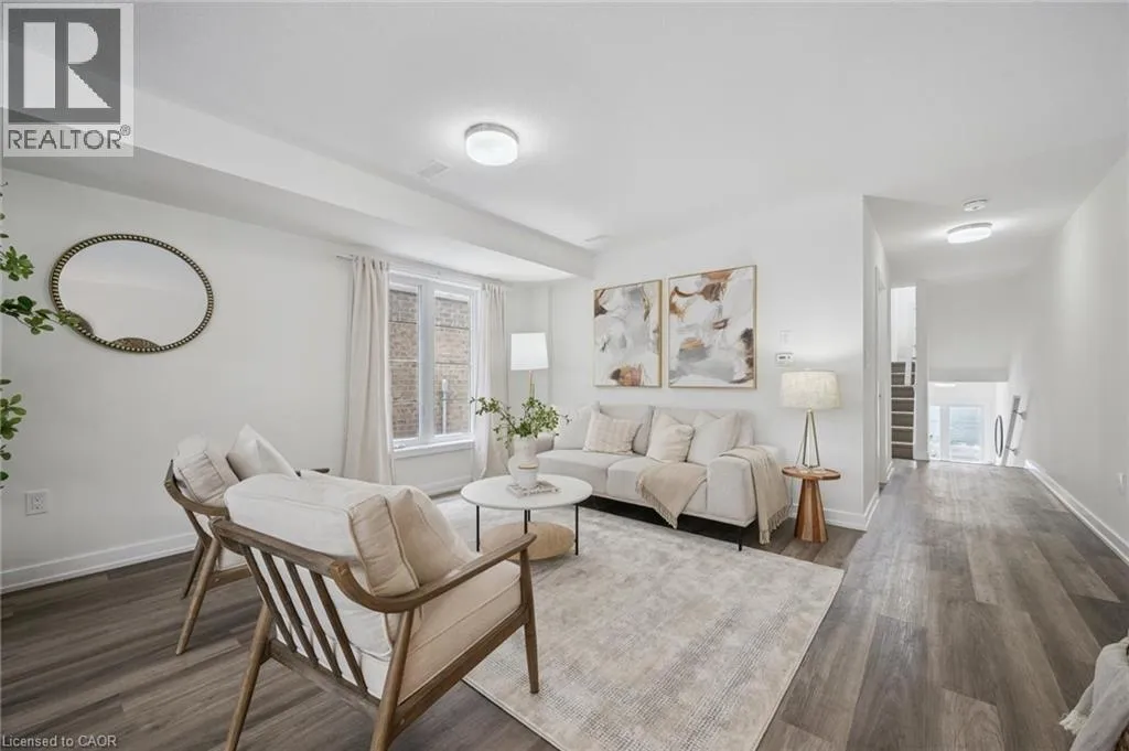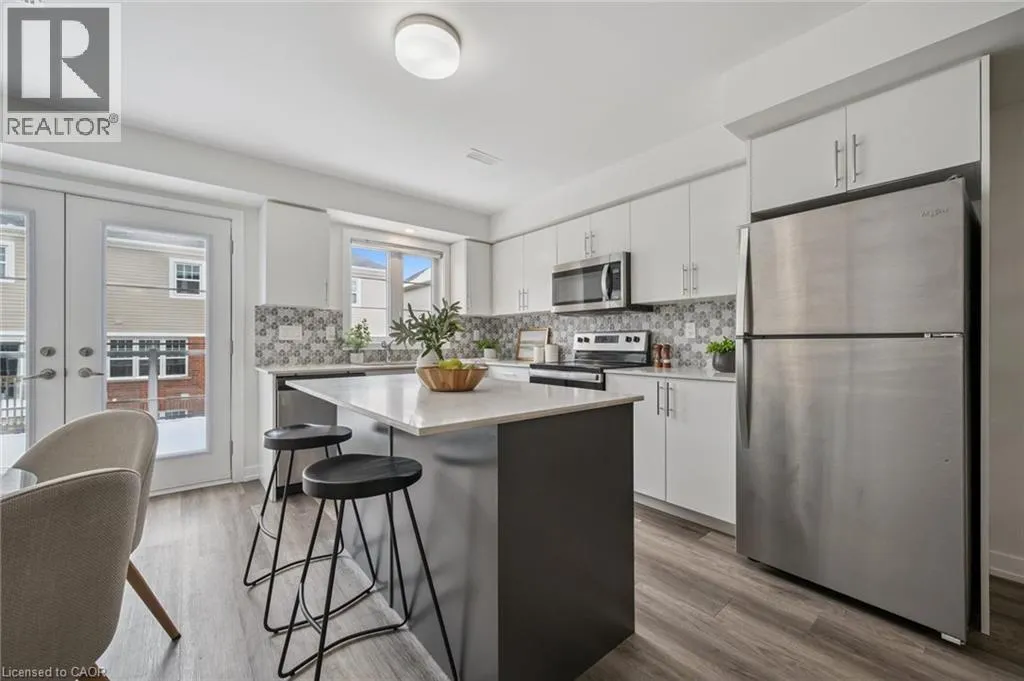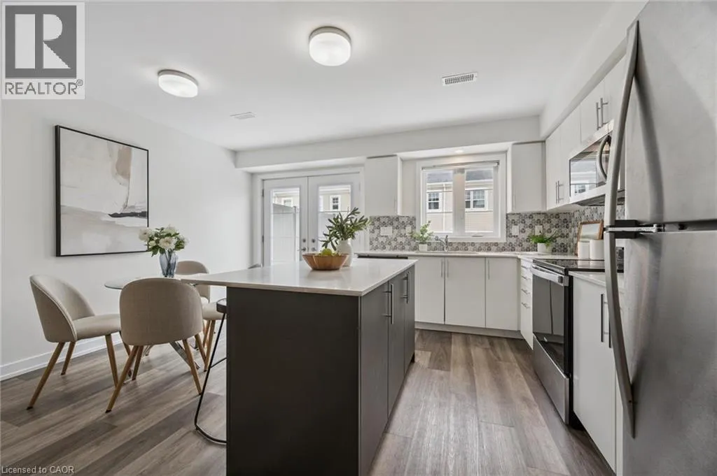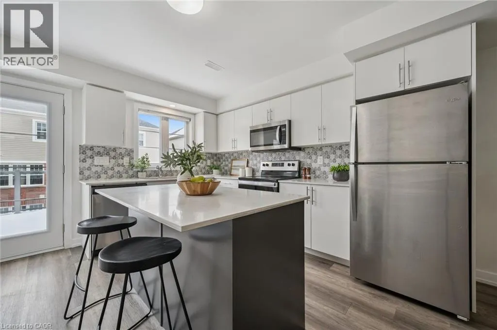 Welcome home to this stunning townhome located in the prime location of Huron! A beautifully maintained 3 bedroom 3 bathroom home with 2 parking spaces located in one of Kitchener's most sought-after neighbourhoods. This modern home offers the perfect blend of style, comfort, and convenience ideal for first-time home buyers and savvy investors alike! Step inside to discover a bright and spacious open-concept layout featuring large windows, stylish finishes, and plenty of natural light throughout. The main floor boasts a contemporary kitchen with stainless steel appliances, ample cabinetry, and a cozy dining area that flows seamlessly into the inviting living space, perfect for entertaining or relaxing with family. Off of the kitchen is a large deck to barbecue and enjoy those summer nights. A 2 piece bath and a utility area with additional storage are also found on the main floor. Upstairs, you'll find three generously sized bedrooms with great light, including a primary suite with a large private ensuite and walk-in closet. You will also find laundry outside of the primary bedroom for added convenience. Situated in a prime Kitchener location, this home is just minutes away from top-rated schools, shopping centres, restaurants, parks, and public transit, with easy access to the 401 and GO Station. An incredible opportunity to own a beautiful home in a thriving community. (id:27476)