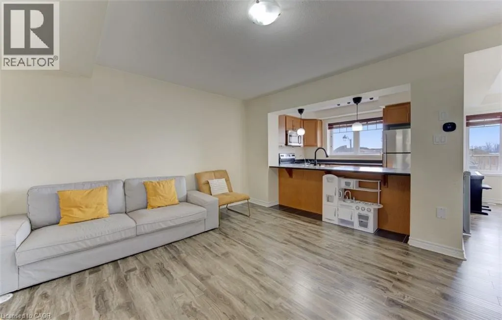 Discover modern comfort in this impeccably maintained freehold townhouse in the sought-after Huron Park community. This home offers a seamless blend of style and convenience with zero maintenance fees.The second floor invites you into a sun-drenched, open-concept living area and a bright kitchen featuring maple cabinetry and stainless steel appliances. Step out onto your private balcony to enjoy a quiet morning or evening breeze. The upper level serves as a peaceful retreat with two spacious bedrooms, including a primary suite with a walk-in closet and private ensuite. For added convenience, the laundry is also located on this floor.The location is truly unbeatable for active families and investors alike. Directly across the street is RBJ Schlegel Park, which will soon feature the world-class Kitchener Indoor Recreation Complex (Cowan Recreation Centre), slated for completion in late summer 2026. This home is also just minutes from Janet Metcalfe PS, local shopping, and easy highway 7/8 & 401 access.An attached garage and a private driveway with parking for two. Move in and enjoy a high-quality lifestyle in one of Kitchener's most rapidly growing neighborhoods! (id:27476)