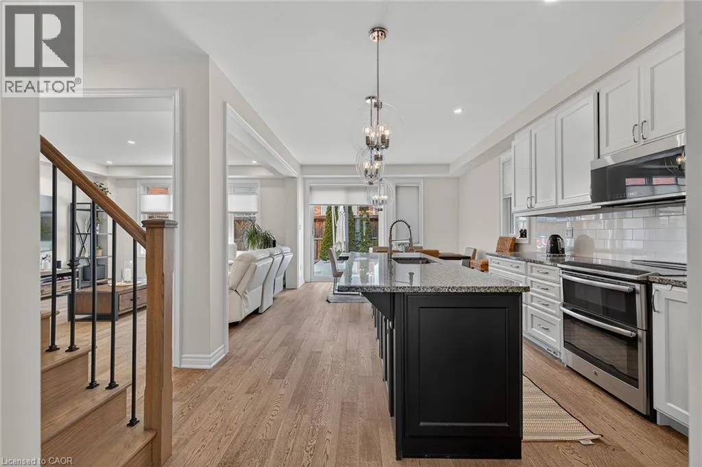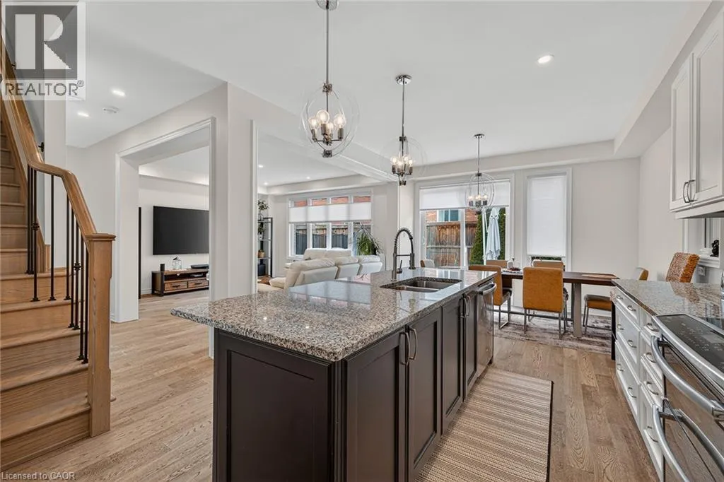 Huron Rd. to Shoreacres Dr. Welcome to 55 West Oak Trail, located in the prestigious and family-friendly Huron Park community of Kitchener. Surrounded by scenic parks, trails, and close to everyday amenitiesâincluding Huron Natural Area, this home also offers easy access to Highway 401 and Highway 7 for a convenient commute. This stunning property features excellent curb appeal with a stone walkway, double garage with a professionally installed storage loft, and a cozy front porch with beautiful pond views. Inside, youâll find high ceilings, hardwood flooring, and stylish finishes throughout. The open-concept main floor includes a modern two-toned kitchen with white cabinetry, an oversized black island with seating, stainless steel appliances, and a bright dining and living area ideal for entertaining. Step outside to a fully fenced backyard oasis with low-maintenance turf (with warranty) and a premium VEKA solid-core PVC deck with built-in lighting. Upstairs offers four spacious bedrooms, including a primary suite with a walk-in closet and contemporary ensuite, along with a full bathroom and convenient laundry room. The fully finished basement adds valuable living space with a large rec room, modern full bathroom, and plenty of storage, with potential for a separate entrance. Facing the pond and within walking distance to schools and parks, this upgraded home is the perfect blend of comfort, style, and location. (id:27476)