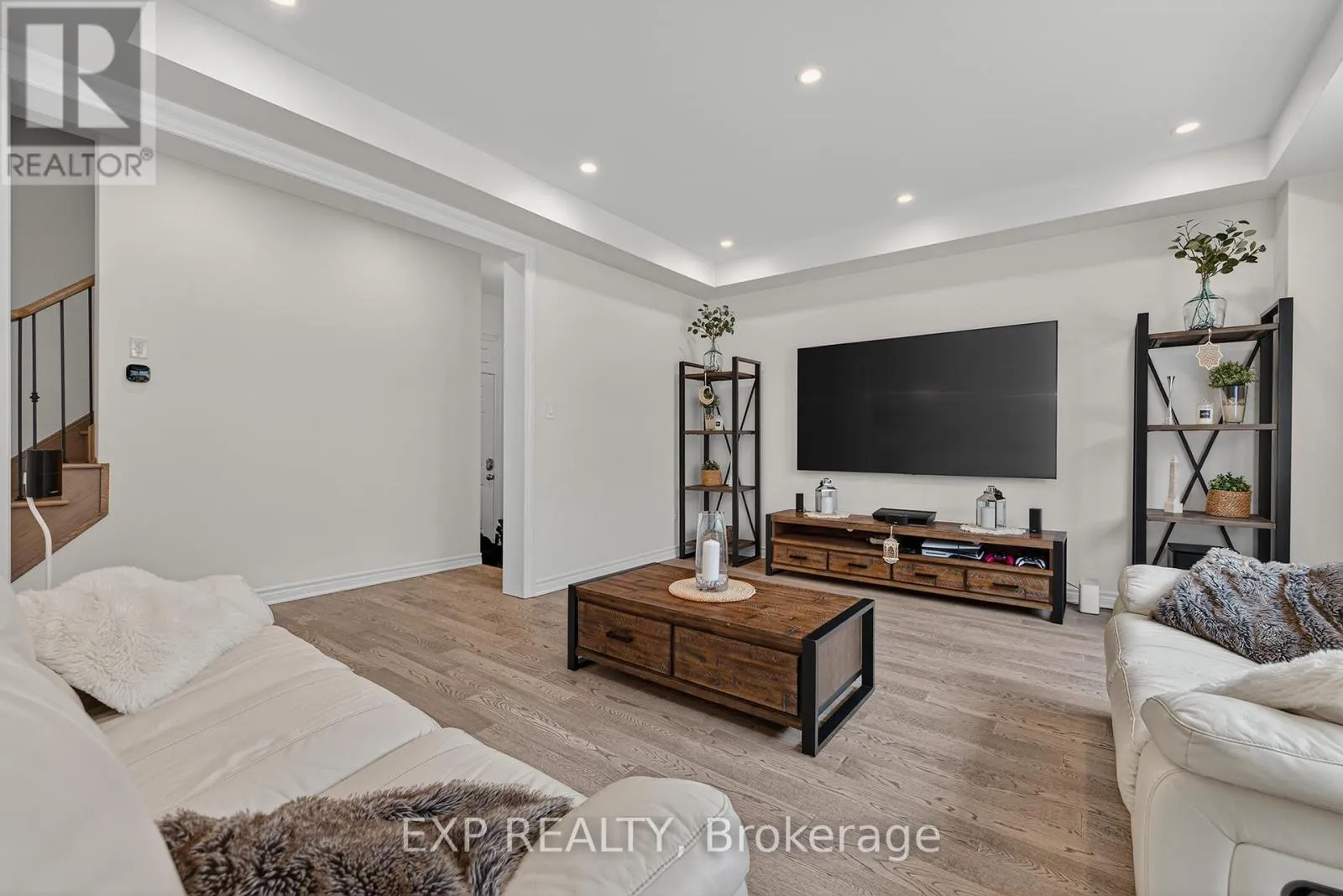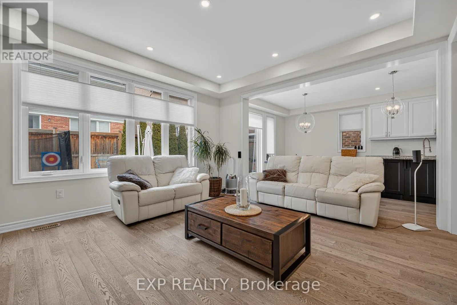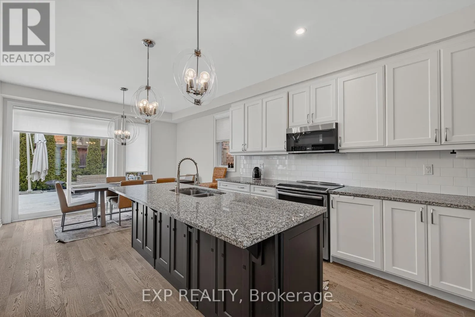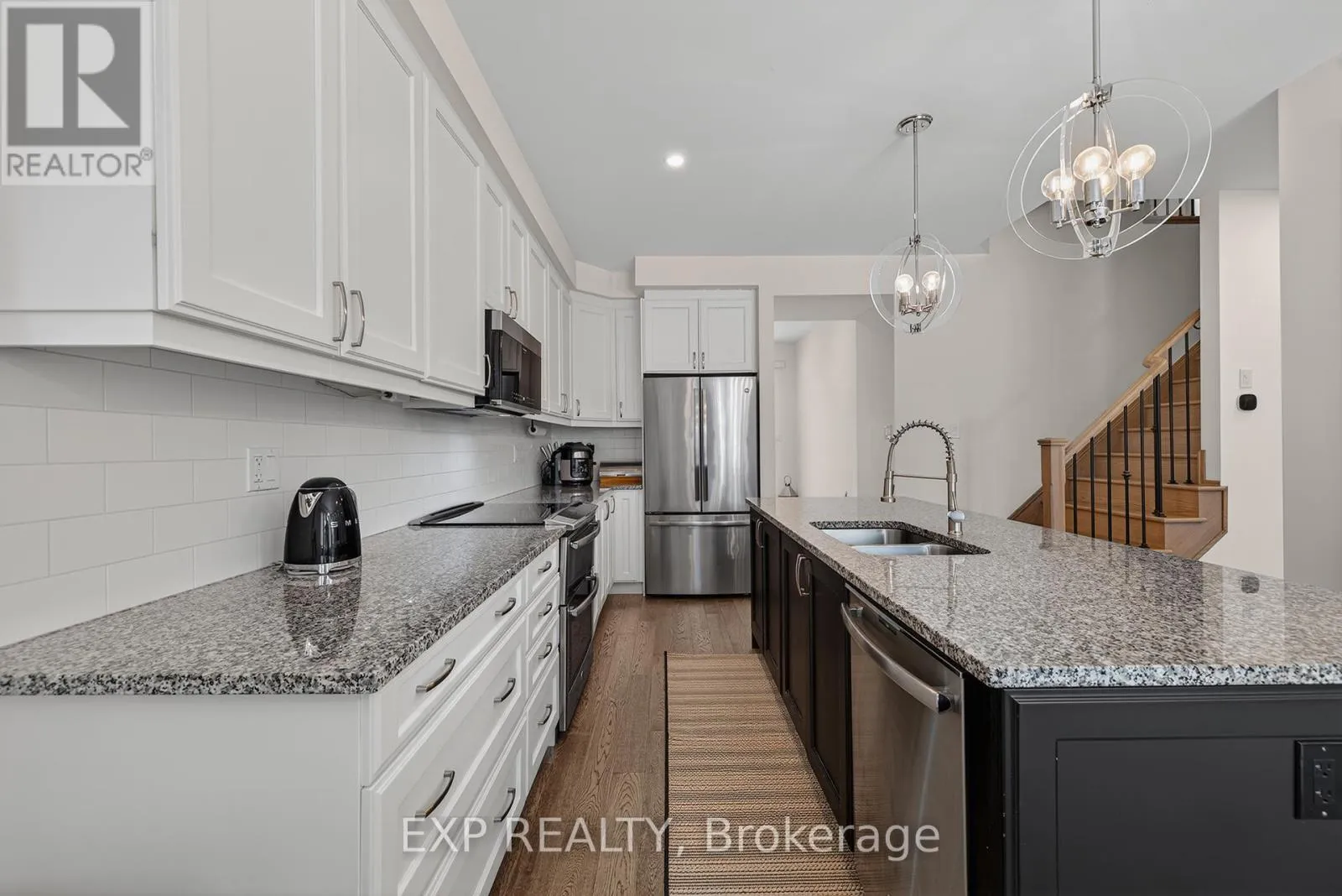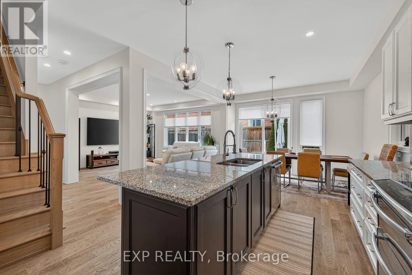 Huron Rd. to Shoreacres Dr. Welcome to 55 West Oak Trail, located in the prestigious and family-friendly Huron Park community of Kitchener. Surrounded by scenic parks, trails, and close to everyday amenities-including Huron Natural Area, this home also offers easy access to Highway 401 and Highway 7 for a convenient commute. This stunning property features excellent curb appeal with a stone walkway, double garage with a professionally installed storage loft, and a cozy front porch with beautiful pond views. Inside, you'll find high ceilings, hardwood flooring, and stylish finishes throughout.The open-concept main floor includes a modern two-toned kitchen with white cabinetry, an oversized black island with seating, stainless steel appliances, and a bright dining and living area ideal for entertaining. Step outside to a fully fenced backyard oasis with low-maintenance turf(with warranty) and a premium VEKA solid-core PVC deck with built-in lighting. Upstairs offers four spacious bedrooms, including a primary suite with a walk-in closet and contemporary ensuite, along with a full bathroom and convenient laundry room. The fully finished basement adds valuable living space with a large rec room, modern full bathroom, and plenty of storage, with potential for a separate entrance. Facing the pond and within walking distance to schools and parks, this upgraded home is the perfect blend of comfort, style, and location. (id:27476)
