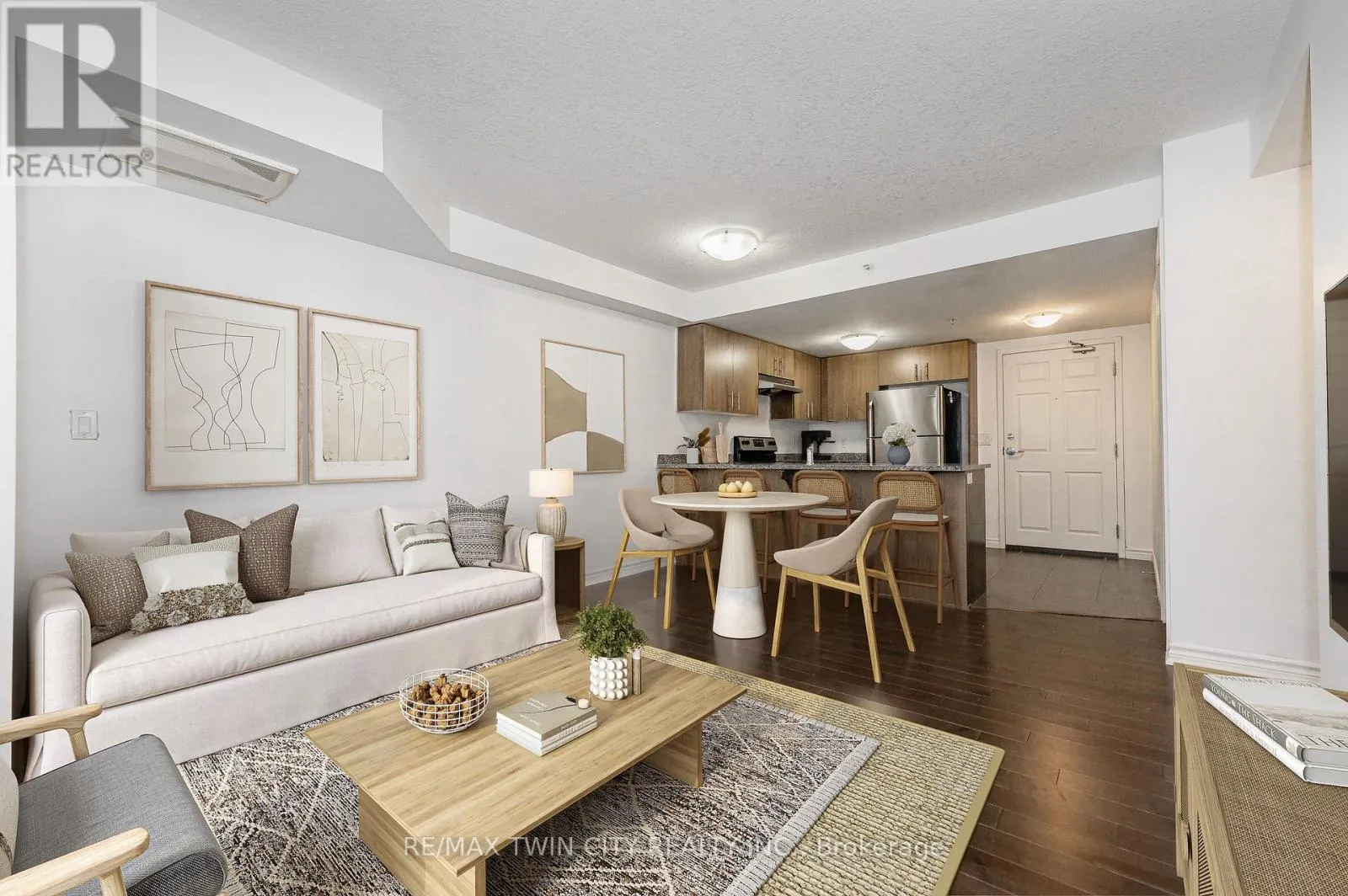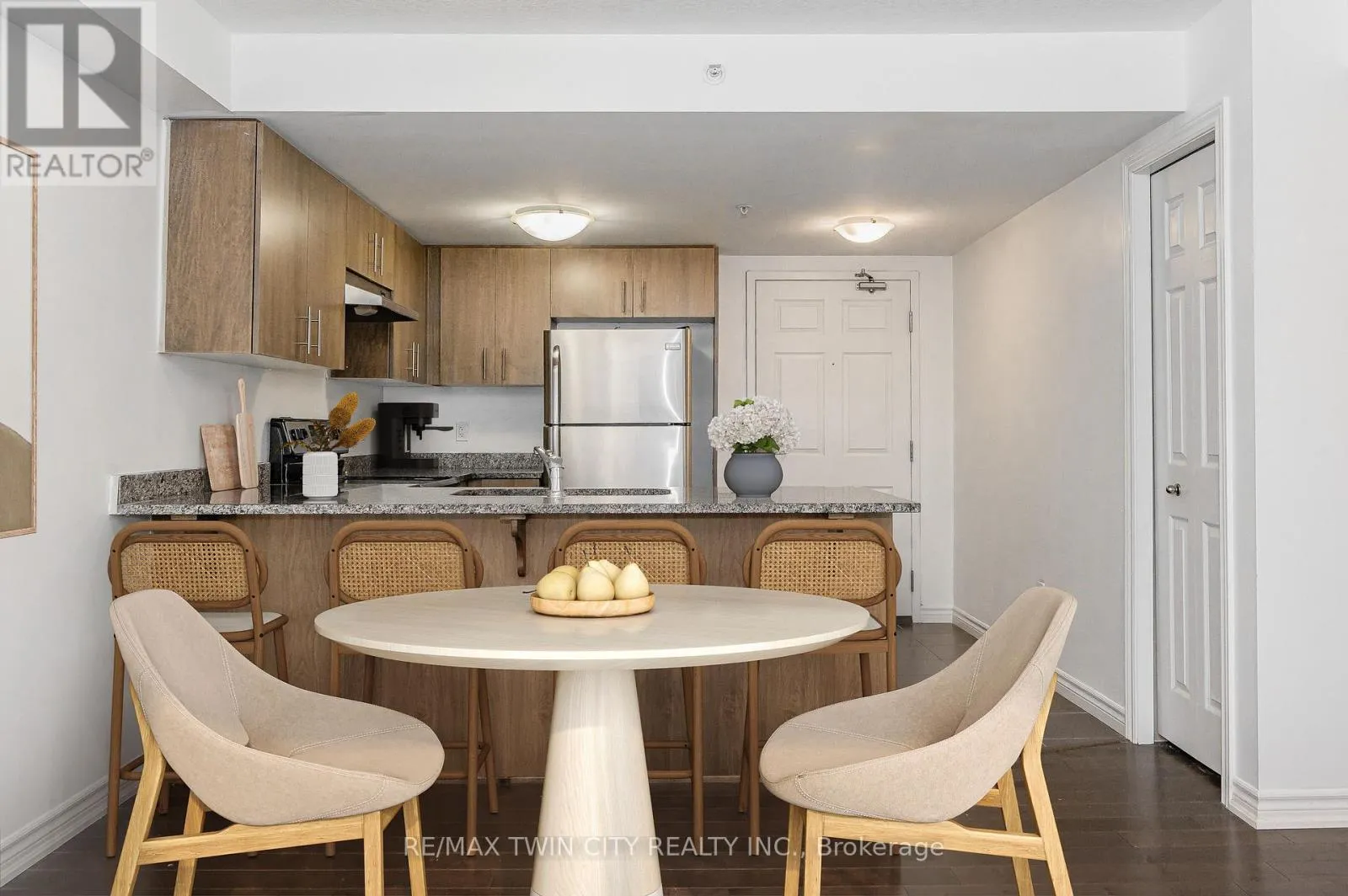 Cross Streets: MAX BECKER DRIVE. ** Directions: BLEAMS ROAD TO COMMONWEALTH STREET. Welcome to 155 Commonwealth Street Unit 410, a beautifully maintained condo in the highly sought-after Williamsburg Walk community in Kitchener. Whether you are looking to live in or invest, this is an exceptional opportunity in a well-connected, amenity-rich neighbourhood. This west-facing unit offers 2 bedrooms, 1 bathroom, and 667 SF of thoughtfully designed living space, filled with natural light, & is vacant with flexible possession available. The bright, open-concept layout creates an inviting space for both everyday living & entertaining. The modern kitchen features granite countertops & a breakfast bar, flowing seamlessly into the living area with sliding doors that lead to a private balcony-an ideal spot to unwind & enjoy sunset views. This unit offers 2 comfortable bedrooms & a well-appointed 4-pce bathroom with tub/shower combo, granite countertops, creating a clean & cohesive finish throughout. In-suite laundry & 1 dedicated parking space add everyday convenience, while the overall condition makes this home truly move-in ready. Residents enjoy a well-maintained building with amenities including a fitness room & party room, offering added value & lifestyle appeal. Located in the heart of Williamsburg, you are just steps to Williamsburg Town Centre, schools, shopping, restaurants, Schlegel Park, community centres, & scenic walking trails including the Williamsburg Wetland & Trillium Trail. Quick access to Highway 8 & the 401 makes commuting easy, while the surrounding neighbourhood offers a strong sense of community & everyday convenience. A fantastic opportunity to own in one of Kitchener's most desirable communities. Vacant & ready for immediate occupancy. Some images have been virtually staged. (id:27476)