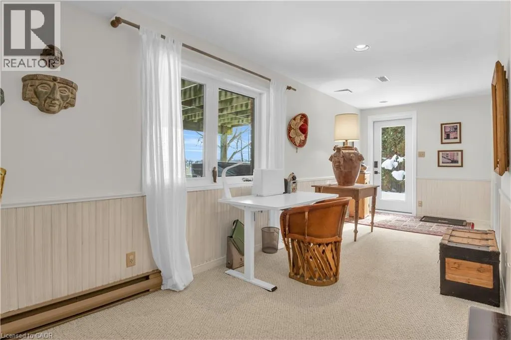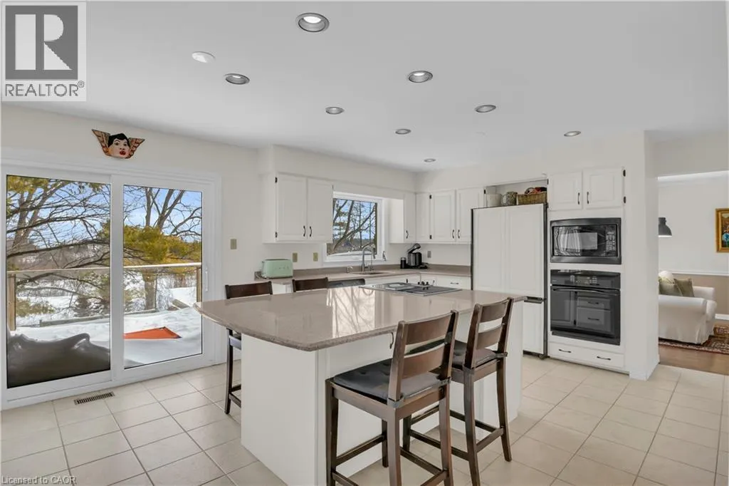 Morrison Rd to Grand River Rd to Tinatawa Rd Welcome to 41 Tinatawa Crt in Kitchener, a well maintained 4+1 bedroom, 3.5 bathroom two-storey home nestled on a quiet court with beautiful views of the Grand River. From the moment you arrive, the spacious foyer and well designed layout set the tone, with a dedicated office behind double glass doors and a formal dining room that flows effortlessly into the bright family room filled with natural light. The heart of the home is the expansive kitchen, featuring a generous eat-in island, quartz countertops, and built-in appliances, offering plenty of space for both daily living and hosting family and friends. Just steps away, the inviting sunken living room showcases built-in shelving and a cozy fireplace, creating a warm and comfortable space to unwind. The main level is complete with a 2-piece bathroom, main floor laundry/mud room with convenient access to the double car garage. On the second floor has a total of 4 bedrooms, 3 share a 4-piece bathroom. The primary suite offers a private retreat with a walk-in closet, separate den, and a spacious 5-piece ensuite with double vanities. The fully finished basement extends the living space even further, featuring a large rec room with a walk-out to the backyard, a bar area, an additional bedroom and bathroom, and ample storage. Outside, the fully fenced backyard is designed for both relaxation and entertaining, complete with a large glass panel deck overlooking a beautiful stone patio and inground pool with scenic views of the Grand River. With walking trails just beyond the property, evenings can be spent enjoying peaceful strolls in a scenic setting. Recent updates include a steel roof (2024), new driveway (2021), new furnace and heat pump (2025) and newer windows (approx. 2021), providing added confidence in the home's upkeep. Located close to Chicopee Ski Hill, shopping, cafes, and everyday amenities, this property offers an exceptional combination of space, comfort, and location. (id:27476)