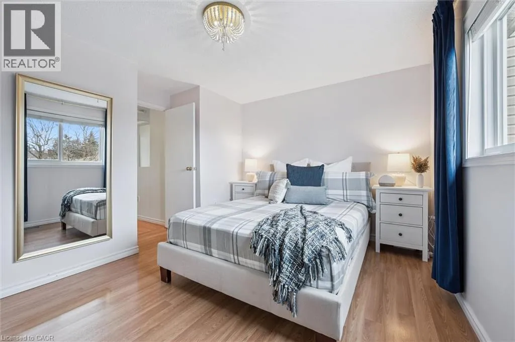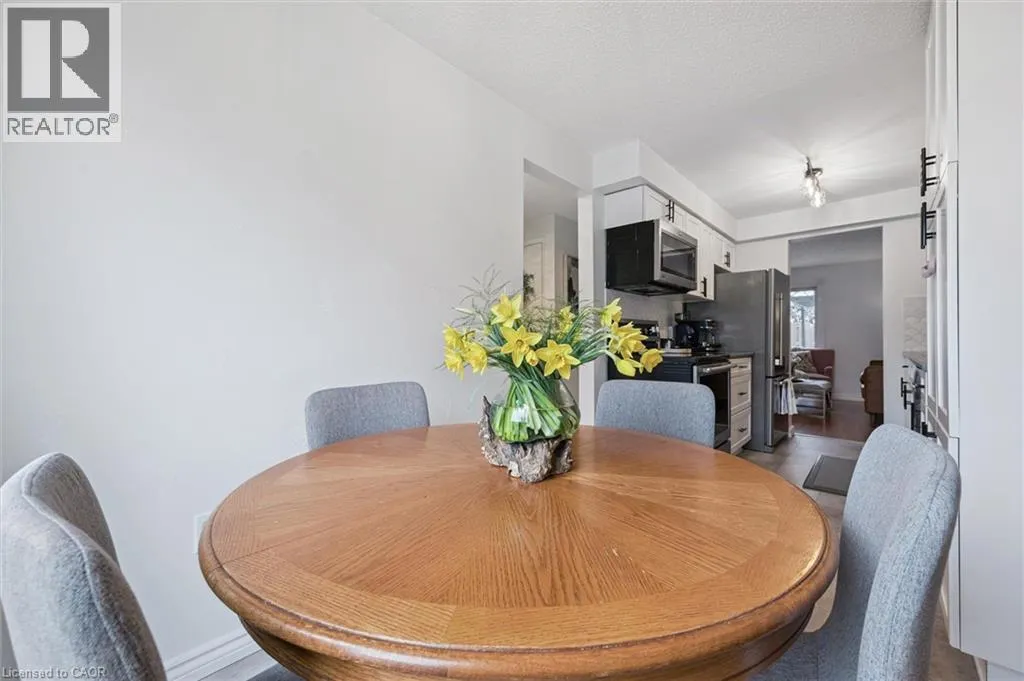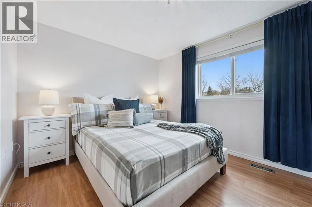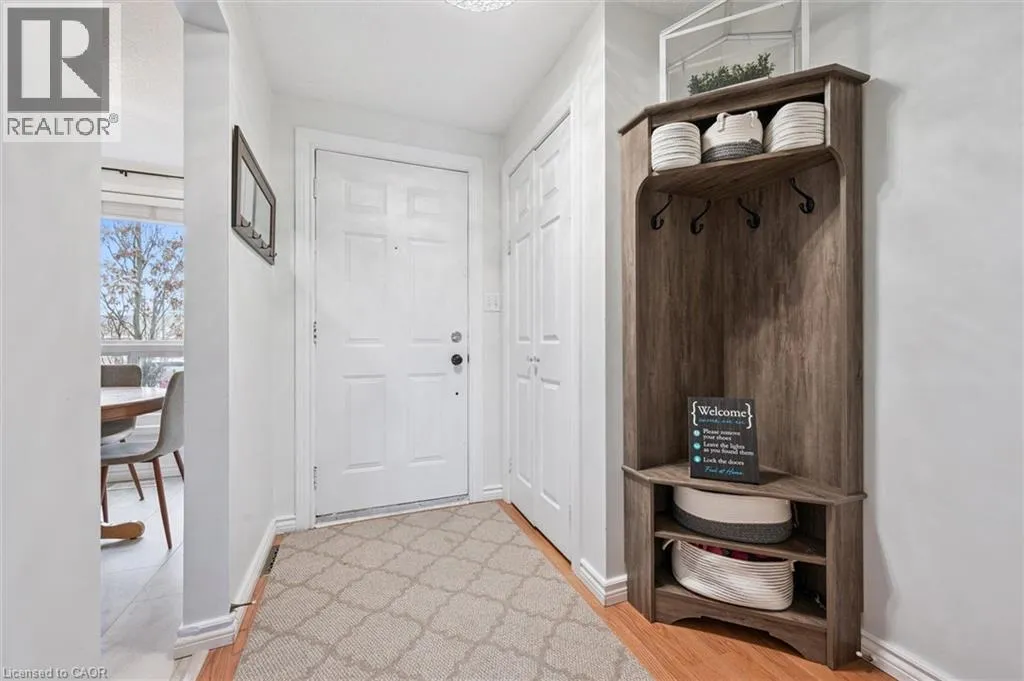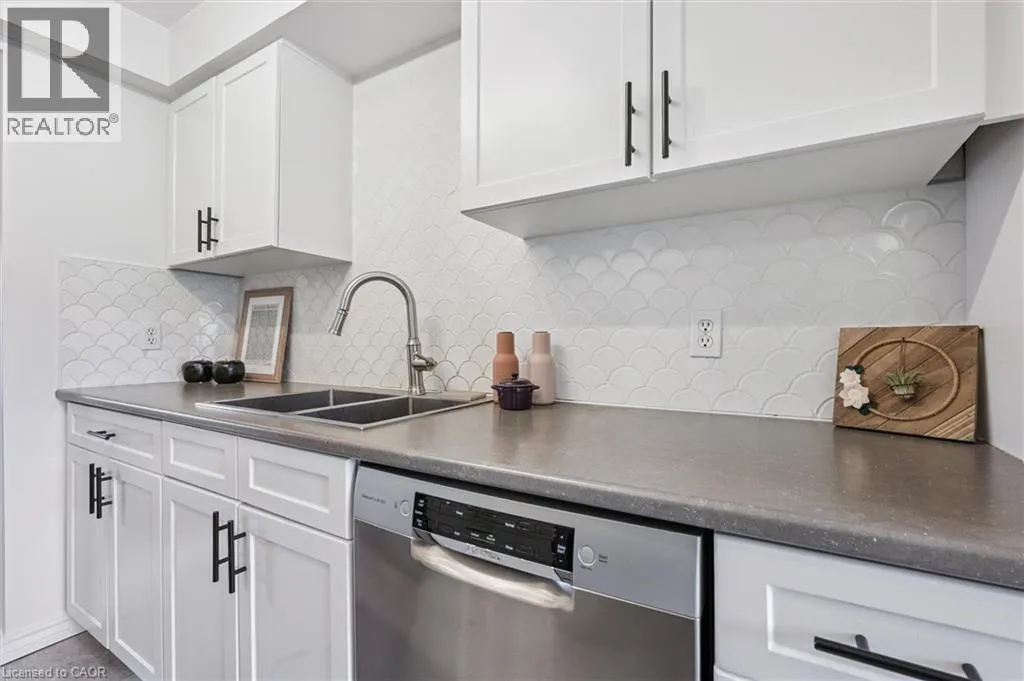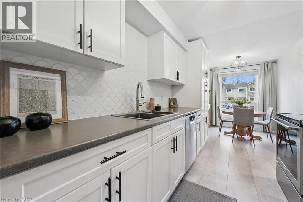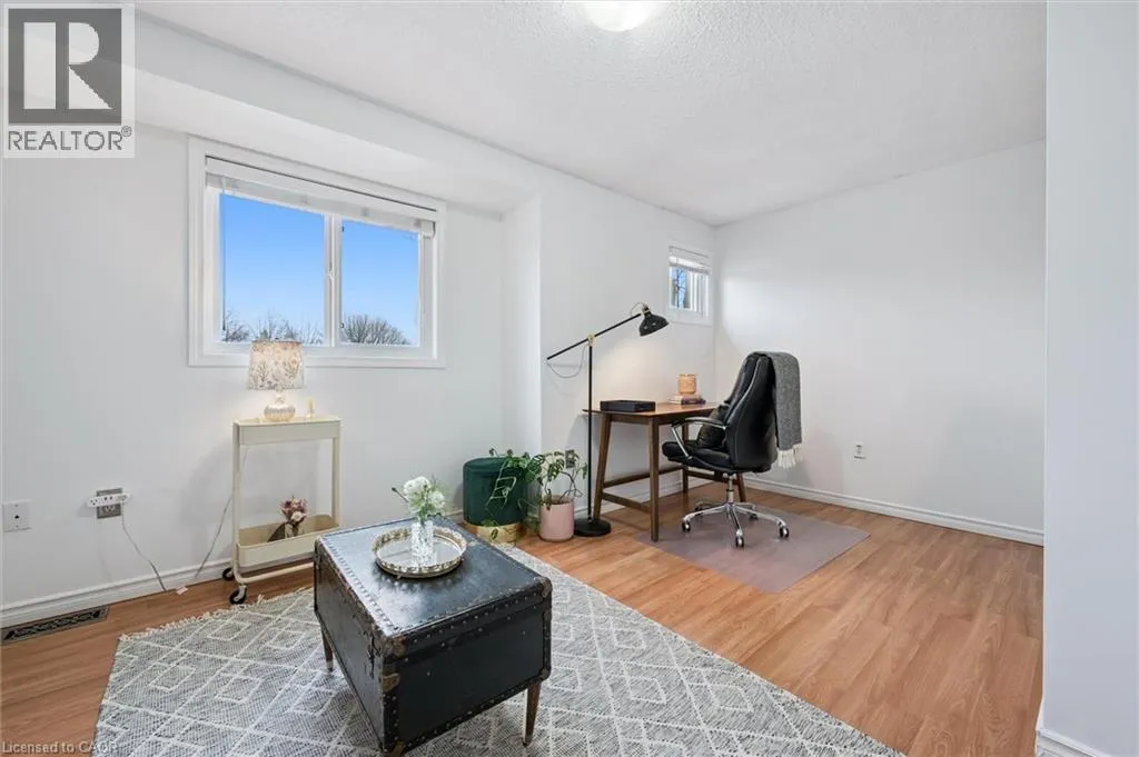 Block Line and Rittenhouse Welcome to Unit 32 at 160 Rittenhouse Road â a beautifully updated, move-in ready home in a convenient Kitchener location. This bright 2-bedroom, 1-bathroom condo townhome offers a functional layout ideal for first-time buyers, downsizers, or investors. The main floor features a modern kitchen with appliances (2021) and a newly tiled floor (2026). Fresh paint and large windows fill the space with natural light, creating a warm and inviting atmosphere. The living and dining area opens to a private, fully enclosed backyard with patio doors. Backing directly onto a park with no rear neighbours, this outdoor space offers a peaceful setting to relax or entertain. The new fence with gate access to the park and the concrete patio are all condo-approved additions. Upstairs, youâll find two comfortable bedrooms âthe primary comes with a walk in closet and one currently used as a home office â along with a 4-piece bathroom. The finished basement adds valuable additional living space, with laminate flooring, perfect for a family room, workspace, gym, or guest area. Surface parking is located right outside the front door for added convenience. Ideally located close to schools, parks, shopping, transit, and major routes, this home offers a great combination of updates, functionality, and setting â all at an affordable price. A fantastic opportunity in a family-friendly neighbourhood. (id:27476)