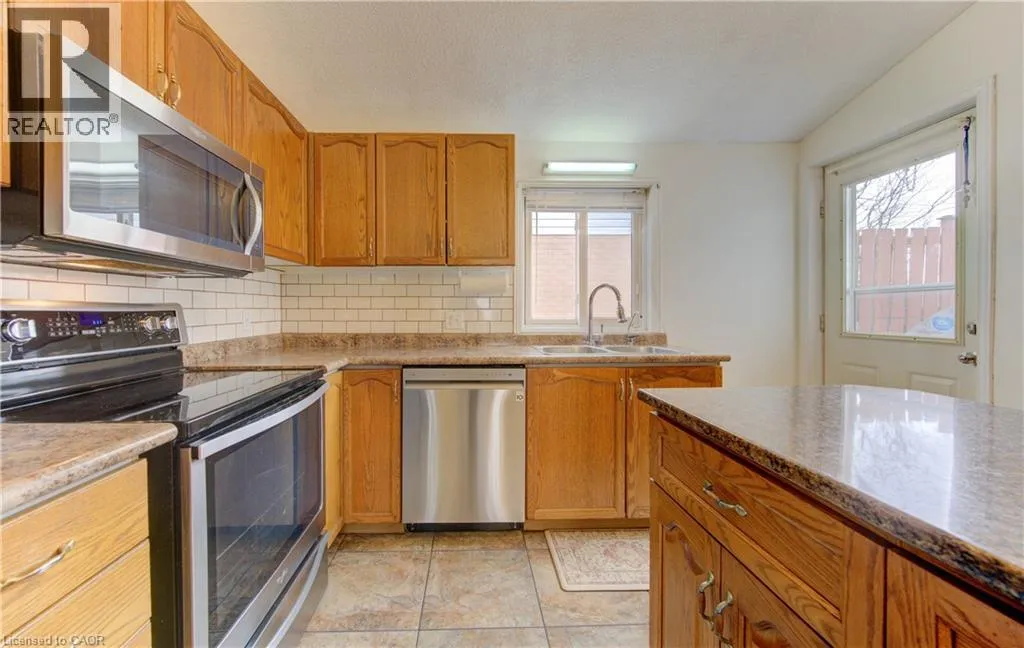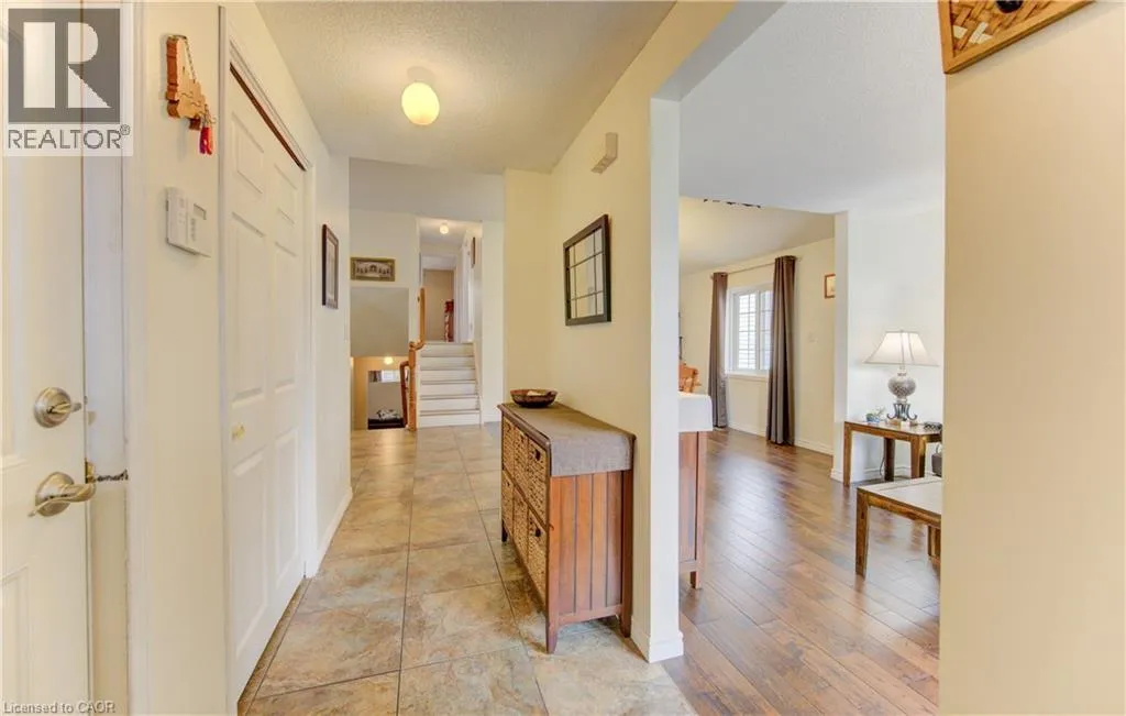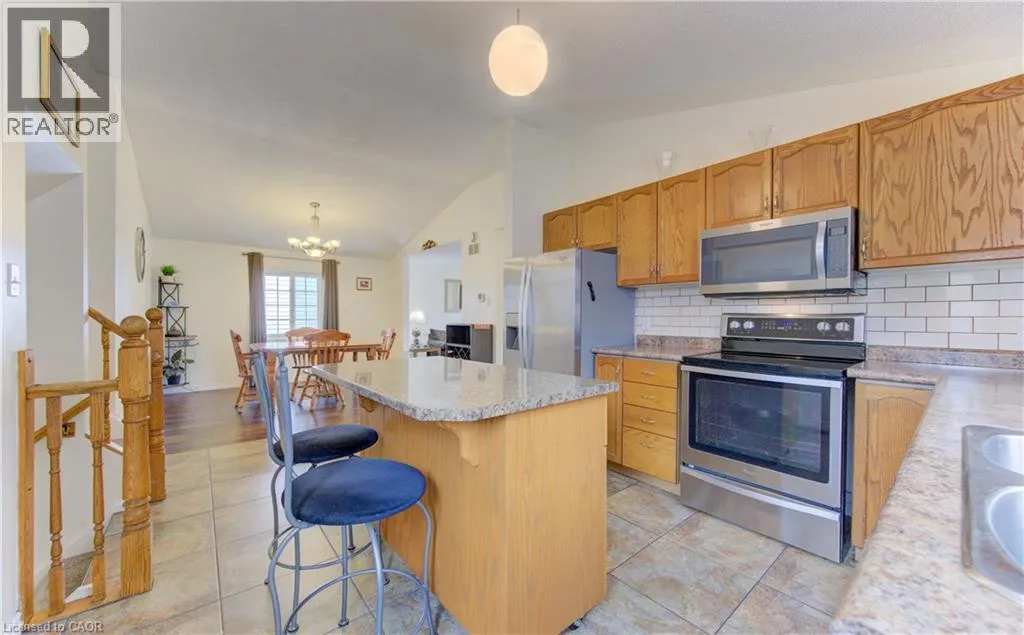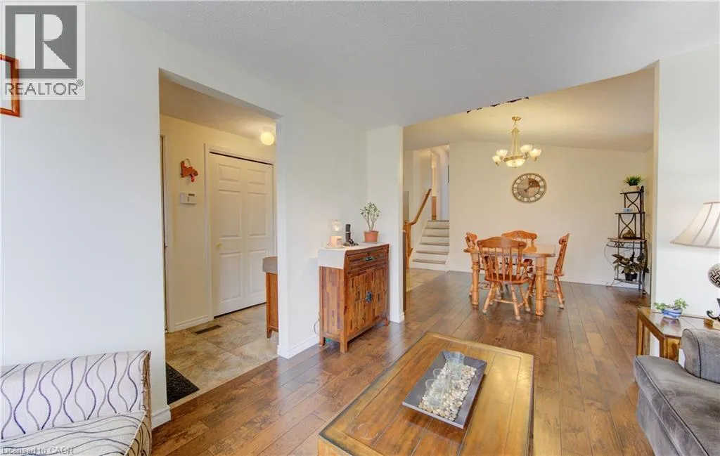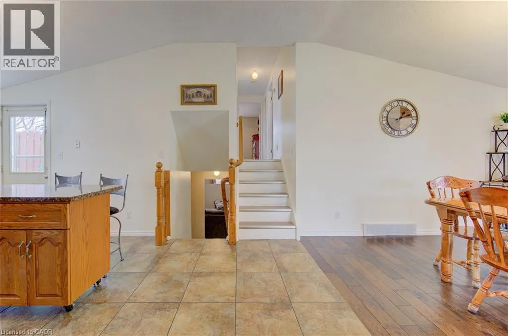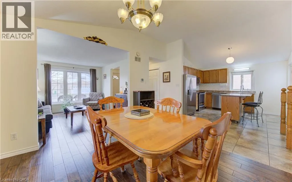 This well cared for 4-bedroom, 2-bathroom back split offers generous living space across four levels and sits on a private lot backing onto a naturalized park. Owned by just two families since it was built in the 1990s, itâs a home that has been consistently maintained. Step inside to a carpet-free main floor finished with ceramic tile and durable hard surface flooring for easy everyday living. The front living room is bright and welcoming, while the formal dining room provides a dedicated space for hosting. The spacious eat-in kitchen, complete with stainless steel appliances, opens directly to the deck and backyard. Upstairs, youâll find three well-sized bedrooms, each with ample closet space. The lower level adds another comfortable living area, anchored by a natural gas fireplace. This level also includes a 2-piece bathroom and a separate flexible room that can function as a home office or kidsâ space, with a rough-in in place for a future full bathroom if desired. The finished basement offers even more flexibility, whether you need a rec room, play space, workout area, or additional living zone. Outside, the fully fenced backyard backs directly onto greenspace with no rear neighbours. Enjoy raised garden beds, a storage shed that can double as a workshop or potting space, and a deck perfect for summer evenings. Additional features include an attached garage with inside entry, a double-wide driveway, and a front deck. Furnace and A/C updated in 2026. Located in the desirable Country Hills neighbourhood, this home offers easy access to schools, transit, and highways. Step right into Rittenhouse Park from your backyard, or take a short walk to Huron Natural Area for trails and outdoor exploration. (id:27476)
