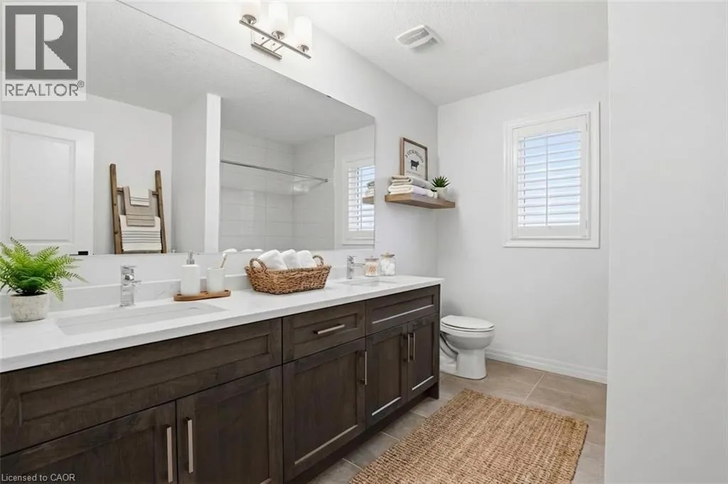 Lackner to Otterbein ***OPEN HOUSE SATURDAY 2-4 PM***BACKS ONTO GREENSPACE**IMMEDIATE POSSESSION/MOVE IN NOW **4 BEDROOMS + 3 FULL BATHROOMS, OFFICE, + VAULTED CEILINGS*** HUGE LOT & DRIVEWAY! SANDRA SPRINGS! KITCHENER'S NEWEST FAMILY SUBDIVISION. Exquisite stone detail on the front gives this home lovely curb appeal as soon as you see it. Modern finishing touches throughout in this grand home boasting over 2900 square feet. Large foyer entry, huge family room open to eat in the kitchen with QUARTZ COUNTER TOPS & BACKSPLASH! Entertainers dream kitchen, island with seating for 6! 9 foot ceilings, pot lights, modern millwork & trims. 4 BEDROOMS PLUS UPPER FLOOR OFFICE and 2 ENSUITES, 3 FULL BATHS perfect for the drawing family! FULLY LOADED WITH Designer upgrades such as upgraded lighting package, SOARING VAULTED CEILINGS. Photos are virtually staged. (id:27476)