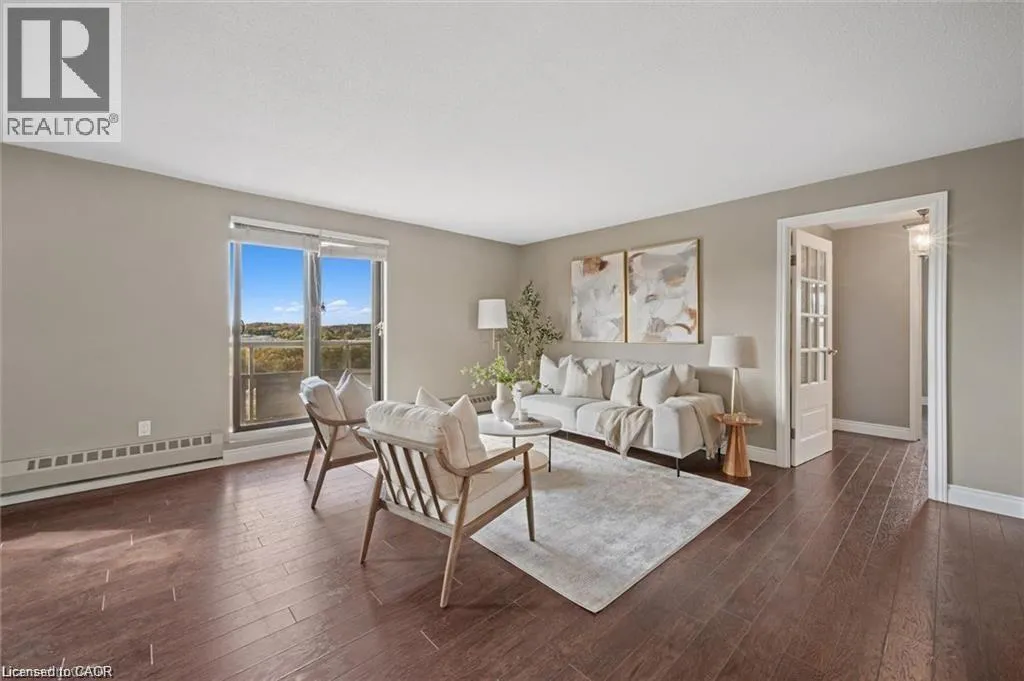 Located corner of Blockline and Courtland Remarks Public Remarks: Suite 710 at 1100 Courtland Avenue East in Courtland Terrace located on the 7th floor. Stunning sunset views from this updated 2-bedroom corner unit with abundant natural light in living room and both bedrooms. Bright, updated kitchen and spacious living area. Carpet-free, move-in-ready condo with open concept layout with newly renovated kitchen and stylishly renovated bathroom. Generously sized balcony for morning coffee or your evening relaxation. Exclusive one parking spot located front row of back entrance of the building. Condo fees include heat, hydro, water, and building maintenance. This is a pet friendly building. Building amenities include elevator access, in-ground pool, sauna, play area, fitness center, party room and laundry facilities. Central location with easy access to public transit, LRT and shopping along Fairview Road South, grocery stores, schools, parks, and highways (id:27476)