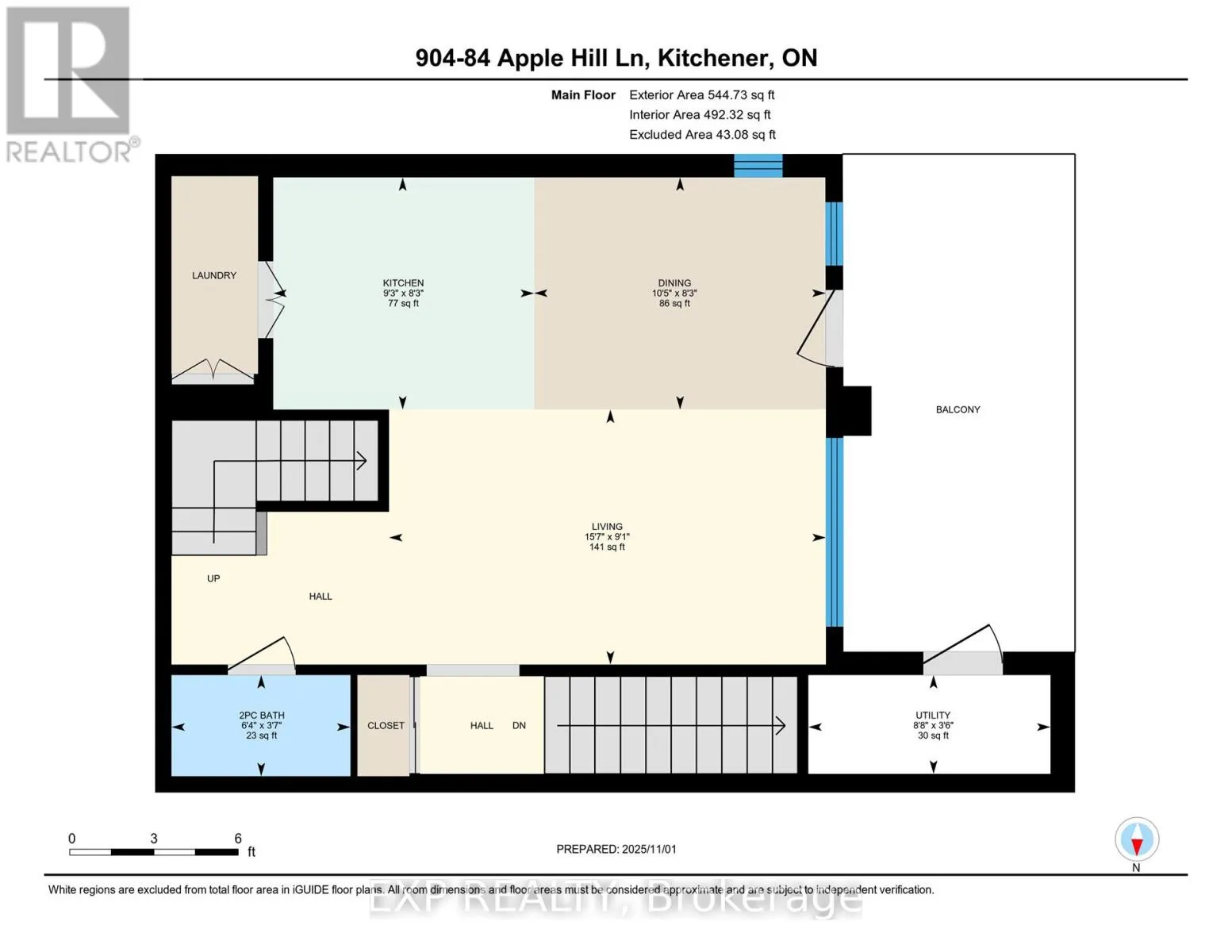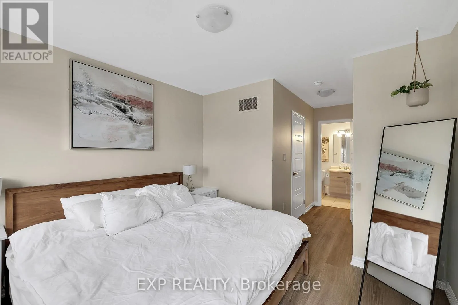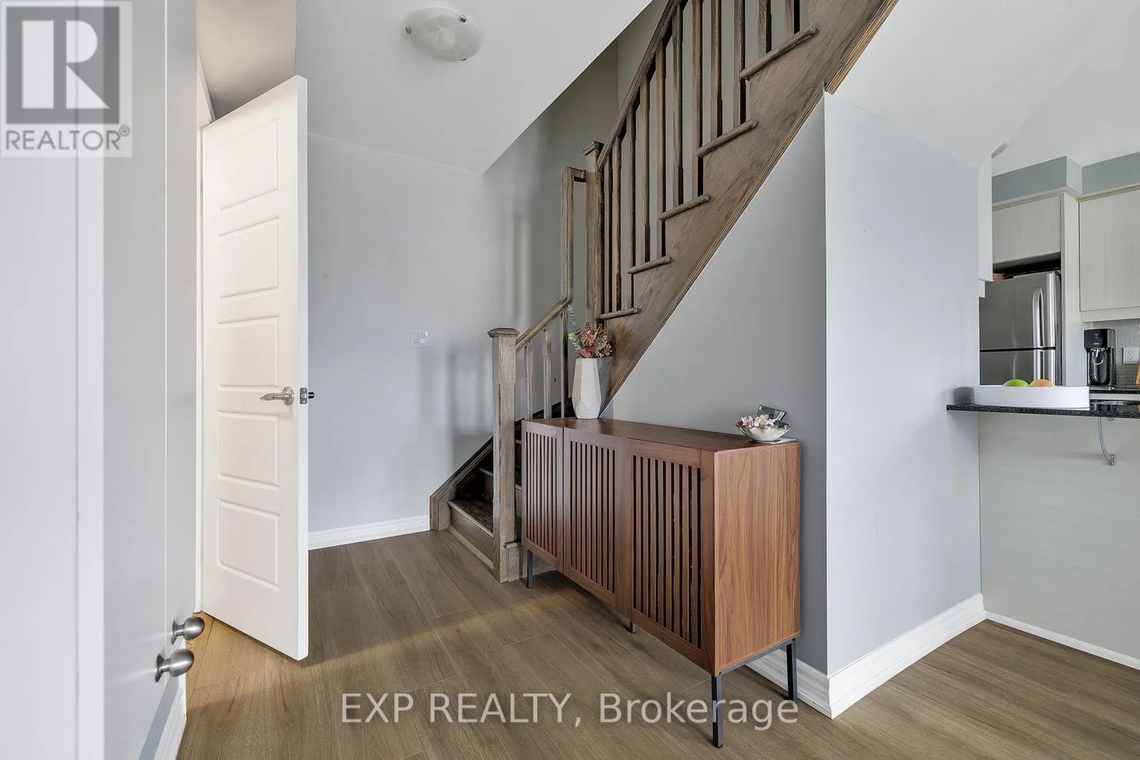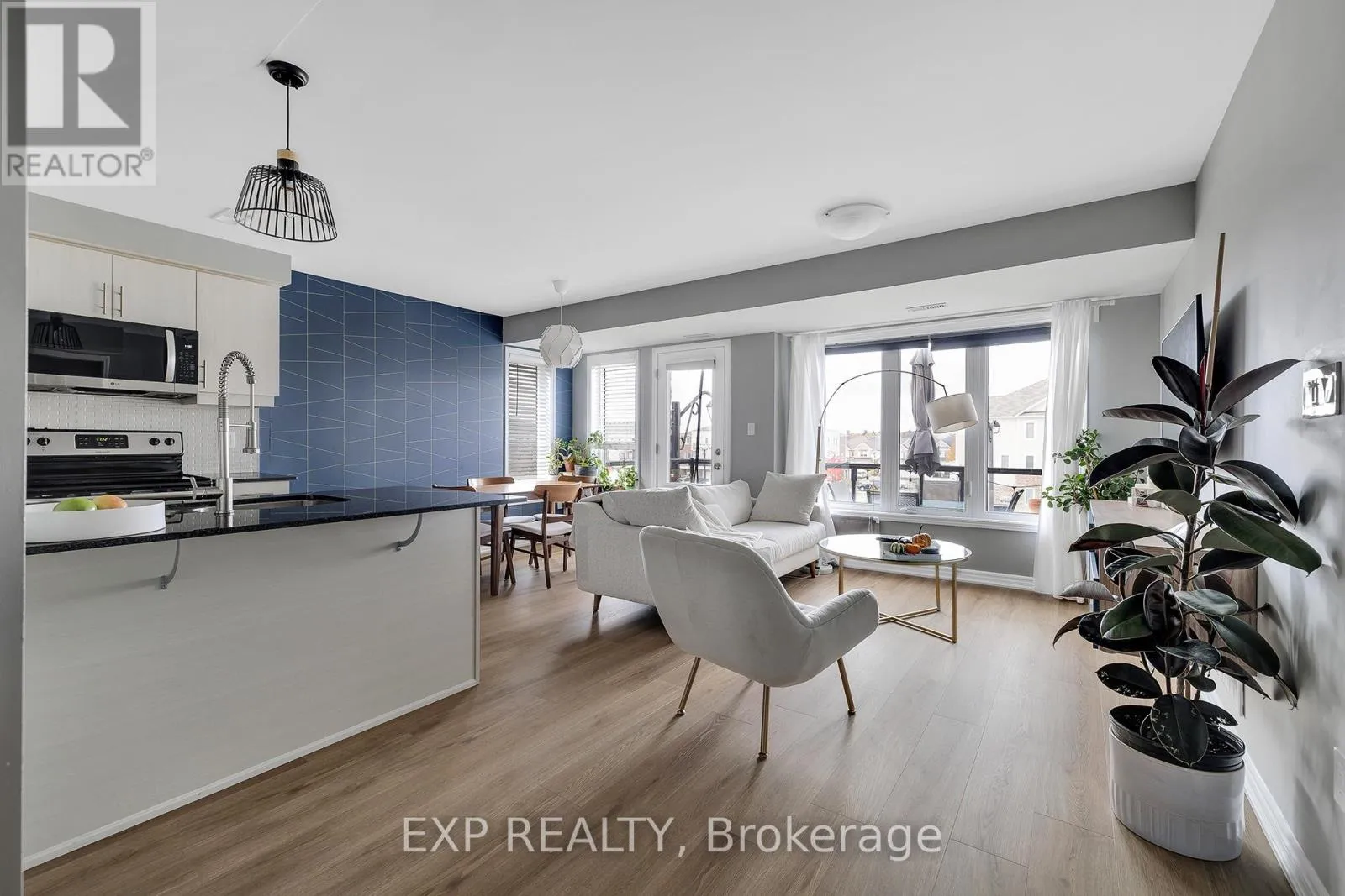 Seabrook/Apple Hill Welcome to this executive end-unit stacked townhome by Mattamy, located in the highly desirable HuronPark community. Move-in ready and thoughtfully upgraded, this carpet-free home features a bright open-concept layout with 9-foot ceilings and large corner windows that fill the space with natural light. This upgraded two-bedroom layout includes a charming Juliet balcony. Both bedrooms offer their own ensuite bathrooms and walk-in closets, providing comfort, privacy, and functionality. The modern kitchen is equipped with granite countertops, a stylish tile backsplash, stainless steel appliances, and a separate pantry for additional storage. Enjoy the convenience of in-suite laundry with a stacked washer and dryer, along with an oversized second-floor deck that is perfect for relaxing or entertaining. The home includes thousands of dollars in builder upgrades, such as two hardwood staircases, upgraded laminate flooring, granite countertops, and a third bathroom. One owned parking space is conveniently located directly in front of the unit for easy access. Situated in the sought-after Huron Park neighbourhood, this home is just steps from scenic trails, green spaces, parks, shopping, restaurants, schools, and sports complexes, offering a perfect balance of modern living, quality finishes, and an excellent location. (id:27476)