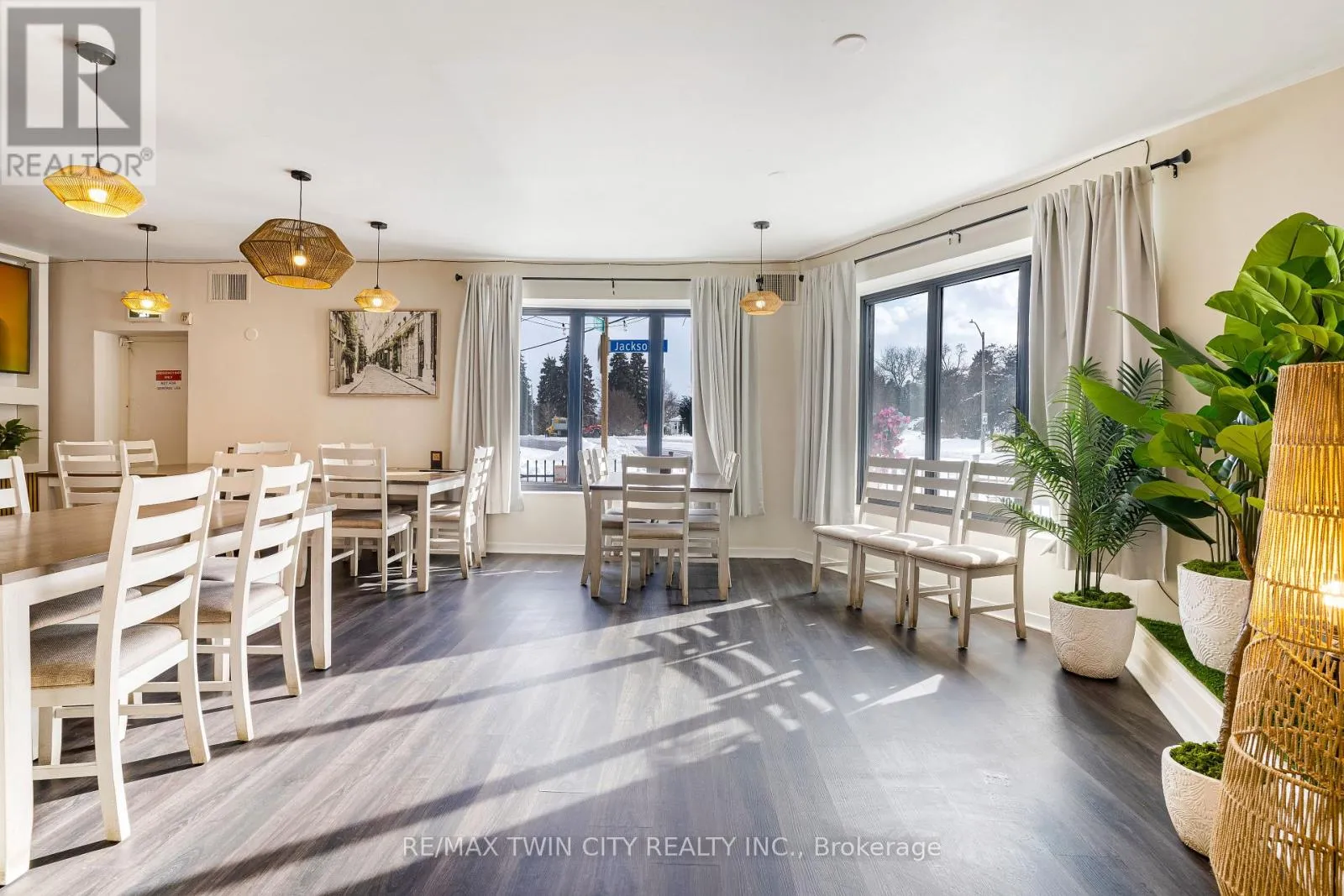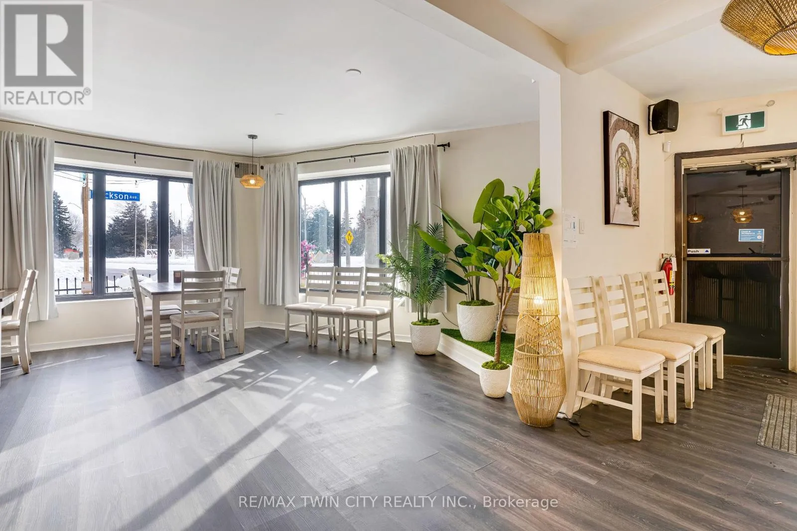 Cross Streets: Jackson Ave. ** Directions: King St E & Jackson Ave. Turnkey, Fully Established Indian Restaurant for Sale - Prime High-Traffic Location! An exceptional opportunity to own a thriving, turnkey Indian restaurant located in a prime, high-visibility area surrounded by residential neighborhoods, offices, and retail plazas. This well-established business features a modern and inviting dining area with seating for 70+ guests, complemented by a spacious outdoor patio - perfect for additional seasonal dining. The fully equipped commercial kitchen includes a 10 ft exhaust hood, high-quality appliances, ample prep space, and everything needed to continue smooth day-to-day operations. The restaurant is LLBO licensed for both indoor and patio service, offering flexibility for a full-service dining experience. With 20+ on-site parking spaces, easy access to Highway 7/8, Highway 401, and public transit, the location ensures a steady flow of customers and excellent exposure. Whether you're an experienced restaurateur or an investor looking for a ready-to-operate business, this opportunity provides a strong foundation for continued success and growth. Please note: Neither the Buyer nor the Buyer's Agent shall make direct contact with the Seller's employees. Schedule a private tour and explore the incredible potential this established restaurant has to offer! (id:27476)