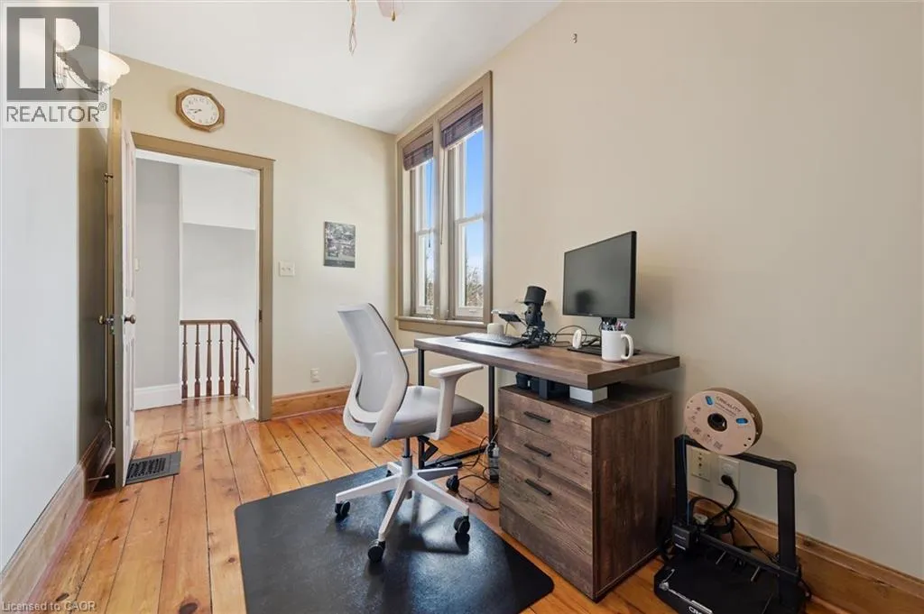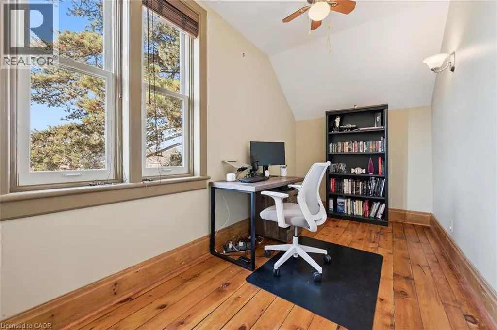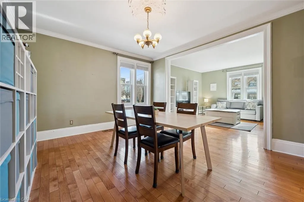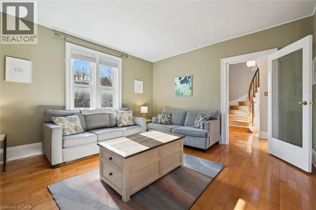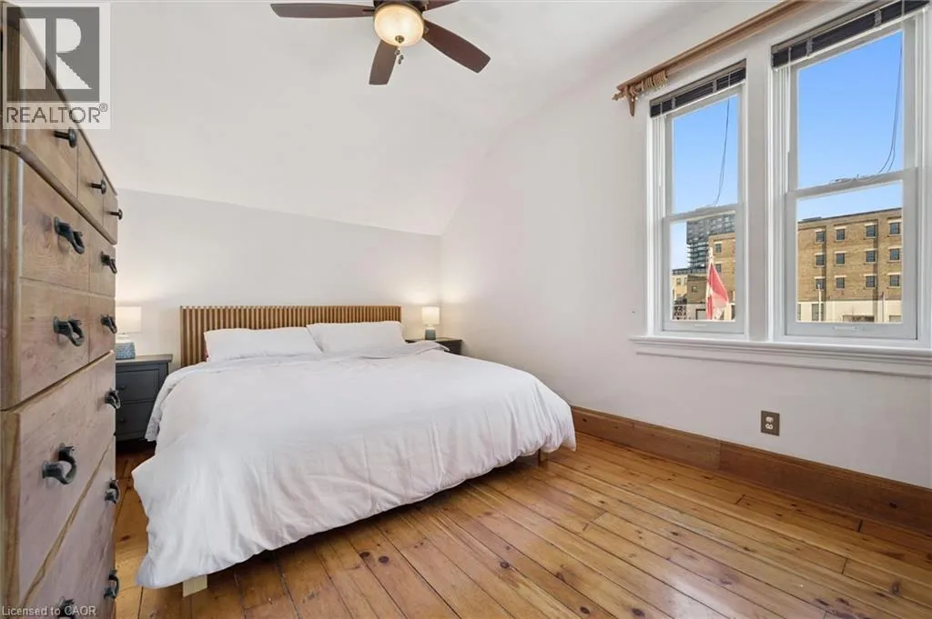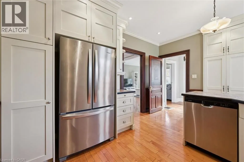 VICTORIA ST S TO OAK STREET, LT ONTO LINDEN AVE This home is a rare blend of historic character and modern livingâquietly set on a tree-lined street in the heart of the cityâs tech hub, just steps from Victoria Park. The double-brick exterior offers undeniable curb appeal, complimented by a covered front porch and parking for 3 cars. Inside, the foyer welcomes you with a curved birch staircase with the original banister, showcasing the exceptional craftsmanship this area is known for. To the right, the spacious living room features maple hardwood flooring that flows seamlessly into the formal dining room and continues into the beautifully designed kitchenâboth stylish and highly functional. Thoughtful details like elegant trim and baseboards enhance the homeâs timeless appeal throughout. From the kitchen, a door leads to the former summer kitchen, open to lots of possible uses and even has a loft and a separate heating system. Step outside to discover your fenced yard with deck and room for gardening! The back room also has convenient access to the side yard and a shed complete with a barn door and rampâperfect for easy storage. Upstairs, youâll find 4 well-sized bedrooms and a 4 pc bathroom. Walk to work, shops, dining, and green space, with The Tannery and its restaurants, cafés, and services just around the corner. For the history buffs: This Ontario Gothic classic home was built in 1889 for Henry Wildfong: a 19th century builder, contractor, and local politician. This is a truly move-in-ready heritage style home in a convenient location. Book your private showing today! (id:27476)