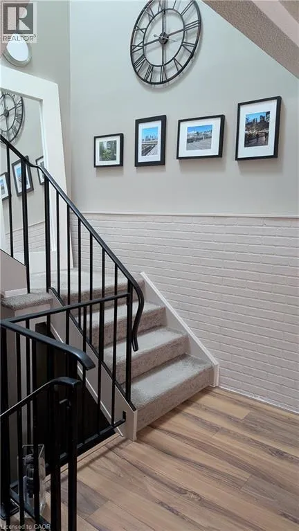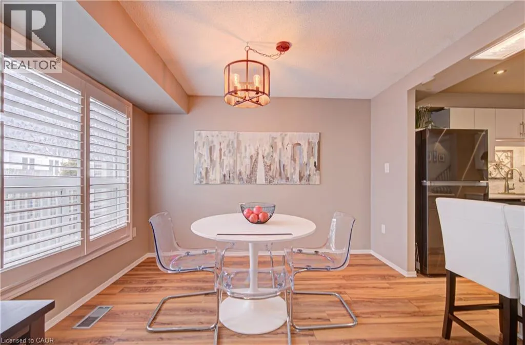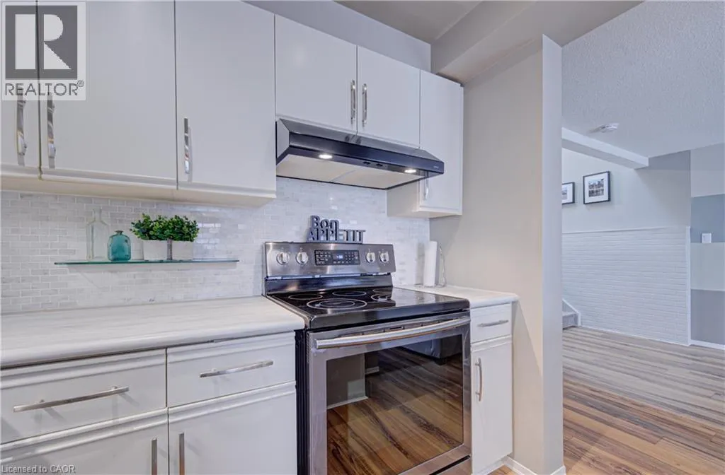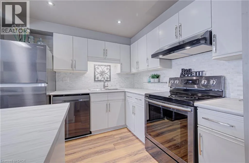 Homer Watson Blvd to Pioneer Dr to Green Valley Dr MOVE-IN READY, CORNER UNIT, fully updated and conveniently located just minutes from the 401, shopping, Conestoga College and many other sought after community amenities. Immediately you will notice the pride of ownership and contemporary finishings making this unit stand out. Upon entry into the roomy entrance, you will quickly notice the polished appearance of the entryway doors, hallway and main floor powder room. Direct access to garage and ample built-in storage adds a next level of convenience. Heading into the pinnacle of the home, your new kitchen, youâll feast your eyes on a fully updated space. Stainless-steel appliances (2019), oversized sink, extended island surface, custom backsplash, over sink lighting, custom California shutters neutral and modern colours throughout, this home is move-in-ready. Each generous sized bedroom complete with upgraded overhead lighting, custom blinds, clean and neutral carpeting. Full bath features a restored bathtub, new flooring and abundant space for your daily preparation. Furnace and AC (2019) on the lower level and plentiful storage spaces. Backyard will impress with low maintenance rock perennial gardens, floating deck, and big, beautiful trees to provide privacy and peace. All you need to do is come see for yourself how well maintained this beautiful home is and get ready to call it yours! (id:27476)