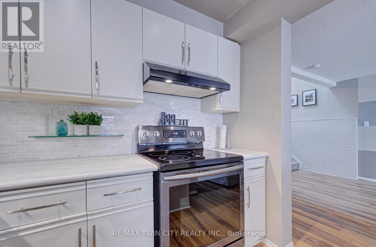 Cross Streets: Pioneer Dr. ** Directions: Homer Watson Blvd to Pioneer Dr to Green Valley Dr. MOVE-IN READY, CORNER UNIT, fully updated and conveniently located just minutes from the 401, shopping, Conestoga College and many other sought after community amenities. Immediately you will notice the pride of ownership and contemporary finishings making this unit stand out. Upon entry into the roomy entrance, you will quickly notice the polished appearance of the entryway doors, hallway and main floor powder room. Direct access to garage and ample built-in storage adds a next level of convenience. Heading into the pinnacle of the home, your new kitchen, you'll feast your eyes on a fully updated space. Stainless-steel appliances (2019), oversized sink, extended island surface, custom backsplash, over sink lighting, custom California shutters neutral and modern colours throughout, this home is move-in-ready. Each generous sized bedroom complete with upgraded overhead lighting, custom blinds, clean and neutral carpeting. Full bath features a restored bathtub, new flooring and abundant space for your daily preparation. Furnace and AC (2019) on the lower level and plentiful storage spaces. Backyard will impress with low maintenance rock perennial gardens, floating deck, and big, beautiful trees to provide privacy and peace. All you need to do is come see for yourself how well maintained this beautiful home is and get ready to call it yours! (id:27476)