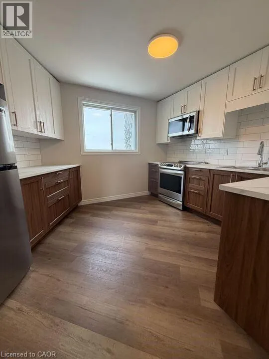 Welcome to this newly renovated 3-bedroom townhome in the sought-after Laurentian Hills community, ideally located in Kitchenerâs west end. Offering a functional two-storey layout, this home features a spacious main floor with defined living and dining areas, perfect for both everyday living and entertaining. Large windows fill the space with natural light, creating a warm and inviting atmosphere throughout. The home has been thoughtfully updated and includes brand new appliances, giving tenants a fresh, modern feel with the comfort of move-in ready living. Upstairs, youâll find three comfortable bedrooms and a full bathroom, providing plenty of space for families, professionals, or roommates. The clean, neutral finishes throughout make it easy to personalize while enjoying a polished, updated space. Enjoy the convenience of an attached garage plus additional driveway parking, along with access to desirable condo amenities including an outdoor pool, playground, visitor parking, and landscaped common areas. Snow removal and exterior maintenance are handled by the condo corporation, making for easy, stress-free living. Situated just minutes from McLennan Park, walking trails, schools, shopping, and public transit, this location also offers quick access to Highway 8âideal for commuters. A fantastic lease opportunity in a family-friendly neighbourhoodâthis home combines modern updates, convenience, and location in one complete package. (id:27476)