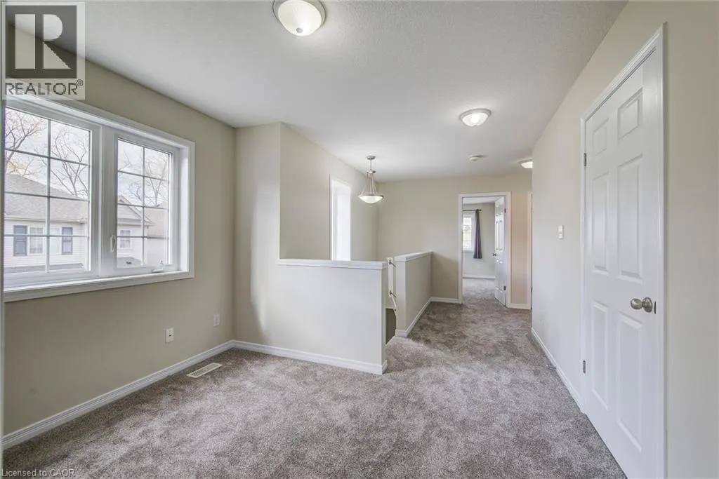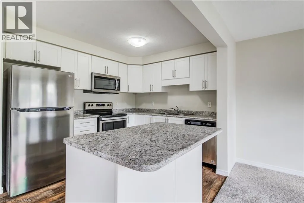 DOON VALLEY DR. Welcome to 50 Pinnacle Drive Unit 40, Kitchener, Ontario N2P 0H8! This beautiful 3-bedroom, 2.5-bathroom corner townhome offers the perfect blend of comfort, style, and convenience. Fresh paint and brand-new carpeting throughout, along with abundant natural light, create a bright and move-in ready home. The main level features a modern open-concept layout with neutral tones and elegant finishes, while the spacious eat-in kitchen with a breakfast island overlooks a charming patio, ideal for outdoor dining or relaxing. Upstairs, the primary bedroom includes a 4-piece ensuite and double closets, and two additional bedrooms, ample storage, and a versatile den area provide flexible space for work or study. For added convenience, the laundry room is located on the top floor close to the bedrooms. Additional highlights include direct garage access, parking for two vehicles, and a large basement ready to be transformed into a recreation room, home gym, or additional living space. Situated near amenities, Conestoga College, parks, and just minutes from Highway 401, this bright and cozy corner unit offers a lifestyle of ease, warmth, and functionality. (id:27476)