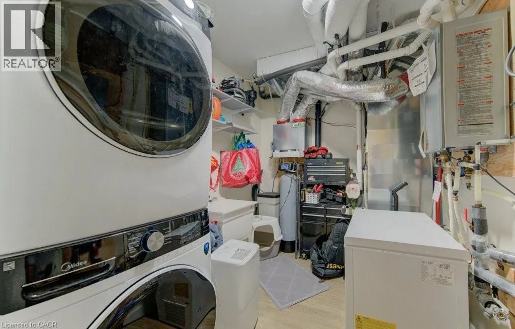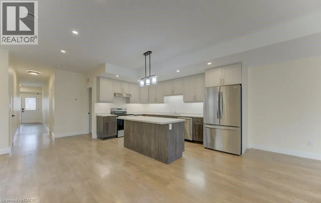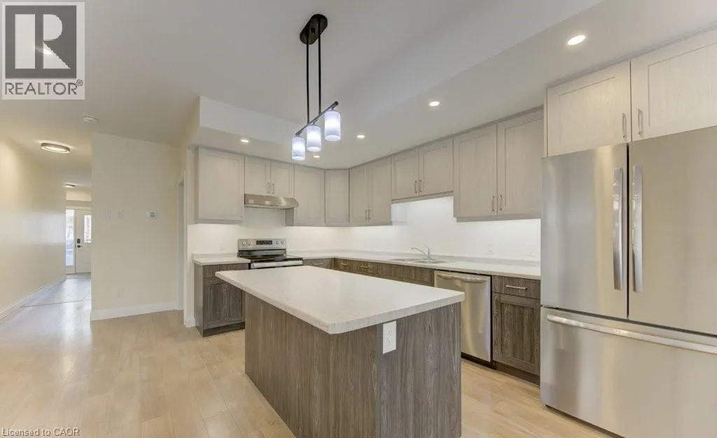 2 year old purposely built duplex near Grand River hospital! Huge and bright 3 bed/3 bath beautiful upper floor unit with open concept main floor. 9 ceiling. Kitchen equipped with dishwasher, fridge, stove with exhaust fan. Patio door off LivRoom. Upper floor washer and dryer, water softener, air ex-change system. Ensuite and big walking closets in Master Bedroom. Lower unit with 8'6 ceiling, 2 spacious bedrooms, master with walking closet, cold room, spacious laundry area, open space LivRoom, DinRoom and kitchen with dishwasher, stove, fridge. Carpet free throughout. Hot water on demand systems in both units. Separate entries. All utilities are separately metered. Backs onto Walter Park! Under 2 min on foot to ION bus transit and pub-lic schools. Garage and two front parking spaces! (id:27476)