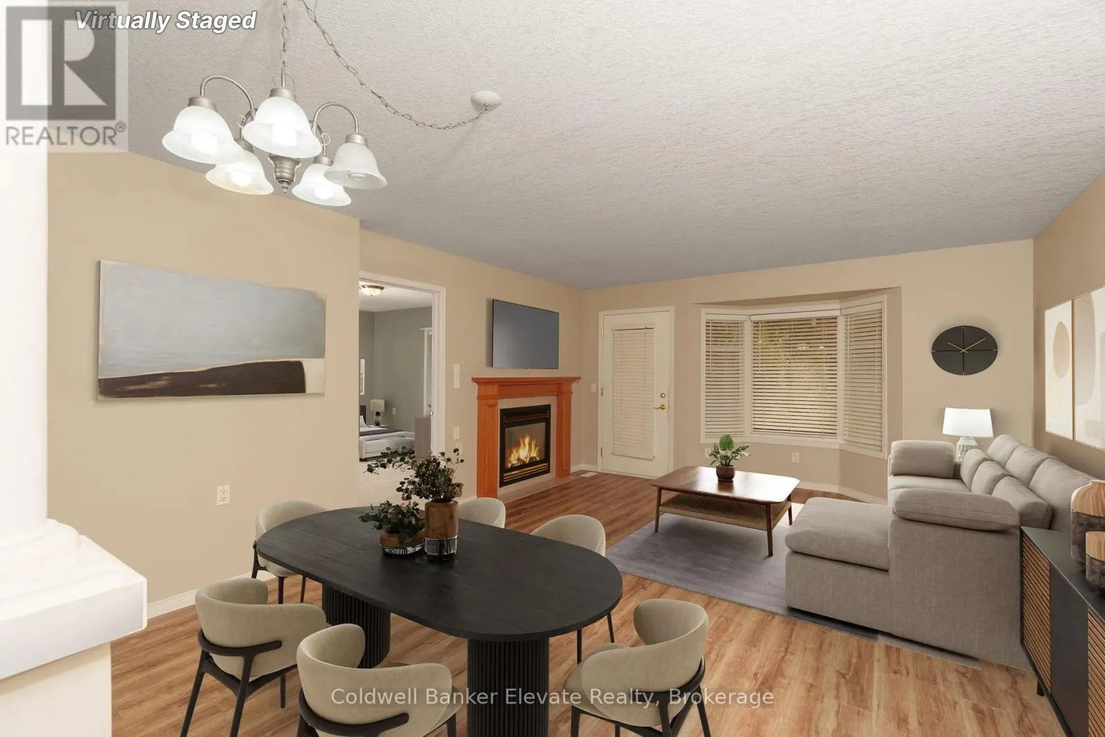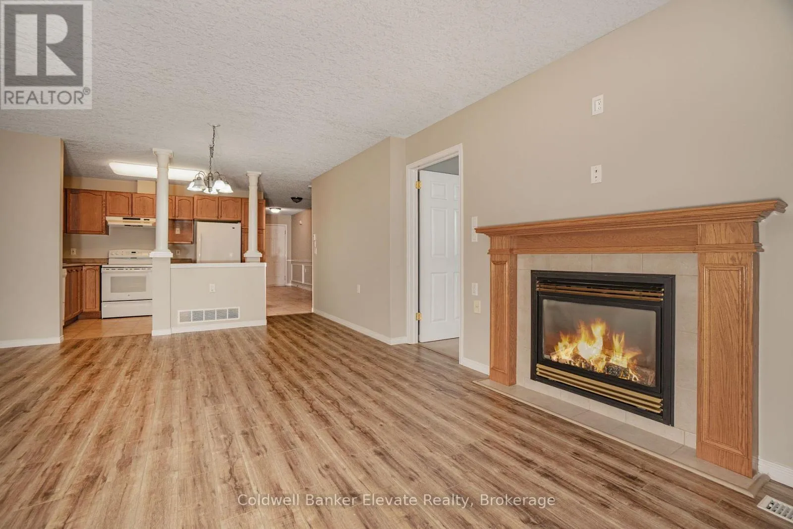 Cross Streets: Kingsway Dr/Greenfield Ave. ** Directions: Townhome is located in middle row of houses directly across from the visitor parking. Welcome to Trinity Village Terrace, a 1,184 sq. ft. life lease townhome featuring 2 bedrooms and 3 bathrooms, all situated on a single, accessible level. The freshly painted interior, including the garage, provides a clean and modern feel throughout. The open-concept layout includes vinyl flooring in the living and dining area and large windows that create a bright, welcoming atmosphere. Enjoy added comfort with a gas fireplace in the living room and the convenience of a Stannah Canada stairlift for easy accessibility. Main level laundry enhances everyday practicality. The professionally finished basement, adding approximately 1,115 sq. ft., is ideal for family visits or a caregiver suite, featuring a full kitchen, living room, dining area, den, and a 3-piece bathroom. Ideally located just 2 minutes from Fairview Park and 5 minutes from Fairway Station, with pharmacies, grocery stores, and shopping nearby, this property perfectly combines comfort, functionality, and accessibility. (id:27476)