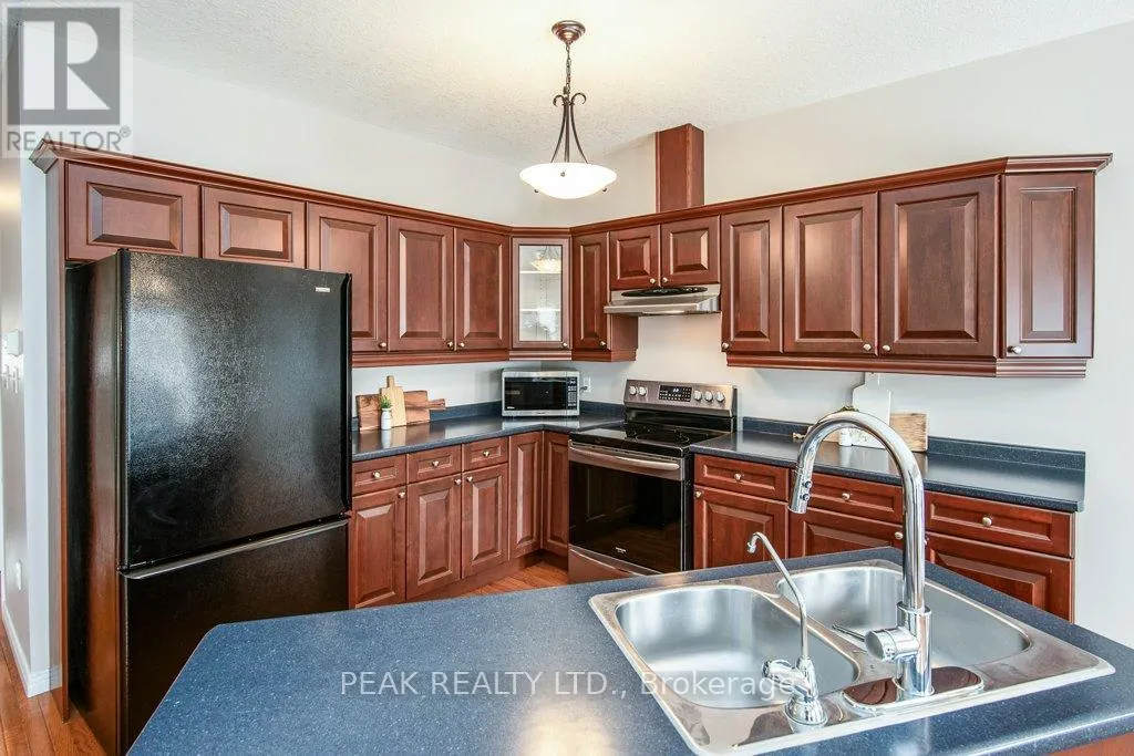 Cross Streets: Homer Watson Blvd. ** Directions: Homer Watson Blvd to Doon Village Rd. How long have you been looking for a 3 bedroom 3 full bath Bungalow condo, finished top to bottom w/ backyard, double garage & double driveway? This is it! Before you even enter this bright bungalow, you'll be greeted with the inviting front porch and updated front door, then comes the main floor that features a front bedroom w/ access to a full 4 piece bath (makes for a great guest bedroom or office). The primary bedroom suite features a huge window facing south west, updated carpet, a large walk-in-closet w/ a mirrored door as well as a modern ensuite bath w/ an updated walk-in shower w/ glass doors .. right next to the Primary bedroom on the main floor, there is the laundry closet, convenience at its best! The open concept Living area including the Living room, Dining room and kitchen has lots of windows overlooking the back of the house, always bathing in the afternoon sunshine due to the south west exposure, beautiful hardwood floors, vaulted ceilings & a gorgeous fireplace in the living room, garden doors off the dining room to the composite deck with awning, remote control operated. The open staircase next to the Living room will take you to the finished bright walkout basement, which really adds to this already spacious home. In the walkout basement, there is a large Rec room with updated sliding doors with built in blinds to a patio, a good size bedroom with a decent window and a large closet, a full 3 piece bath for your added convenience, an office/play area, in addition to a hobby room (Bonus room), a cold room, a storage room full or organizers (included with the house), right next to the utility room. This beautiful bungalow condo features California Stucco Ceilings & Custom shutters throughout. It also includes a backyard & 3 outdoor siting areas, loaded with updates, auto garage door opener, Furnace & AC (2021), Water Purification System, C/V, close to shopping, bus, parks, Hiway 401. Pride of ownership, move in ready bungalow in a great location. (id:27476)