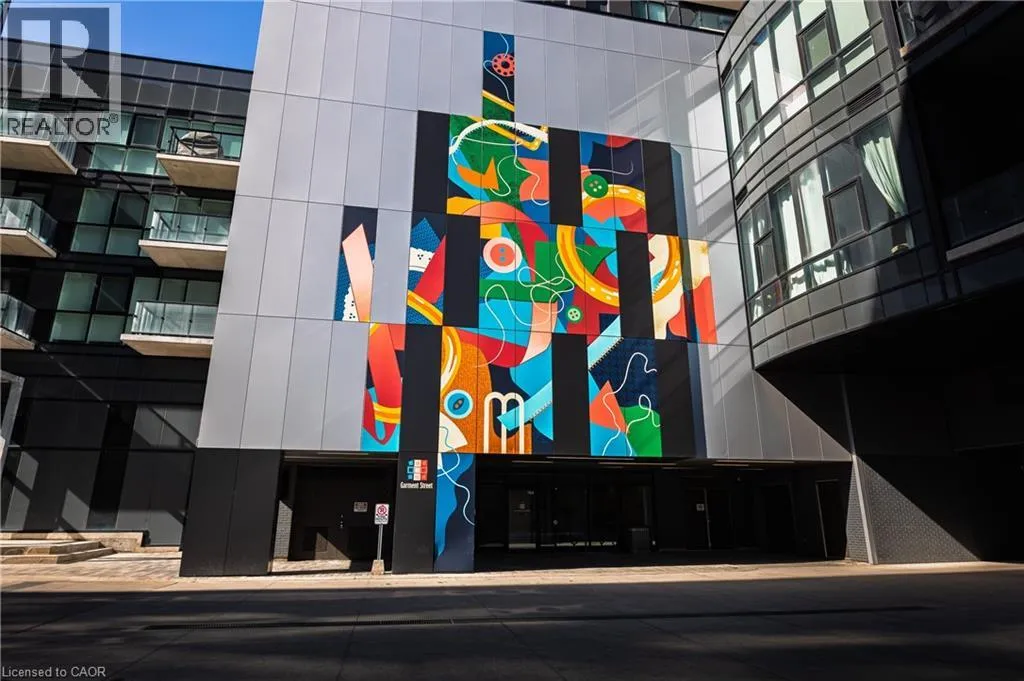 Welcome to Garment Street, Kitchenerâs vibrant Innovation District! This modern bachelor/studio-style condo offers a thoughtfully designed open-concept layout. The bright living area is filled with natural light from large windows and features engineered flooring throughout, creating a clean and contemporary feel. The kitchen is beautifully finished with modern cabinetry, granite countertops, backsplash, and stainless steel appliances. The in-suite washer and dryer add everyday convenience. Residents of this sought-after building enjoy exceptional amenities including an outdoor swimming pool, half-court basketball court, landscaped terrace with BBQ area, party room with private patio, outdoor dog run with pet washing stations, fitness room, and a yoga/wellness studio. Located steps from the ION Light Rail Transit, GO Station, and bus routes. This unbeatable location is within walking distance to Tech Hubs including Google. Youâll also be just minutes from Downtown Kitchener, Victoria Park, restaurants, shopping, and more. Donât miss this fantastic opportunity. (id:27476)