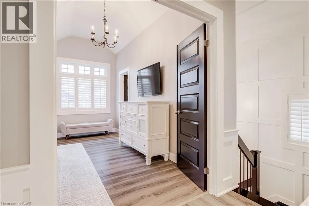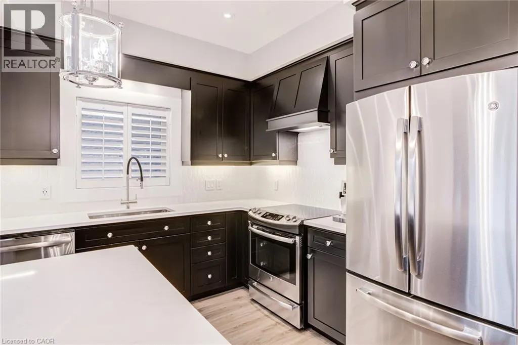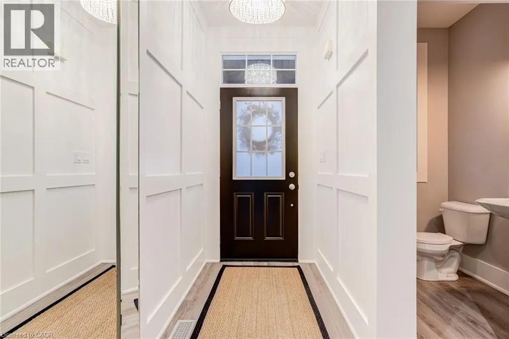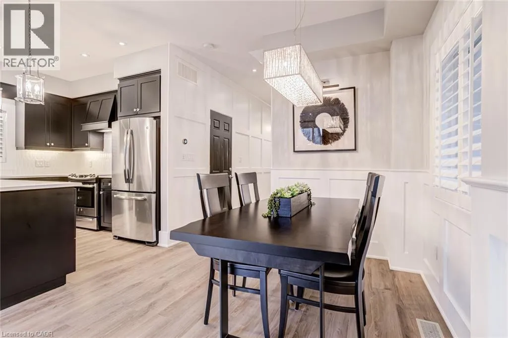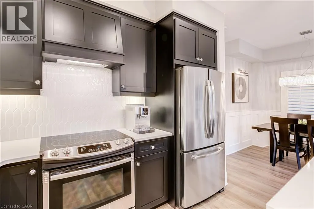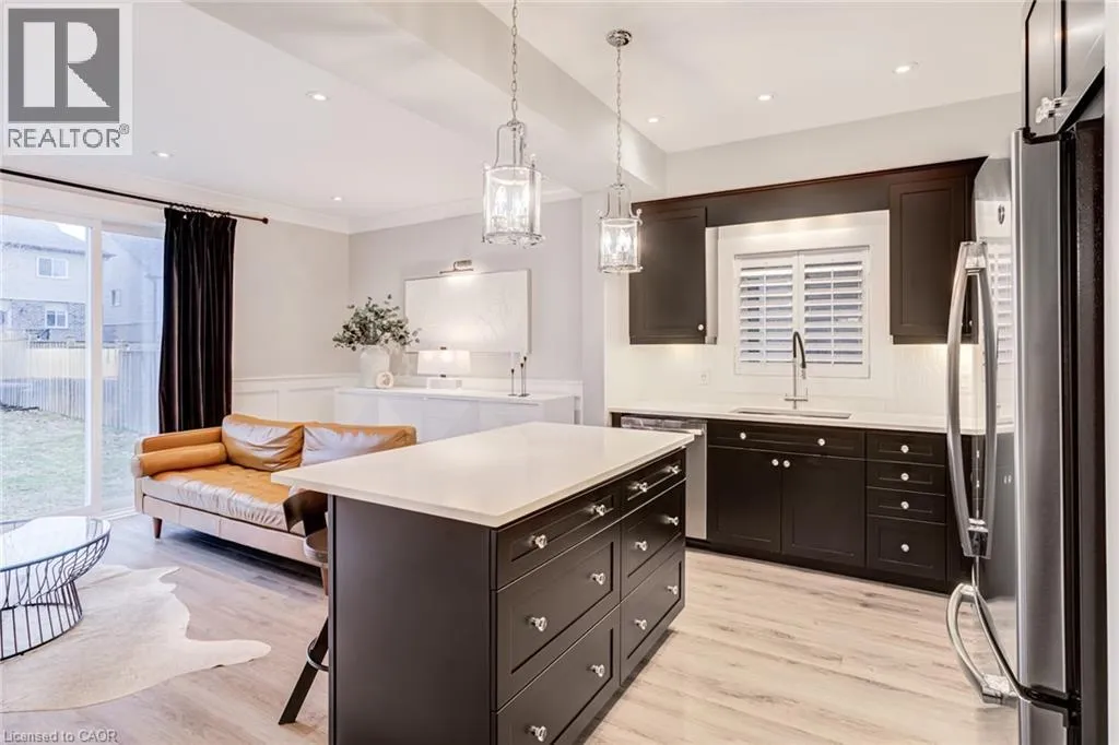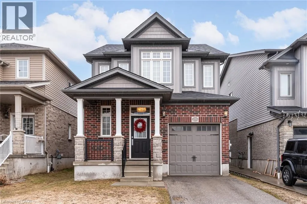 HWY 401 to Homer Watson to Doon Street to Cranbrook Set in the sought-after Doon South community of Kitchener, this open concept 3-bedroom, 2.5-bathroom detached home was built in 2015 and has been thoughtfully updated throughout, with brand new flooring replacing all carpet. The home offers 9-foot ceilings, crown moulding, wainscoting, and California shutters throughout. A beautiful kitchen with quartz counter tops and upgraded appliances overloops an open concept living room and dining room, anchored by an electric fireplace, and oversized sliding doors to the fully fenced backyard. The second floor boasts a large primary bedroom with a walk-in closet and 3-piece ensuite, two additional bedrooms, and a 4-piece bath. The spacious basement with large windows and bathroom rough-in is ready for your finishing touches. Located steps to the trail system, 2km to the Grand River walking paths, 3.5km to Highway 401 and Conestoga College, 10 minutes to Chicopee Ski Hill, and 15 minutes to the Cambridge Gas Light District. (id:27476)