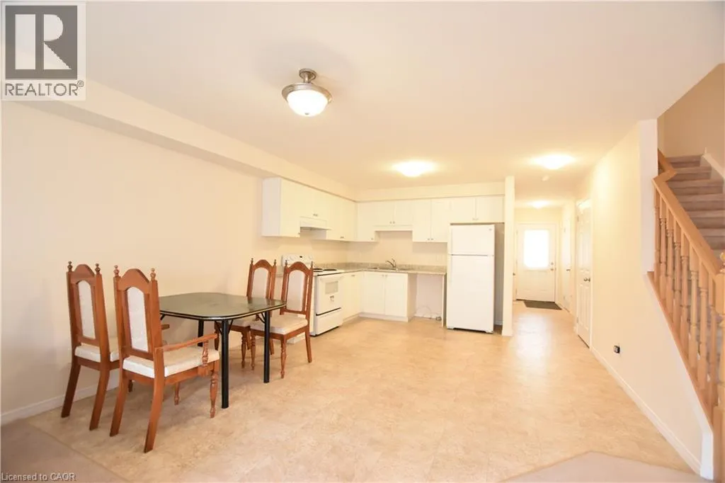 North of Thomas Slee Dr. Welcome to this charming townhouse in the highly sought-after, family-friendly community of Doon South. Known for its peaceful atmosphere, this quiet neighborhood is ideally situated just one minute from scenic forest trails, a short walk to Groh Public School, and only five minutes from the 401 Expressway. Step inside to an inviting open-concept main floor featuring a spacious great room with carpet flooring and patio doors leading to a well-sized, fenced backyard with a gate that can be access to the aisle. The dinette area flows seamlessly into the kitchen, creating a bright, open space perfect for family gatherings and entertaining. Upstairs, youâll find three bedrooms. The primary suite offers a generous walk-in closet with a window, and a true highlightâa private balcony accessible through glass French doors, providing the perfect spot to relax and enjoy fresh air. The main bathroom features a relaxing Jacuzzi tub, a separate shower, and a single sink. The two additional bedrooms are well-sized and finished with carpet flooring. The unfinished basement offers great potential with large windows, and includes a laundry area with a utility sink. The home also features an owned water softener and a rented hot water heater. (id:27476)