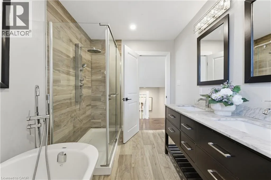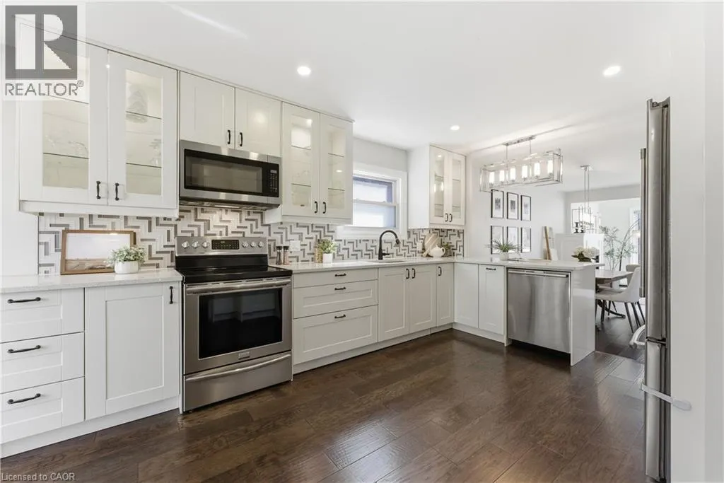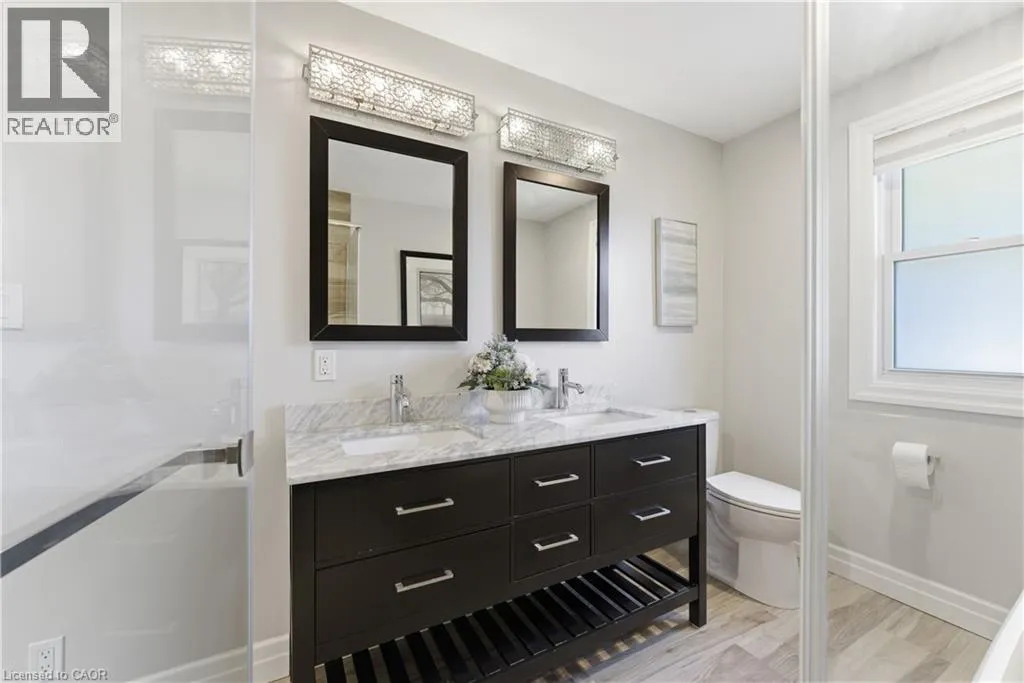 Old Mill Road / Mill Park Drive Welcome to 520 Mill Park Drive. This beautiful family home is nestled in a quiet Kitchener neighbourhood and offers the perfect blend of comfort, space, and lifestyle. The open-concept main floor welcomes you with a bright, inviting atmosphere, centered around a cozy fireplace. Perfect for daily life and entertaining, the modern kitchen features stainless steel appliances and seamlessly connects to the dining area. The powder bathroom adds convenience and truly completes the main level. The primary bedroom beams with natural light and features its own private ensuite, an incredible space to unwind with a book at the end of a busy day. Two additional bedrooms, and another full bathroom, are ideal for growing families, giving everyone their own space. A secluded, charming balcony is an added second-floor surprise, somewhere you can enjoy your morning coffee. The finished basement significantly expands your living space and offers exceptional flexibility. This area is perfect for customization, whether you envision a media room, a children's play zone, or a dedicated home gym. Additional features include an upgraded bathroom, a convenient laundry room, and plenty of storage. Plus, direct access to the lower deck bar area creates an ideal setup for summer entertaining. Step outside to a large, private backyard, surrounded by greenery, complete with a large upper deck and a storage shed. You'll quickly fall in love with this quiet neighborhood! Enjoy the peaceful atmosphere that comes from being so close to the Grand River and its surrounding trails. Plus, you'll find great schools, Conestoga College, and a variety of shopping and dining options just a short distance away. This home offers the perfect combination of indoor comfort and outdoor enjoyment, all in a location you will love. Come to our open house or book your private showing today! (id:27476)