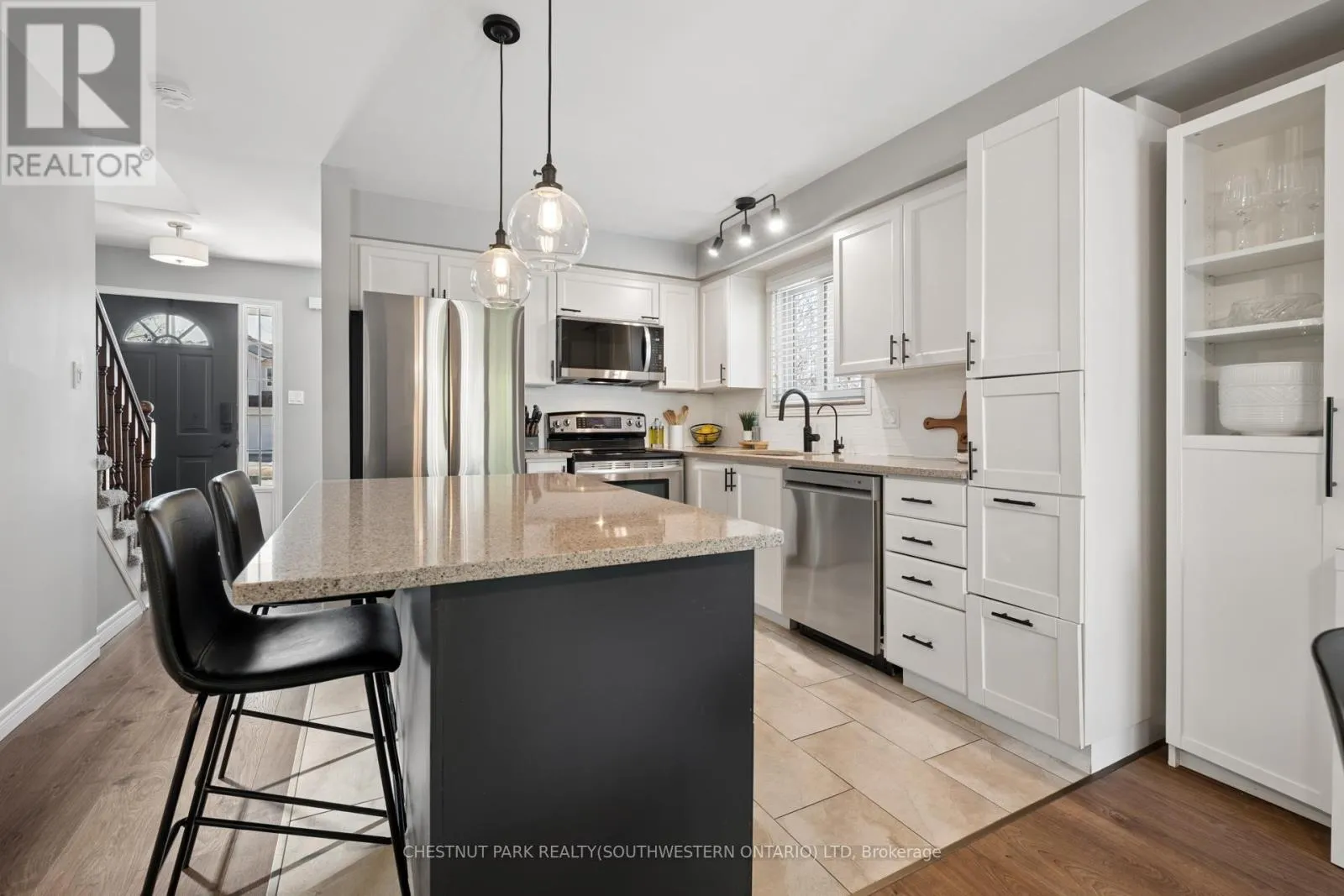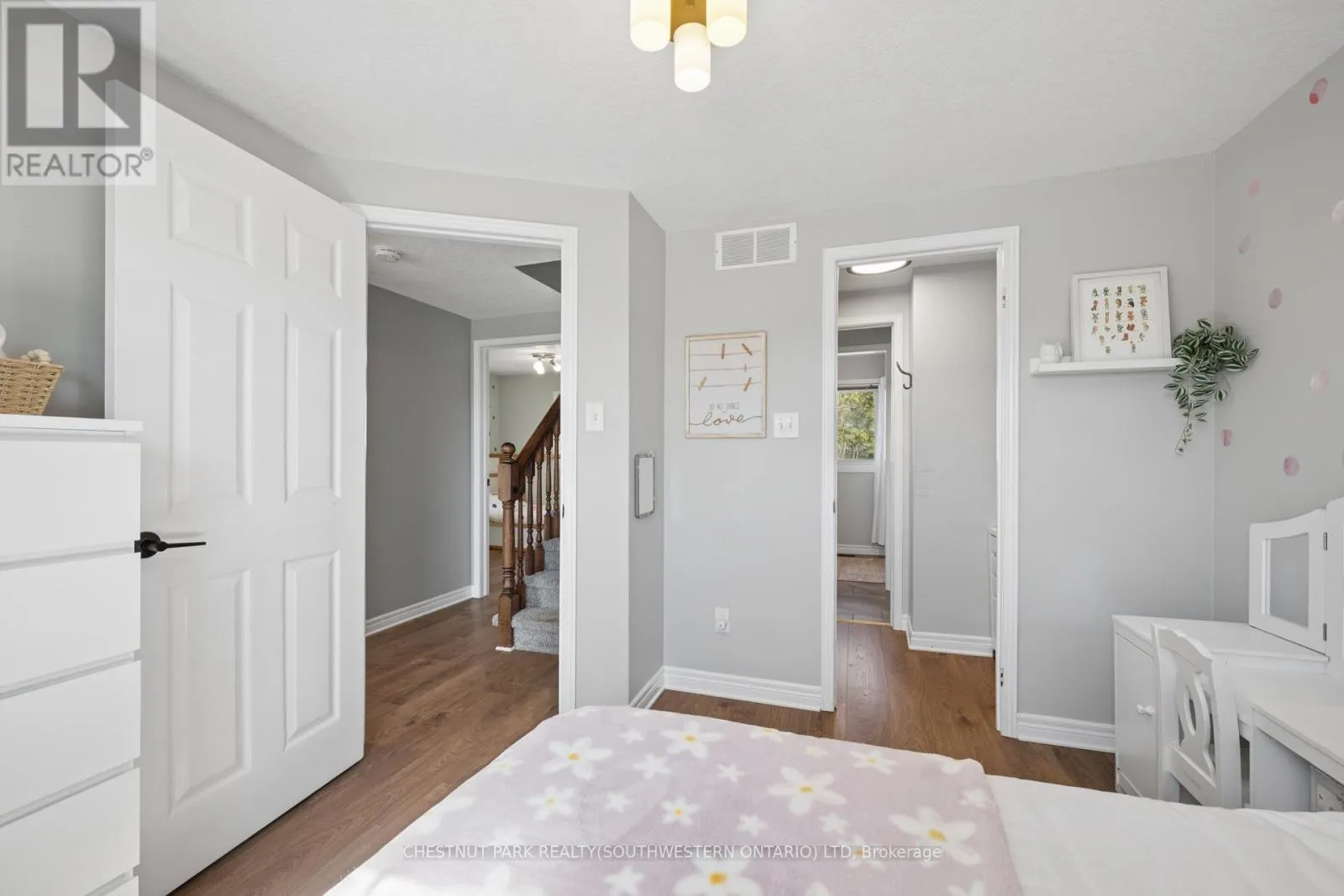 Cross Streets: Activa/Cotton Grass. ** Directions: TAKE HWY 7 & 8 TO FISCHER HALLMAN ROAD, GO SOUTH ON FISCHER HALLMAN ROAD, TURN RIGHT ON ACTIVA AVENUE AND LEFT ONTO COPPER LEAF STREET. Set on a rare lot backing and siding onto green space, privacy here is something you'll appreciate right away. No rear neighbours and only one neighbour to the side gives you space you don't often find in family neighbourhoods, with year round views that show off every season. The main floor is designed for families. An updated kitchen with an island and granite counters anchors the space, with a dining area that includes built in storage and a coffee bar. The family room is centred around a gas fireplace with updated built ins and clean sight-lines to the kitchen and back deck. Upstairs, the primary suite has a walk in closet with built ins and its own ensuite. Two additional bedrooms share a Jack and Jill bathroom, with one featuring a walk in closet and additional built in storage. The third floor loft is a standout. Currently used as a fourth bedroom for a teenager, but it easily works as a second living space, office, or a bit of a "lady loft" escape. The finished basement adds more usable space, with a walk up to the backyard that makes it especially functional in the summer. Outside, the backyard is private and easy to enjoy with a deck, newer pool, and shed, with no direct sightlines from neighbours. The 1.5 car garage is set up for an EV and works well for storage and parking, while the driveway fits two comfortably. Carpet free throughout, this is a turnkey home in a location that's tough to replicate. Walking distance to schools, and close to shopping, restaurants, the library, salt water pool, and expressway access. (id:27476)