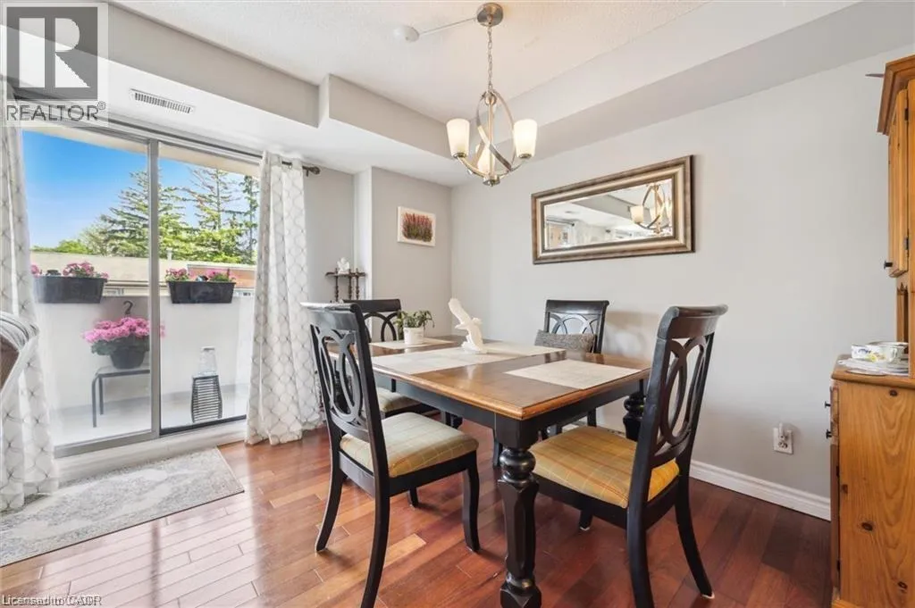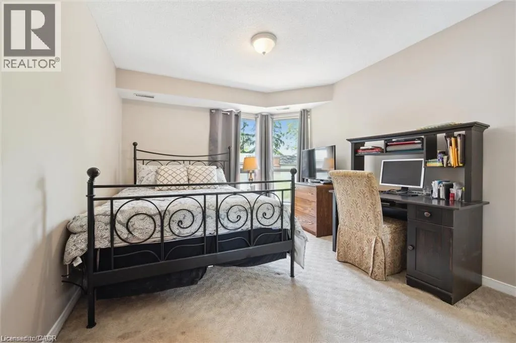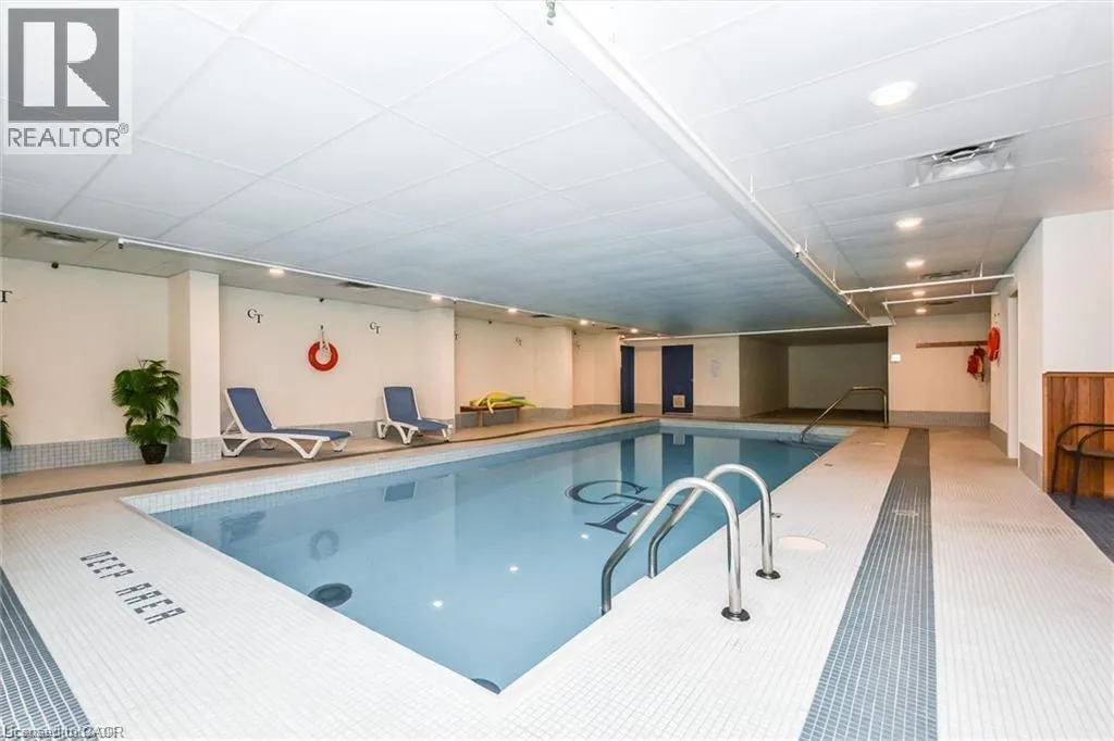 South off of Fairway Road onto King Street E Welcome to this beautifully maintained 2-bedroom, 2-bathroom condo offering the perfect blend of comfort, convenience, and luxury. Designed with an open-concept layout, the spacious living and dining area serves as the heart of the homeâideal for entertaining or quiet evenings in. Step through the sliding doors to your private open balcony, a perfect spot for your morning coffee or to enjoy the fresh air. The primary bedroom is a true sanctuary, boasting a rare electric fireplace, an inviting sitting area, a large walk-in closet, and a private ensuite bath. The second bedroom offers versatility as a guest room, a dedicated home office, or a space for family. The modern kitchen is fully equipped with stainless steel appliances, while the in-suite laundry and utility room provide extra storage and everyday convenience. Located in the sought-after Cameo Terrace, this quiet building offers outstanding amenities including an indoor pool, sauna, exercise room, and a party room. Your vehicle stays protected year-round with included underground parking. Situated moments away from the Chicopee ski hills, major highways, public transit, and a vibrant shopping corridor, everything you need is right at your doorstep! (id:27476)