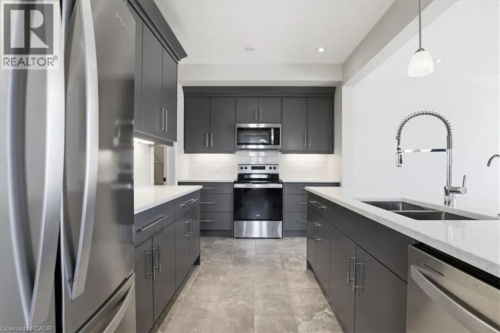 Victoria to Lackner to Otterbein ***END UNIT***MOVE IN READY*** AVAILABLE FOR IMMEDIATE OCCUPANCY *** NON SMOKERS, NO PETS *** SANDRA SPRINGS, KITCHENER'S MOST SOUGHT AFTER NEW SUBDIVISION! STEPS TO PARKS AND TRAILS! APPROX 2015 SQ.FT. 4 BEDROOM, 3 BATHROOMS. Features include; 9 foot ceilings, luxury vinyl flooring, quartz countertops in kitchen and baths, custom kitchen with breakfast bar overhang, soft close drawers, under cabinet lighting, crown molding, separate pantry, full hardwood staircase and pot lights. Second floor features a HUGE MASTER BEDROOM with a large en suite, glass shower door, porcelain tile. Main bathroom with porcelain tile tub/shower combo. Modern move in ready home. SECOND FLOOR LAUNDRY for the added bonus AND DECK, FENCE, ASPHALT DRIVEWAY. Close to the highway, schools, shops, plus restaurants. NON SMOKERS AND NO PETS. (id:27476)