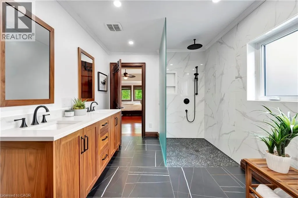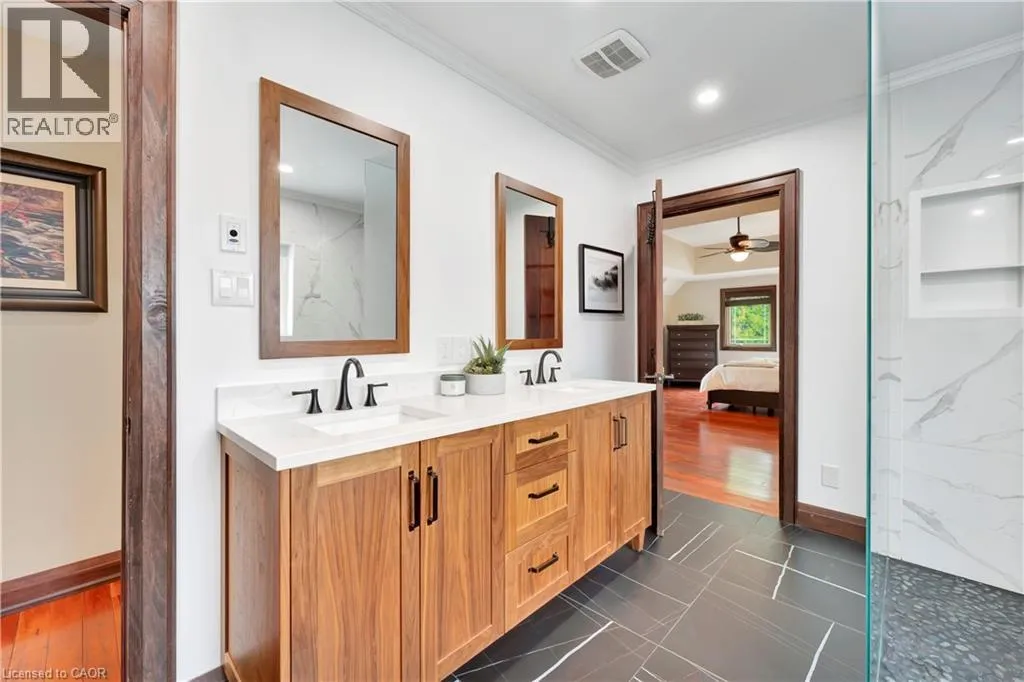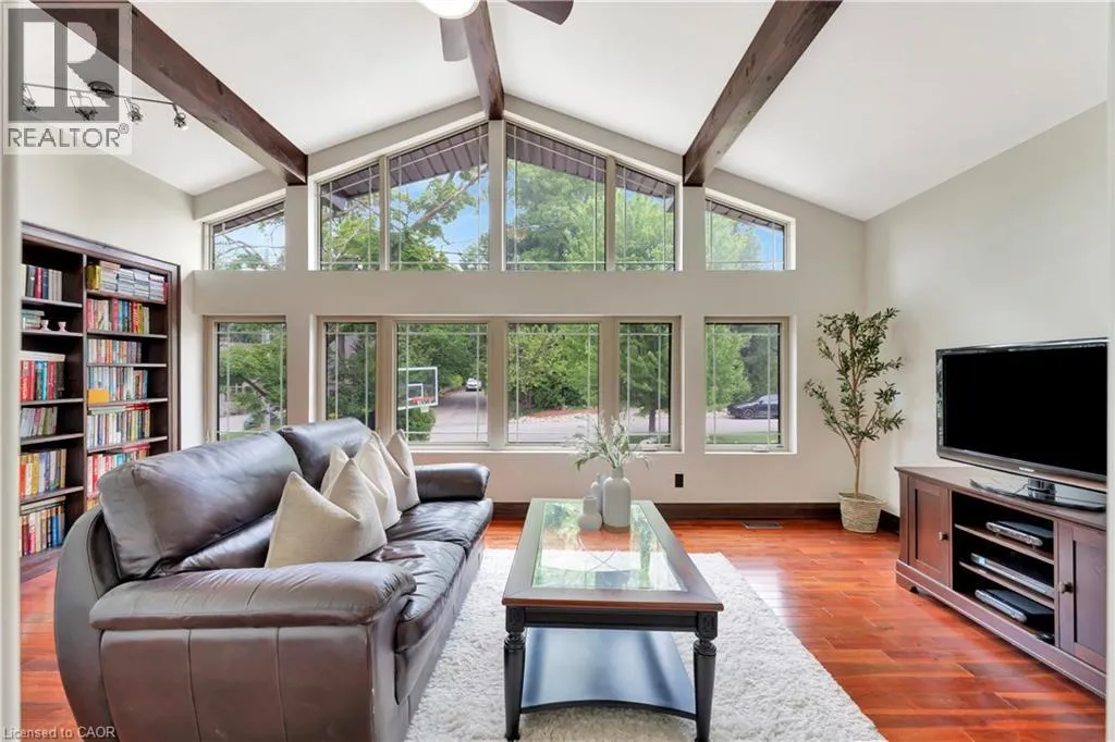 Glasgow to Silvercrest to Maple Hill Dr An incredible opportunity to live on one of the most sought-after streets in all of KW! From the moment you arrive you'll be captivated by the striking exterior! The exposed aggregate driveway (10 car parking) is perfectly complemented by three garage bays. Situated on a meticulously landscaped near half acre lot (100â x 191â), an absolute showstopper inside and out. The expansive open-concept main floor design allows effortless entertaining and comfortable everyday living. The living room offers picturesque views to both the front and rear property, seamlessly flowing into a dining area with walkout access to the backyard deck. The oversized eat-in kitchen is a chefâs dream, featuring a 6-seater island and an abundance of cabinetry and prep space, with an additional corridor of custom cabinetry that leads to a sunken sunroom bathed in natural light. Upstairs, the impressive primary suite is lined with windows, creating a bright, airy retreat. A generous walk-in closet (potential for a second walk-in) complements the spa-inspired ensuite bath. Two additional bedrooms and a large storage room complete the upper level. The thoughtfully designed layout offers flexibility with a âsecondary wingâ, a perfect retreat for extended family or guests. This wing features a stunning living room with soaring vaulted ceilings and oversized windows, full bathroom, two additional bedrooms and large office. With two separate garage entrances, the home also features dual mudrooms, each with its own powder room. The traditional basement area is ideal for entertaining, providing ample space for gatherings and leisure. Outside, the expansive deck leads you to a beautifully private, landscaped backyard oasis. A rare find in the heart of the city! Situated mere steps from one of Canadaâs top-rated golf courses, Westmount Golf & Country Club, and within minutes of the regionâs finest amenities, shopping, & dining. This is an exceptional offering for those seeking both luxury and lifestyle. (id:27476)
