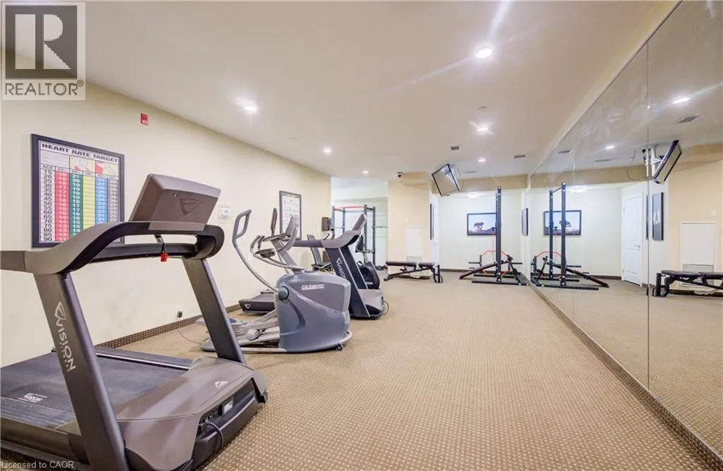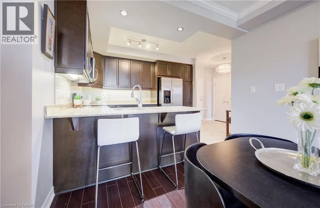 BELMONT AVE BETWEEN GAGE AVE AND GLASGOW STREET A rare find â a condo with over 1,000 sq ft, 2 bedrooms, and 2 full bathrooms, with heat, water, and A/C included in the condo fees, offering predictable monthly living in the heart of Belmont Village. A spacious entry opens to an inviting flow from kitchen to dining to living room, featuring an electric fireplace that adds character, and leading to a private west-facing balcony perfect for evening sunsets. The kitchen features stone countertops, stainless steel appliances, and ample cabinetry. The primary bedroom offers room to comfortably accommodate a full furniture set, along with a walk-in closet & private ensuite. A well-proportioned second bedroom and full bathroom provide flexible space for guests or a home office. In-suite laundry, generous closet space, underground parking, and a storage locker â a valuable feature not found in all units â add everyday convenience, with additional parking often available for rent. This well-maintained, professionally managed building offers excellent amenities including an exercise room, media room, games room with library/lounge, two party rooms, guest suite, secure bike storage, and a courtyard BBQ patio. Steps to parks, the Iron Horse Trail, Belmont Village cafés and shops, transit, and minutes to Uptown Waterloo and Downtown Kitchener. Ideal for downsizers, first-time buyers, or investors seeking space and low-maintenance living in a vibrant neighbourhood. (id:27476)