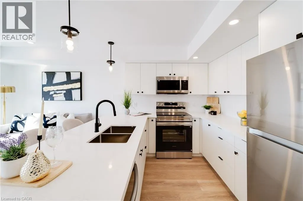 Brand-new 3-bedroom stacked townhouse offering spacious, modern living in a great Kitchener location. This bright 1,200 sq. ft. home features an open-concept layout with 9-foot ceilings, large windows, and beautiful finishes throughout. The modern kitchen includes quartz countertops, stainless steel appliances, a dishwasher, and ample cabinet space, while the generous living area opens onto a private balcony for added outdoor enjoyment. The unit also features ensuite laundry, a personal thermostat, 1.5 upgraded bathrooms, vinyl flooring, and full-size closets throughout. Free outdoor parking is included, and the hot water tank is included in the rent. Conveniently located close to downtown Kitchener, parks, schools, shopping, transit, and major highways. Move in today! (id:27476)