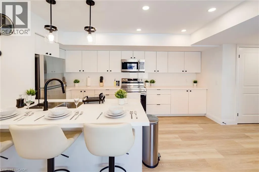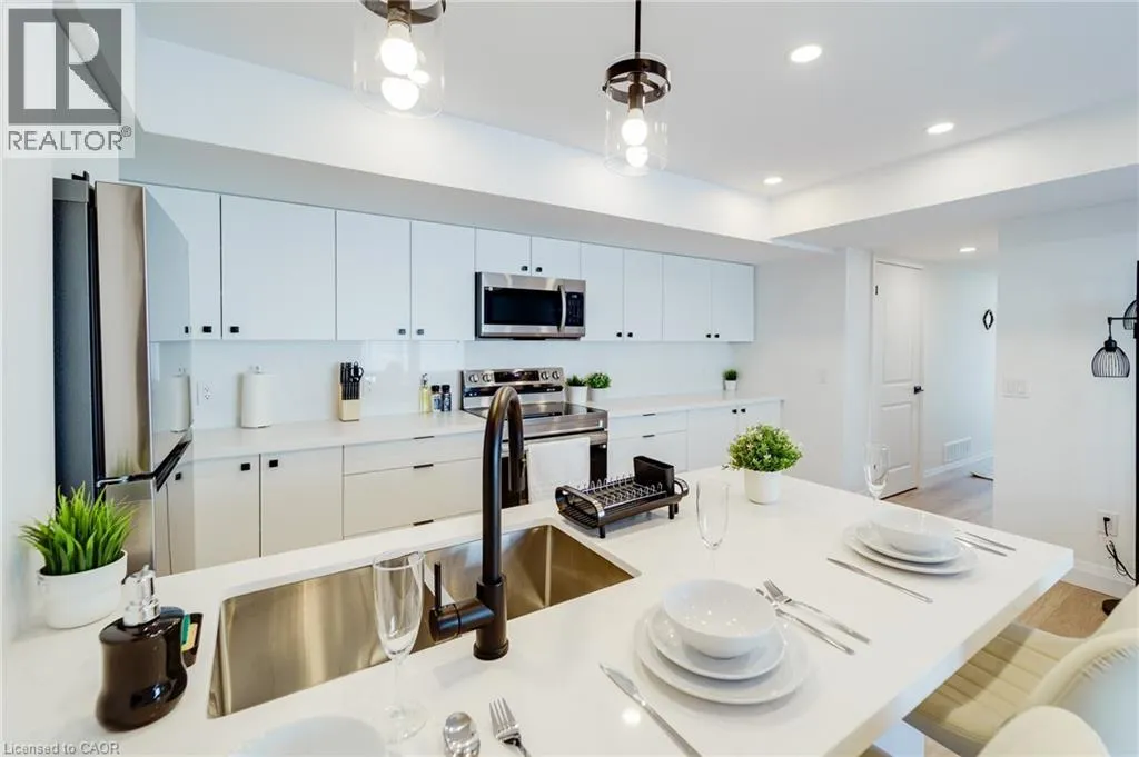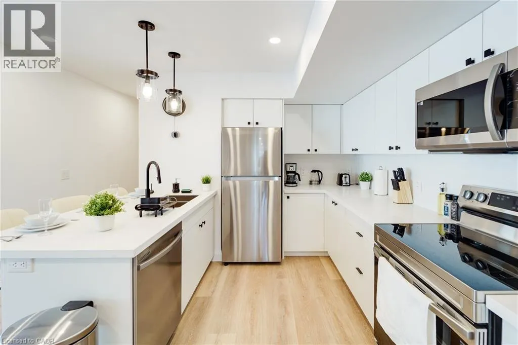 Stirling Ave S & Southmoor Dr Brand-new 2-bedroom stacked townhouse offering modern, comfortable living in a great Kitchener location. This bright 1000 sq. ft. home features an open-concept layout with 9-foot ceilings, large windows, and quality finishes throughout. The modern kitchen includes quartz countertops, stainless steel appliances, a dishwasher, and ample cabinet space, while the spacious living area opens onto a private balcony for added outdoor enjoyment. The unit also features ensuite laundry, a personal thermostat, a stylish bathroom, durable vinyl flooring, and plenty of natural light throughout. Free outdoor parking is included, and hot water tank is included in the rent. Conveniently located close to downtown Kitchener, parks, shopping, transit, and major highways. Move in today! (id:27476)