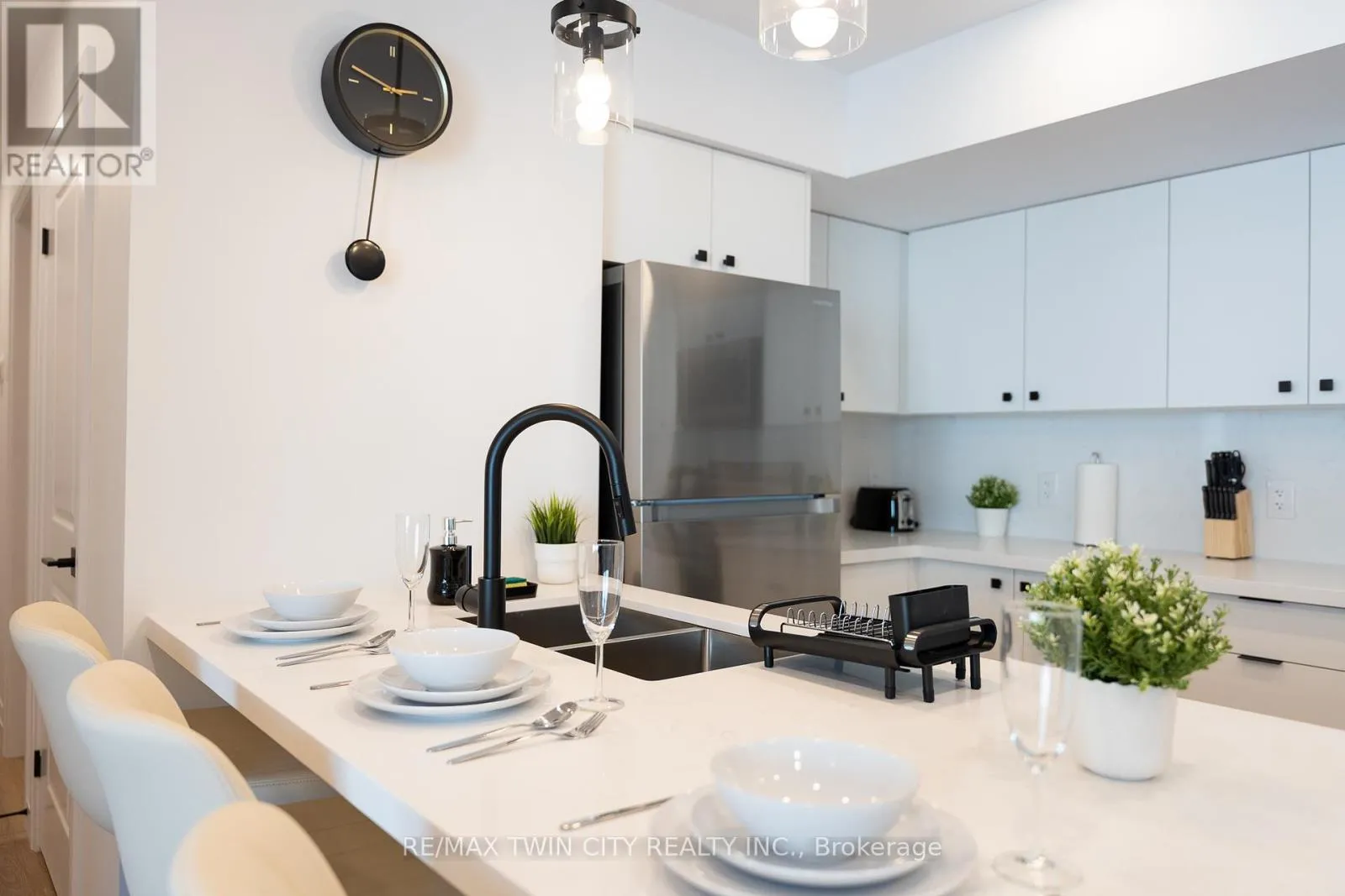 Stirling Ave S & Southmoor Dr Brand-new 2-bedroom stacked townhouse offering modern, comfortable living in a great Kitchener location. This bright 1000 sq. ft. home features an open-concept layout with 9-foot ceilings, large windows, and quality finishes throughout. The modern kitchen includes quartz countertops, stainless steel appliances, a dishwasher, and ample cabinet space, while the spacious living area opens onto a private balcony for added outdoor enjoyment. The unit also features ensuite laundry, a personal thermostat, a stylish bathroom, durable vinyl flooring, and plenty of natural light throughout. Free outdoor parking is included, and hot water tank is included in the rent. Conveniently located close to downtown Kitchener, parks, shopping, transit, and major highways. Move in today! (id:27476)