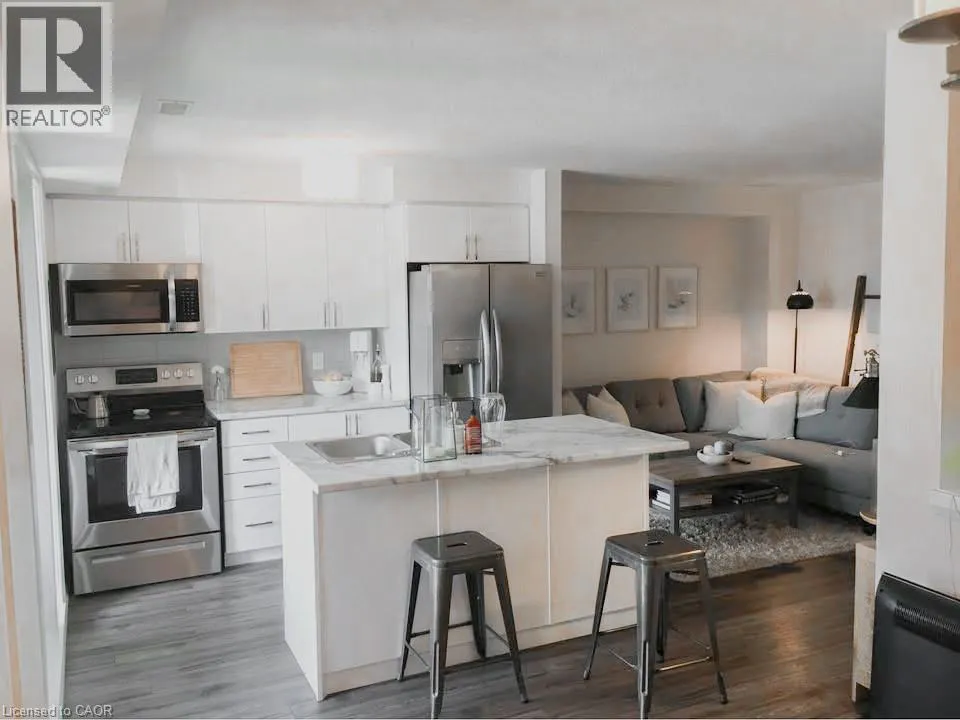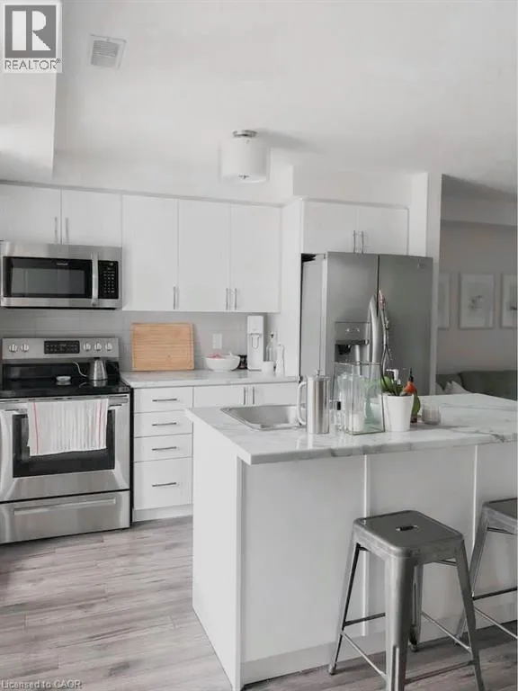 Ottawa & Trussler Welcome to this modern 2-storey townhome in the sought-after Woodhaven South community in Kitchener, available for lease starting May 1st. Conveniently located at 1989 Ottawa Street South, this well-appointed home offers both comfort and functionality in a prime location. Featuring 2 spacious bedrooms and 1.5 bathrooms (with a convenient main floor powder room and full bath upstairs), this unit is designed for easy living. Enjoy two private balconies, perfect for relaxing or entertaining. The main level showcases stylish laminate flooring, upgraded lighting, and an open-concept layout complete with a breakfast bar and sleek countertops. The kitchen is equipped with brand new stainless steel appliances, and the home includes the added convenience of an in-suite washer and dryer. One designated parking space is included, with the option to rent a second space for $50/month. Additional visitor parking is available. Located in the desirable Woodhaven South neighbourhood, youâll be just minutes from schools, parks, trails, Sunrise Shopping Centre, restaurants, entertainment, and have quick access to the expresswayâmaking commuting a breeze. Utilities are extra. Minimum one-year lease required. A fantastic opportunity to lease a stylish home in a highly convenient location. (id:27476)