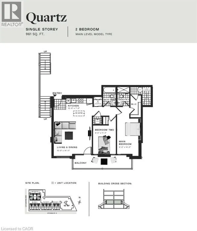 Welcome to this brand new 2-bedroom condominium townhome in Kitchenerâs desirable Parkside community, where modern convenience meets a welcoming, family-friendly neighbourhood. Ideally situated near McLennan Park and Elmsdale Park, residents can enjoy easy access to green space, walking trails, and outdoor recreation. This single-storey main level unit offers approximately 961 sq. ft. of thoughtfully designed living space, featuring a bright and open-concept living and dining area that seamlessly connects to a modern kitchenâperfect for both everyday living and entertaining. Step out onto your private balcony, extending your living space outdoors. The layout includes two well-sized bedrooms, including a primary suite complete with walk-in closet and private ensuite, along with a second full bathroom for added convenience. Clean lines and efficient design create a comfortable, functional flow throughout the home. Upgraded finishes include quartz countertops, Whirlpool/Blomberg appliance package, soft-close cabinetry, laminate flooring throughout, and contemporary kitchen detailing, offering a stylish and move-in-ready space. Located just two minutes from HWY 7/8, commuting is simple and efficient, while public transit is right outside your door. A short 5-minute walk to Laurentian Power Centre provides access to groceries, dining, retail, and essential servicesâeverything you need within reach. Enjoy the ease of single-level living in a connected and growing communityâParkside living at its finest. (id:27476)