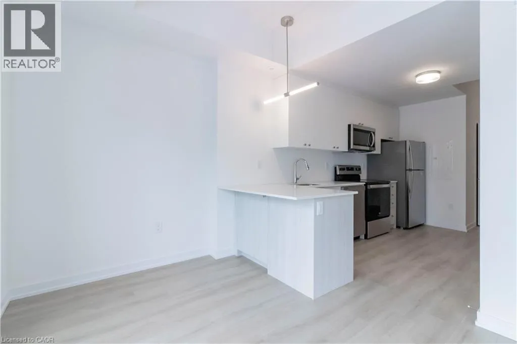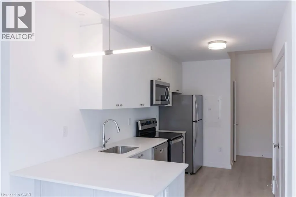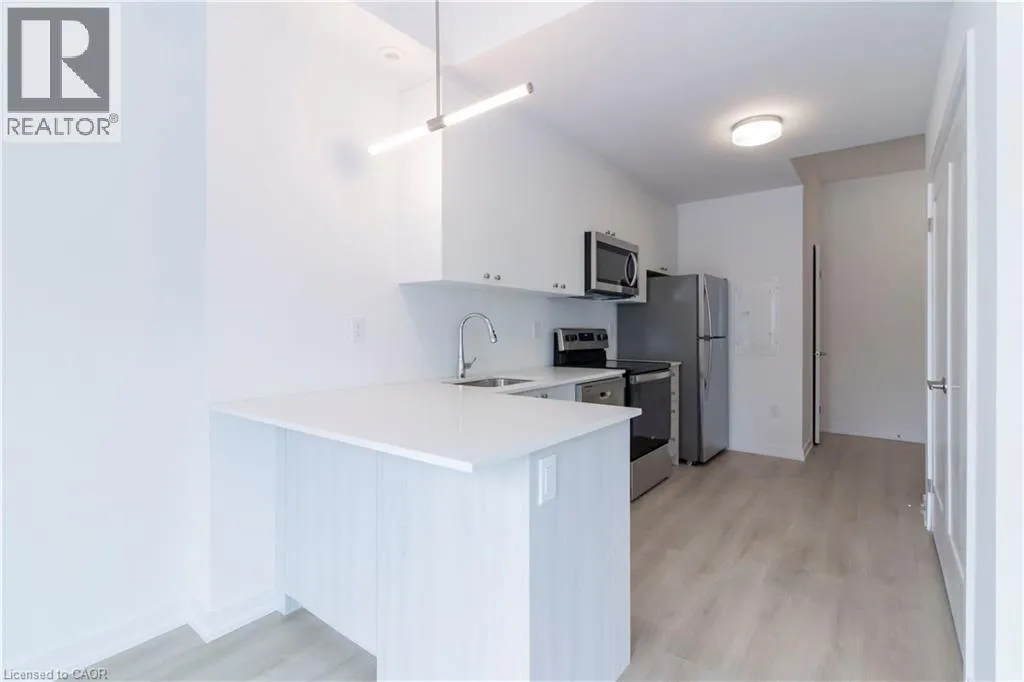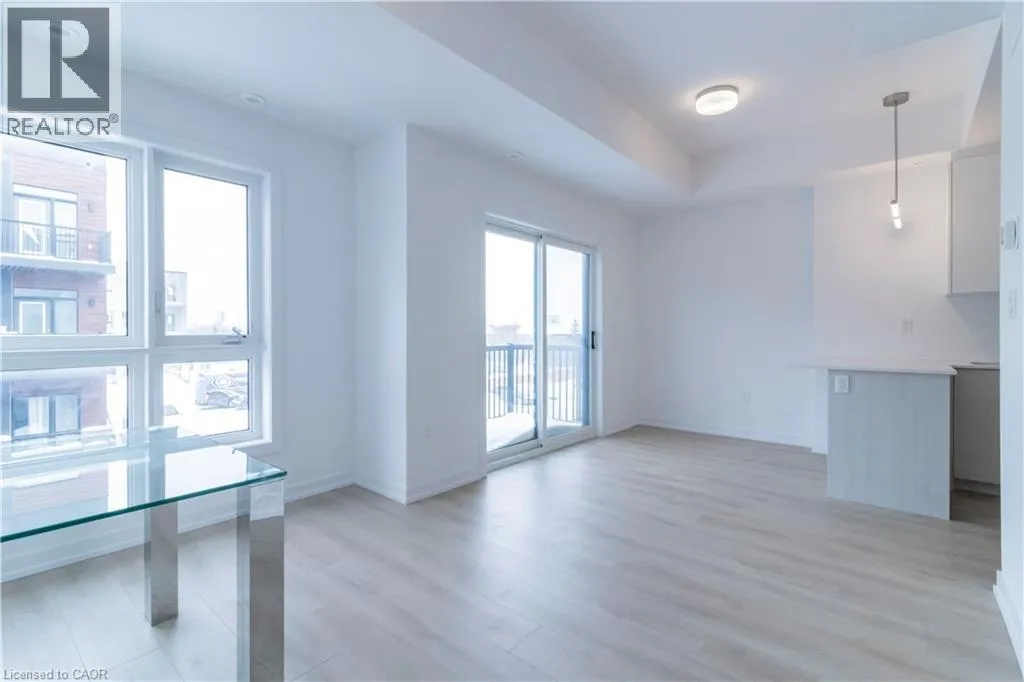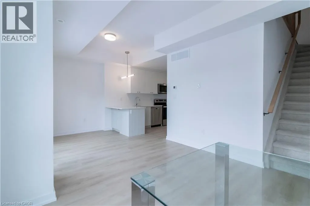 Ottawa St S to Elmsdale to Palace Welcome to this brand new 2-Bed, 2.5 Bath condominium townhome in Kitchener's beautiful Parkside community, where convenience and community intertwine to create a haven for everyday living. Nestled next to this family-centric neighbourhood are the expanses of McLennan Park and Elmsdale Park, offering a tranquil escape or variety of outdoor activities. Within this upper unit, discover a meticulously crafted two-storey space spanning over 1000 square feet. Enjoy the expanse of two generously proportioned bedrooms with two full bathrooms, a powder room on the main level, as well as an ample living room, dining room, kitchen with bathroom on the main level. Decor package upgrades such as quartz countertops and Whirlpool/Bloomberg appliance package, soft close cabinets, deep fridge upper cabinet with gable, and laminate flooring throughout. Venturing beyond the neighbourhood is effortless, with a two-minute drive to HWY 7/8, granting seamless access for commuters. Should you prefer the convenience of public transit, an onsite stop is just outside your doorstep, ensuring smooth journeys to any destination. Just a 5 minute walk away sits Laurentian Power Centre, boasting an array of amenities to cater to your every need. From a large Zehrs grocery store to home improvement essentials at Lowes, and healthcare services at the walk-in clinic, every convenience is within easy reach. (id:27476)
