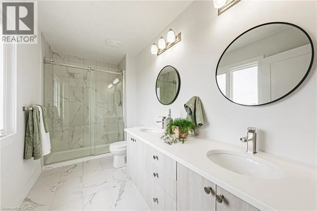 Trussler Road ***FINISHED BASEMENT INCLUDED*** Perfect for Multi-Generational Families. Welcome to the Foxdale Model, offering 2,280 sq. ft. of thoughtful design and upscale features. The Foxdale impresses with 9 ceilings and engineered hardwood floors on the main level, quartz countertops throughout the kitchen and baths, and an elegant quartz backsplash. Featuring four bedrooms, two primary en-suites, and a Jack and Jill bathroom, it's a true generational home. Additional highlights include soft-close kitchen cabinets, upper laundry cabinetry, a tiled ensuite shower with glass enclosure, central air conditioning, and a walkout basement. Photos are from the model home which is also a Foxdale Model. (id:27476)