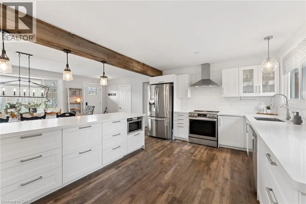 Belleview to Ada to Donald. Welcome to 137 Donald Street, a well maintained bungalow in a quiet, established, family friendly neighbourhood known for its convenience and strong sense of community. With great curb appeal, a large lot, and interior and exterior updates already completed, this move in ready home shows pride of ownership from the moment you arrive. A bright main floor features an open layout filled with natural light. The kitchen offers modern finishes with a subtle rustic feel, a large peninsula, great storage, and a spacious dining area ideal for everyday living or hosting. The living room is a true highlight⦠generous in size, beautifully updated, and both modern and cozy. Custom built ins, a fireplace, and sliding doors to the backyard create a warm space that easily becomes the heart of the home. Five bedrooms and two full bathrooms provide flexibility, with three bedrooms on the main floor and two downstairs, ideal for families, guests, or home office space. The lower level also features a large bonus family room with a second fireplace and brick surround, creating a comfortable second living area. The fully fenced backyard offers a quiet and private feel with great space to enjoy without heavy maintenance, right in the heart of the city. A brand new deck, hot tub, and storage shed add function, while the newly paved driveway (2024) fits four cars plus the single garage. This home is close to downtown Kitchener, and is walking distance to all school levels, plus a community pool, library, and the Kitchener Auditorium. Close to shopping, restaurants, parks, transit, and minutes to both East an West Expressways, with easy drives to Waterloo, Guelph, and Cambridge. (id:27476)