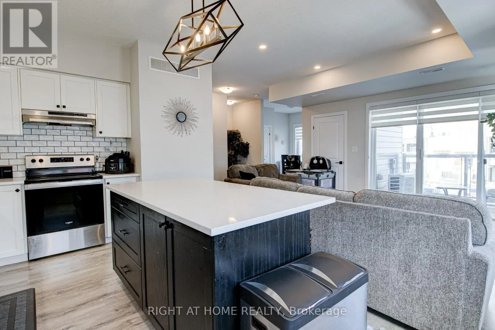Cross Streets: Fischer-Hallman Rd / Seabrock Dr. ** Directions: Google Maps. Welcome to 34 Vitality Drive, a bright and stylish corner stacked townhouse in the heart of Kitchener's sought-after Huron Park community! This beautifully designed 2-bedroom + den, 3-bathroom home offers a perfect combination of comfort, functionality, and modern elegance ideal for young professionals, families, or investors seeking low-maintenance living in a thriving neighbourhood. Step into the main floor and be greeted by an expansive open-concept layout featuring a sun-filled living and dining area, private balcony, and a modern kitchen with stainless-steel appliances, quartz countertops, subway-tile backsplash, and a large island ideal for gatherings and casual dining. A spacious den on this level provides an ideal space for a home office or creative studio, while a convenient 2-piece powder room completes the floor. Upstairs, discover two well-appointed bedrooms, each offering ample natural light, generous closet space, and ensuite access. The primary suite features a walk-in closet and a 3-piece ensuite with a glass-enclosed shower, while the second bedroom enjoys a 4-piece bath with tub. Thoughtful details include in-suite laundry, energy-efficient systems, and 1 dedicated parking space for added convenience. Situated in one of Kitchener's fastest-growing areas, this home is steps to Jean Steckle PS, Schlegel Park, RBJ Schlegel Sports Complex and close to Seabrook Park, Sophia Park, and scenic walking trails. Just minutes to Highway 7/8 & 401, shopping, dining, and public transit. Low condo fees include Bell 1 GB high-speed internet, offering exceptional value. Experience modern living, abundant light, and unbeatable location 34 Vitality Drive welcomes you home! (id:27476)