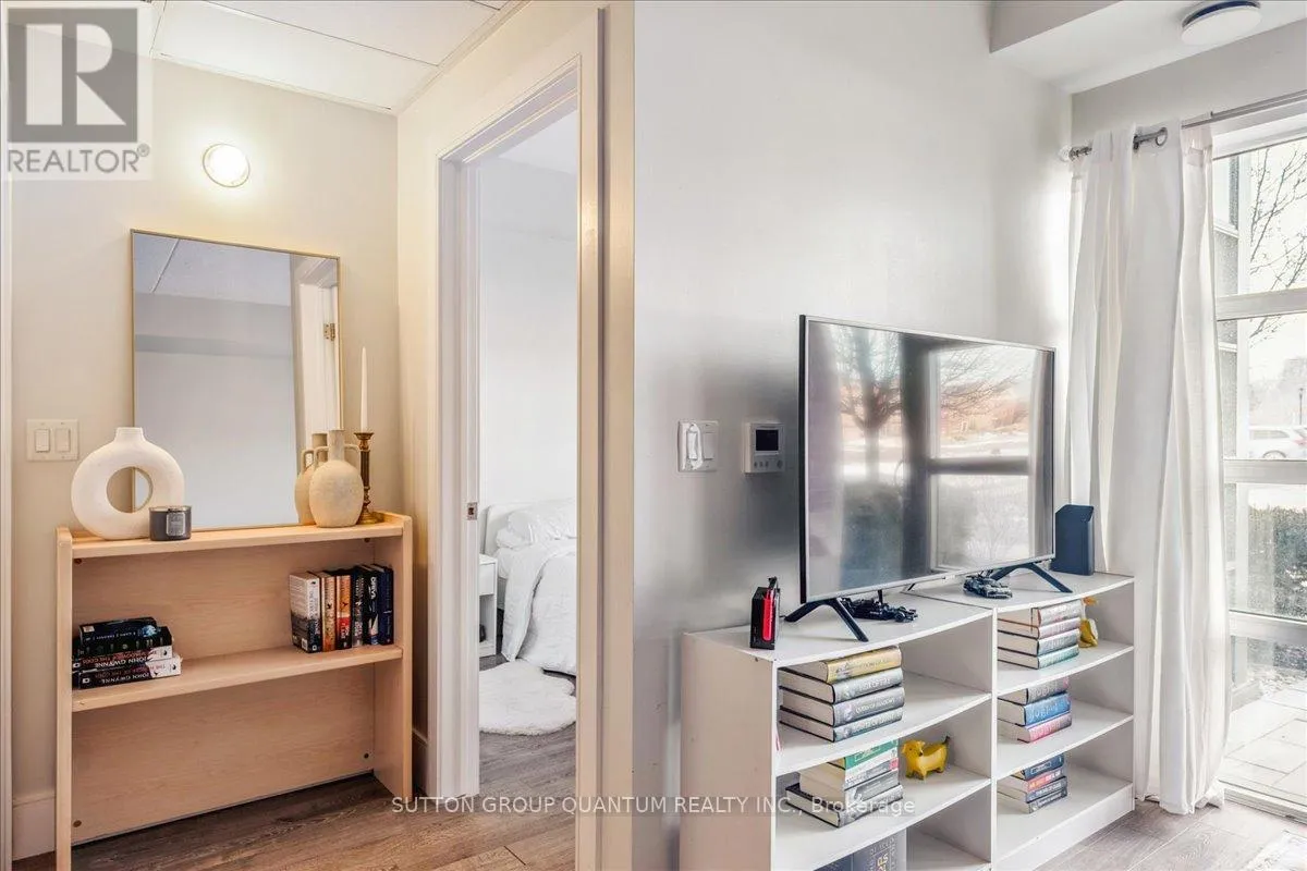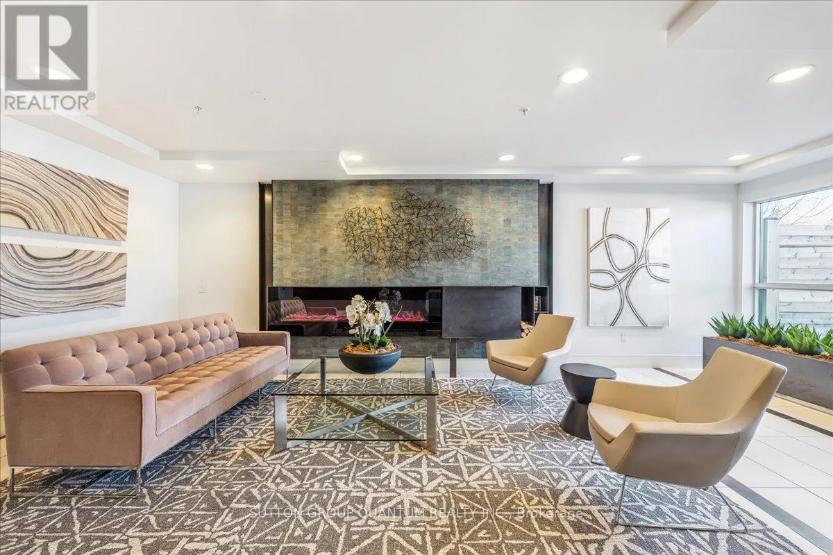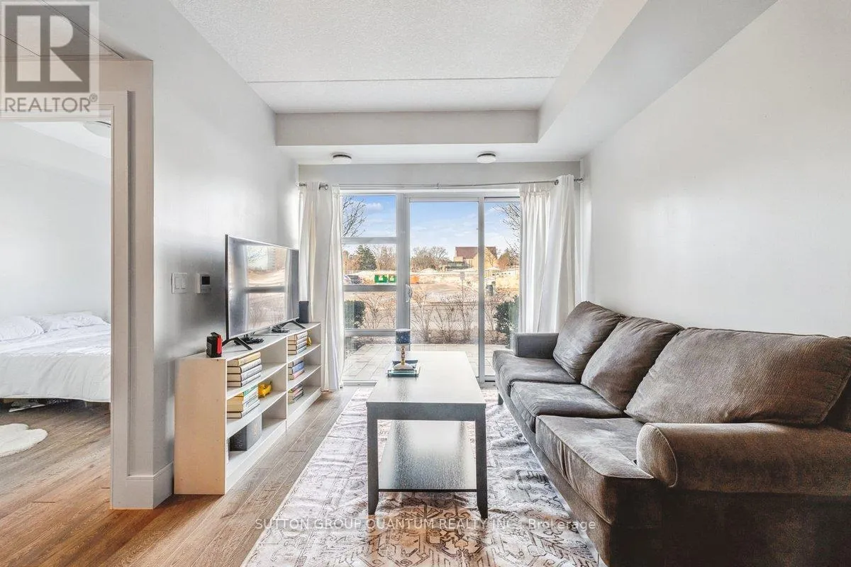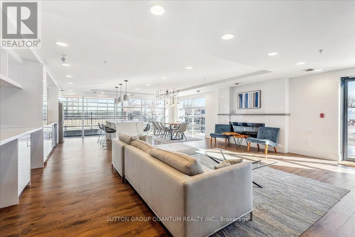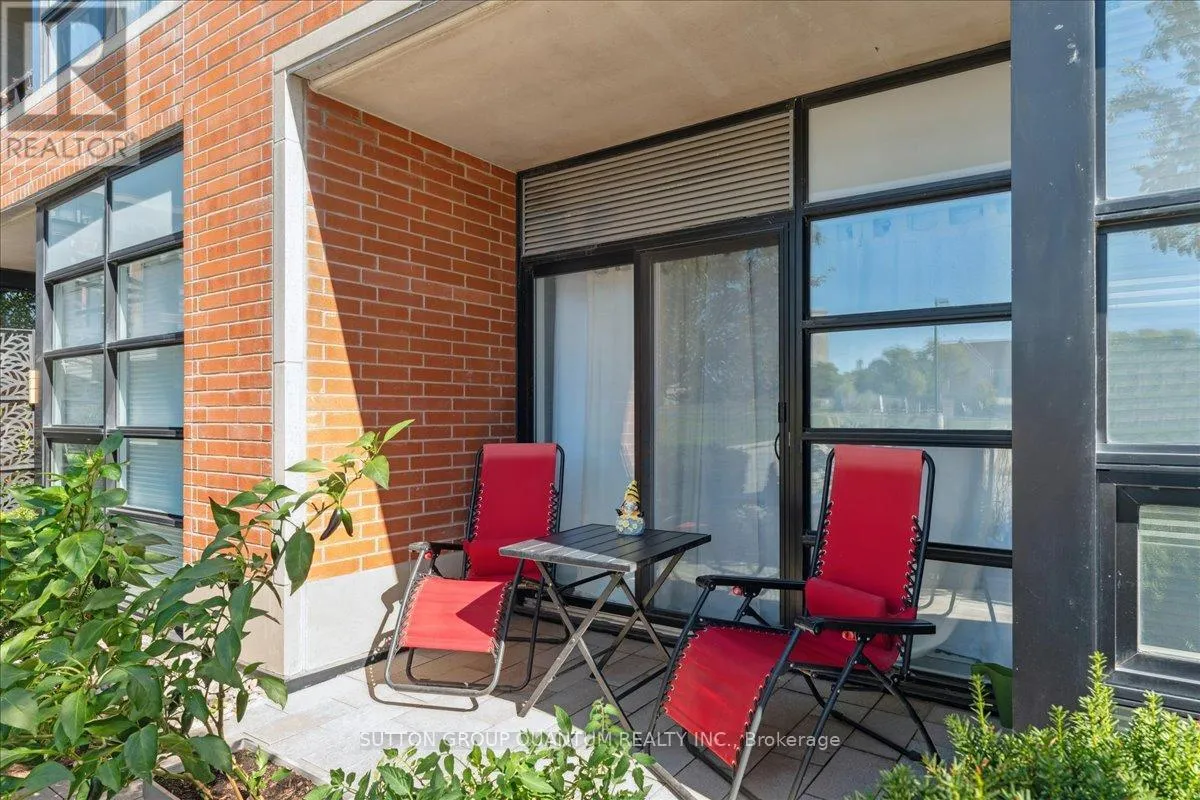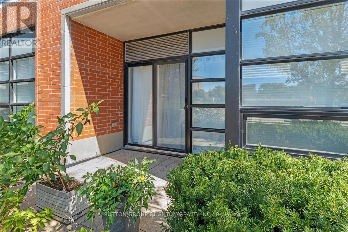 St.Leger St & Louisa St Welcome to effortless living in this bright and modern carpet-free 1-bedroom condo. The open concept layout features a sleek kitchen with granite countertops and stainless steel appliances, opening to a versatile living area that's perfect for entertaining or relaxing. Floor to ceiling windows fill the space with natural light and provide direct access to your private patio. The sunlit bedroom offers generous closet space, while the 4-piece bathroom is conveniently located nearby. Additional highlights include in-suite laundry with a full-size washer and dryer, underground parking with the option to rent additional spaces from other residents, and a storage locker for added convenience. This energy-efficient building is equipped with geothermalheating and cooling, and your maintenance fees include water softening, and upkeep of common areas for a worry-free lifestyle. Residents also enjoy premium amenities, including a fully equipped gym, a multipurpose event room with a full kitchen, and an electric car charging station. (id:27476)