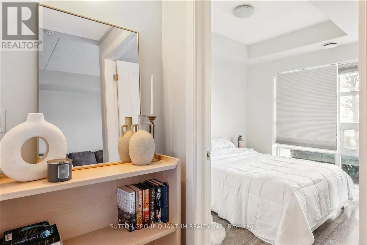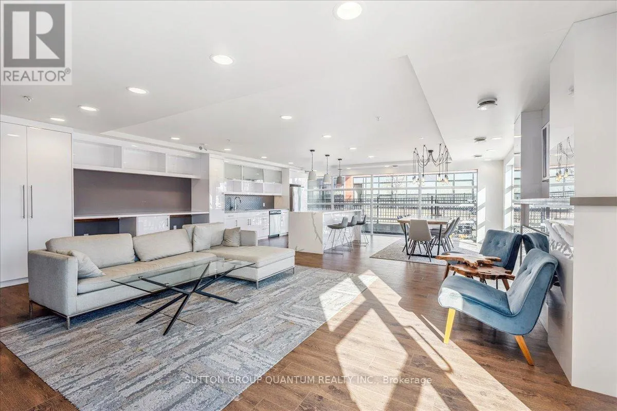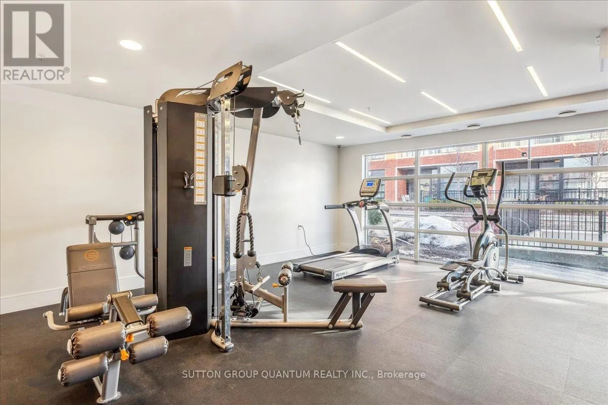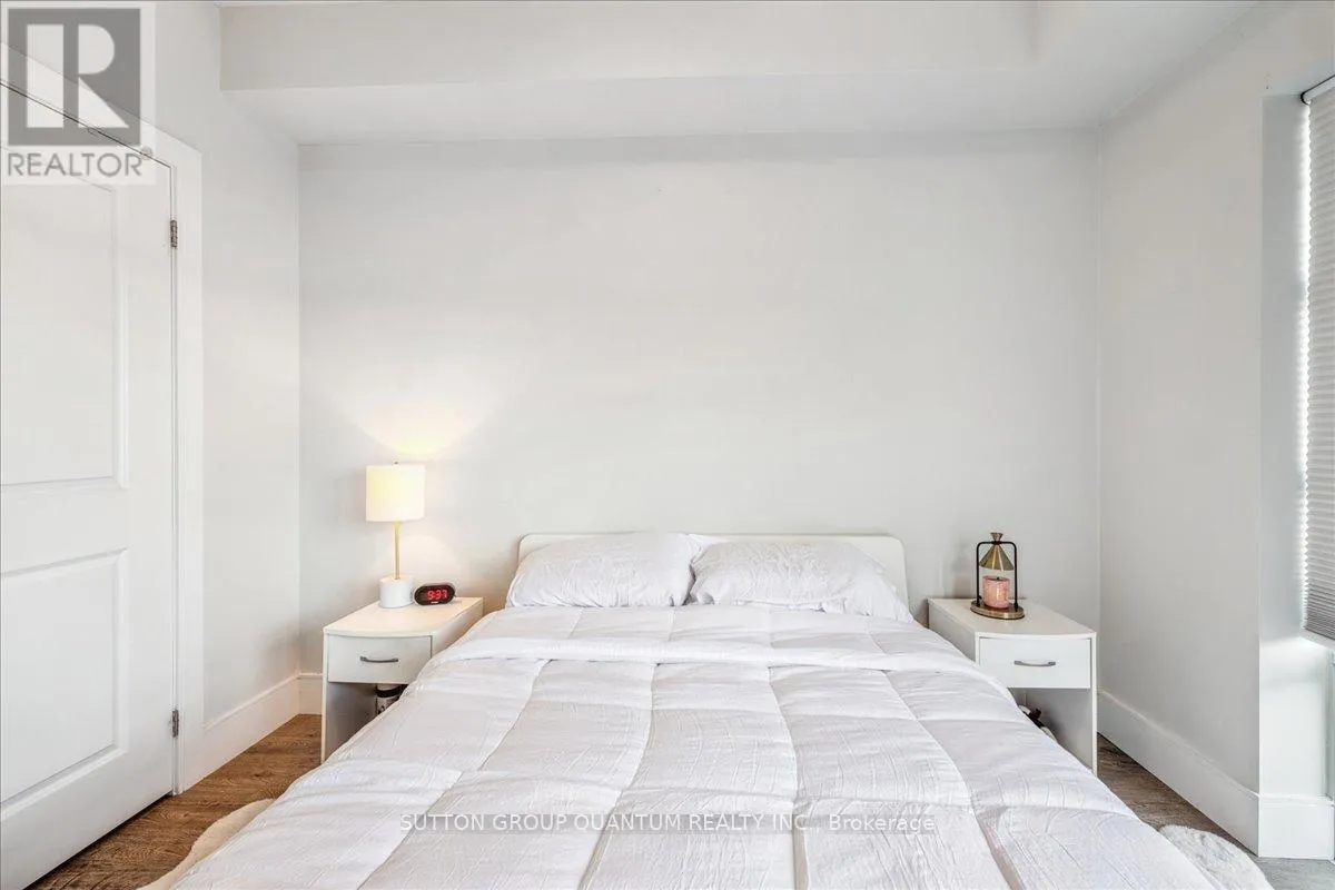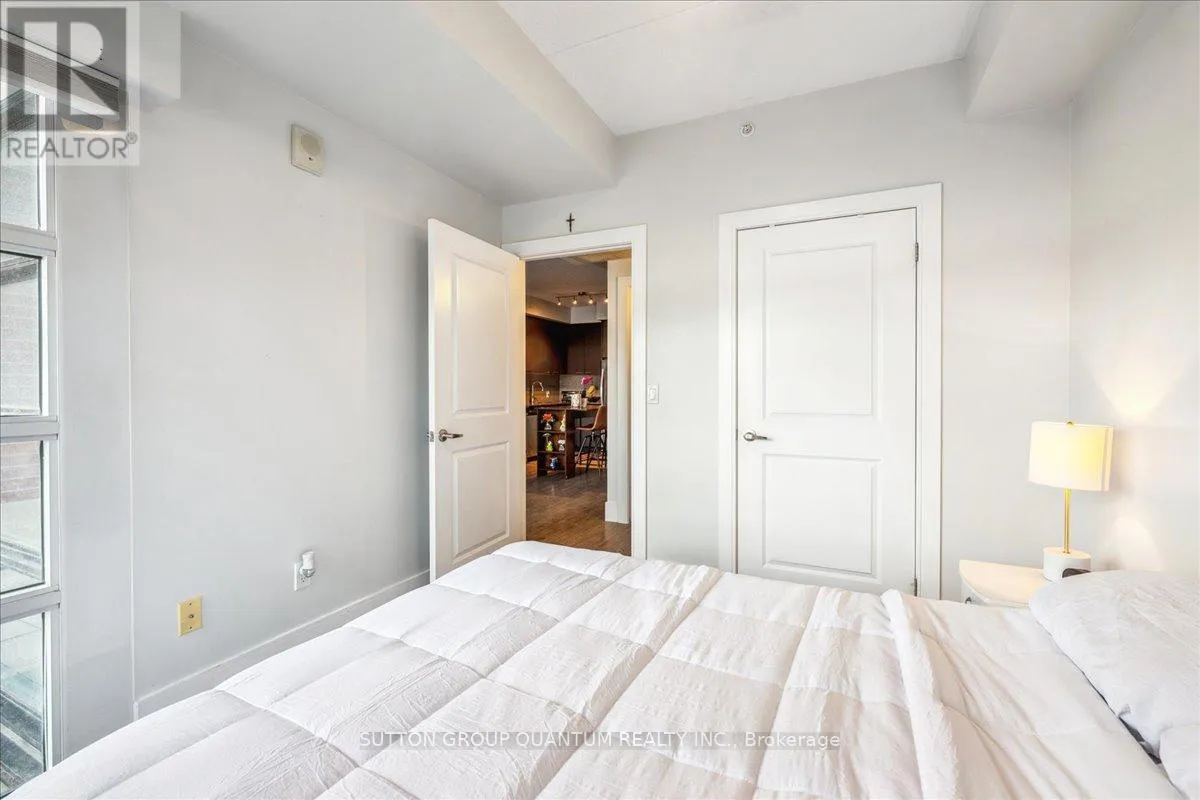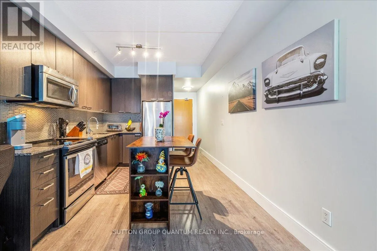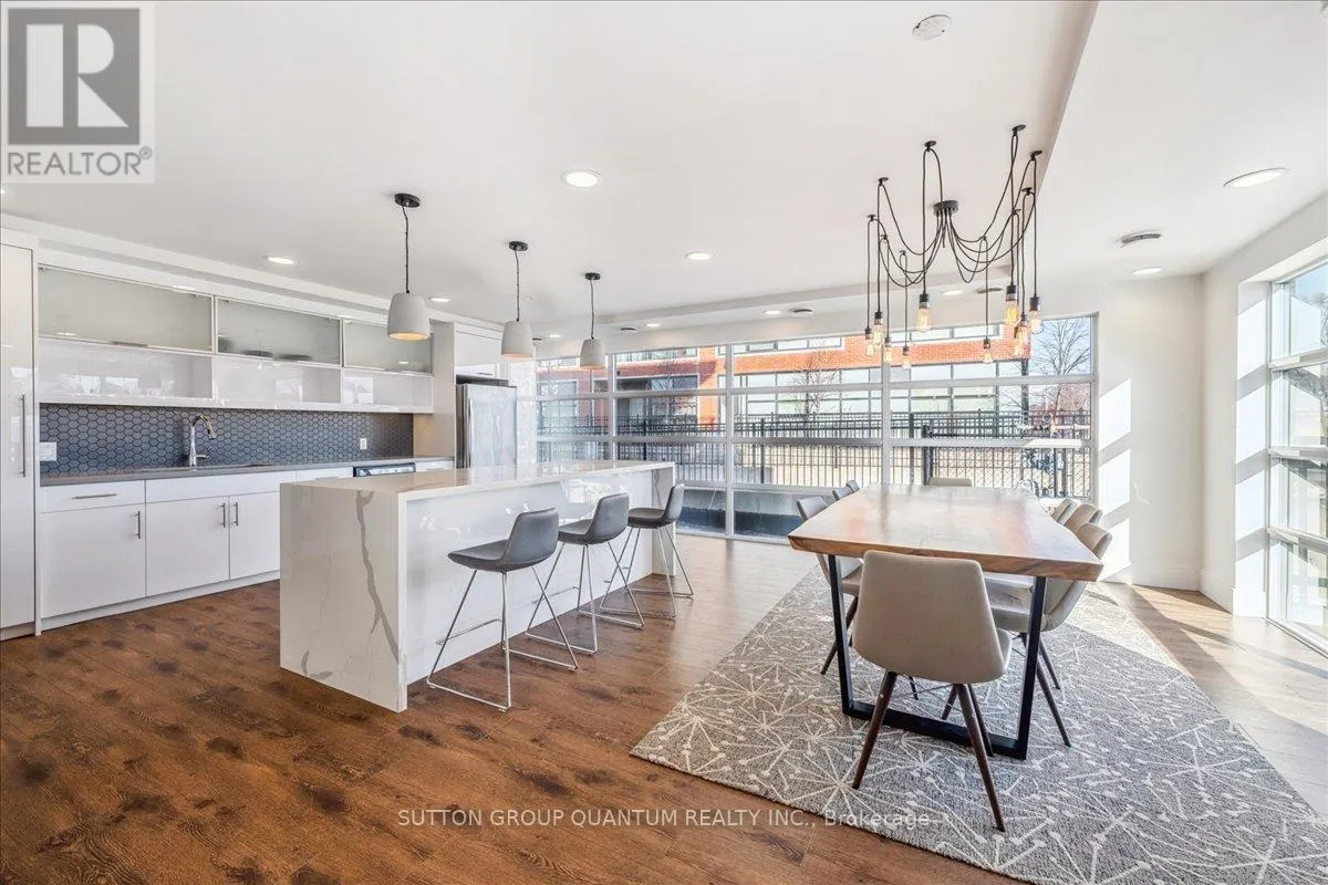 St.Leger St & Louisa St Welcome to effortless living in this bright and modern carpet-free 1-bedroom condo. The open concept layout features a sleek kitchen with granite countertops and stainless steel appliances, opening to a versatile living area that's perfect for entertaining or relaxing. Floor to ceiling windows fill the space with natural light and provide direct access to your private patio. The sunlit bedroom offers generous closet space, while the 4-piece bathroom is conveniently located nearby. Additional highlights include in-suite laundry with a full-size washer and dryer, underground parking with the option to rent additional spaces from other residents, and a storage locker for added convenience. This energy-efficient building is equipped with geothermalheating and cooling, and your maintenance fees include water softening, and upkeep of common areas for a worry-free lifestyle. Residents also enjoy premium amenities, including a fully equipped gym, a multipurpose event room with a full kitchen, and an electric car charging station. (id:27476)