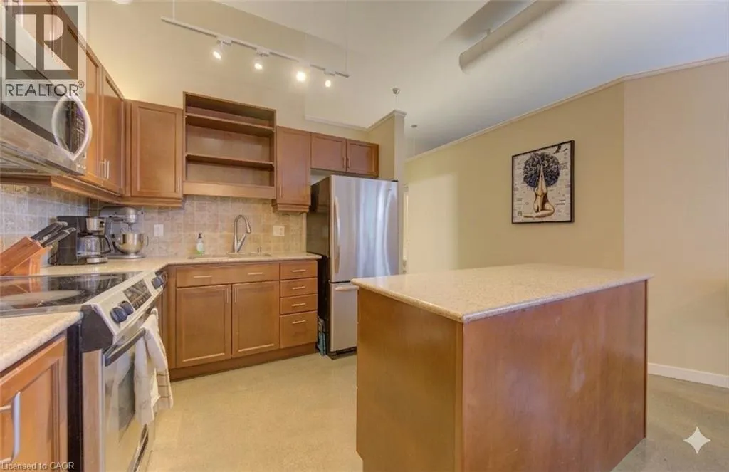 Victoria St & King St W PENTHOUSE unit at Kaufman Lofts in the heart of the Innovation District. This well-appointed 2-bedroom, 2-bathroom, 2-PARKING spaces suite offers an incredible open-concept layout with a private large BALCONY and convenient access to the UPPER ROOFTOP PATIO. The kitchen features lovely cabinetry, granite countertops, stainless steel appliances, backsplash and island. Bright living space and thoughtfully designed storage throughout, including custom built-ins, granite counters in the bathrooms, large windows and 11 foot ceilings. In-suite laundry included. Comes with 2 parking spaces and a LOCKER. Also NEW Heat Pump. Residents enjoy access to premium amenities including a rooftop patio with BBQ and dining area, party/meeting room, bicycle storage, and visitor parking. Ideally located steps to major tech, Google, The Tannery, Go Station and LRT transit, UW Health Sciences Campus/McMaster University School of Medicine, financial offices, restaurants, shops, and more. (id:27476)
