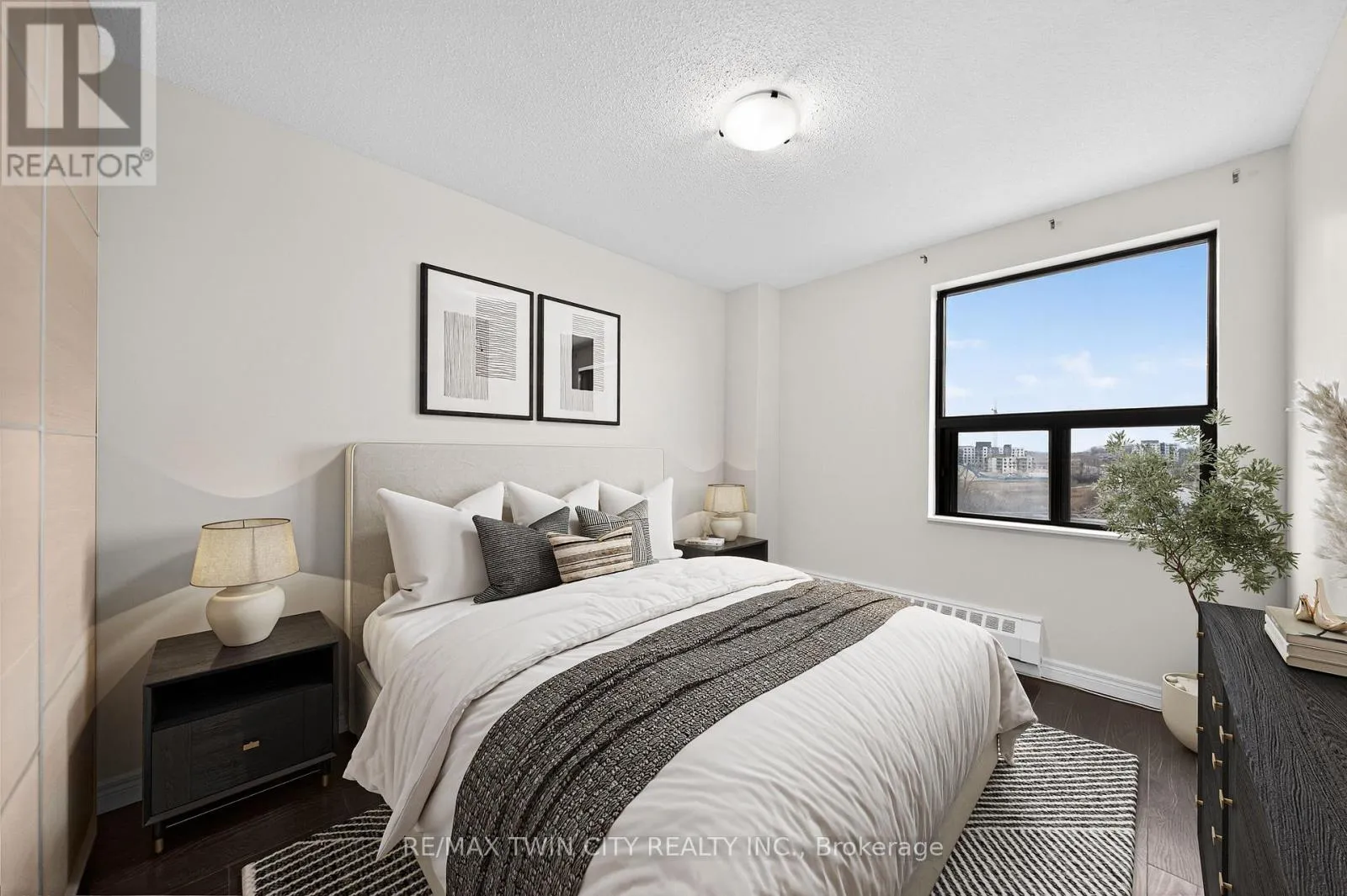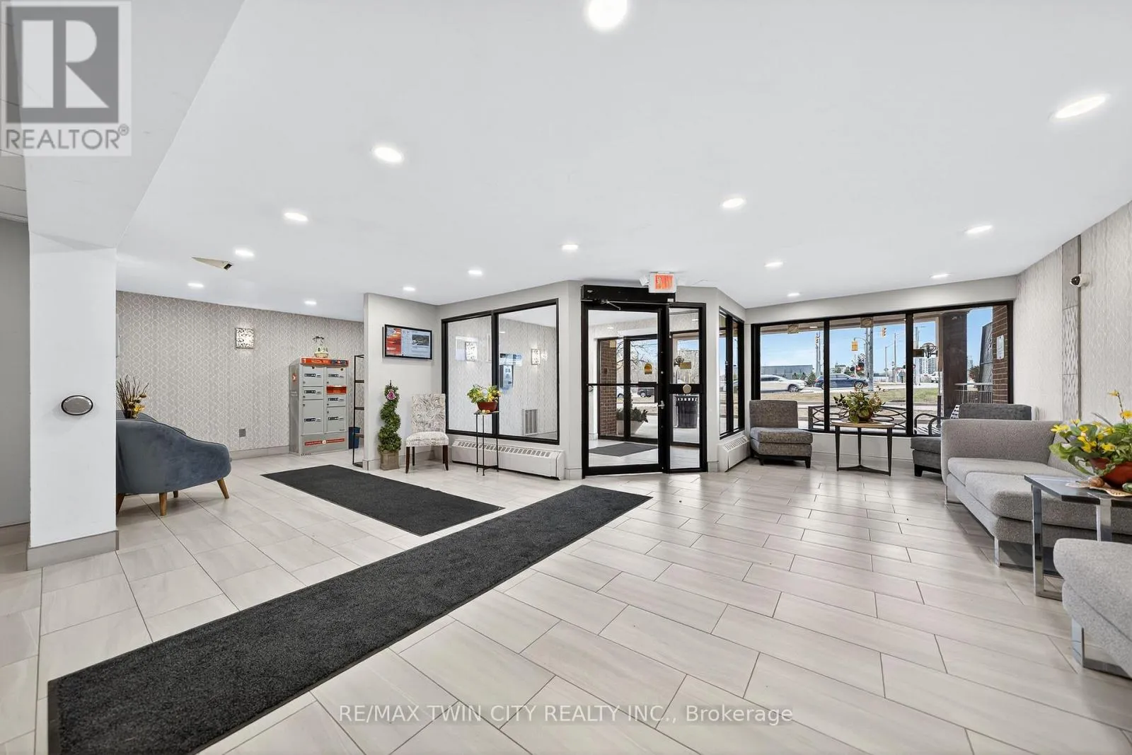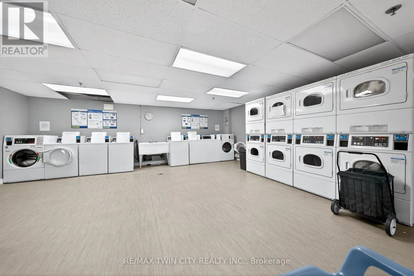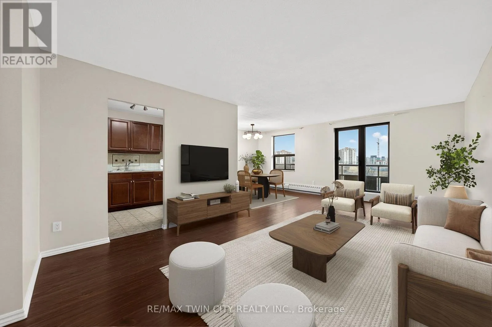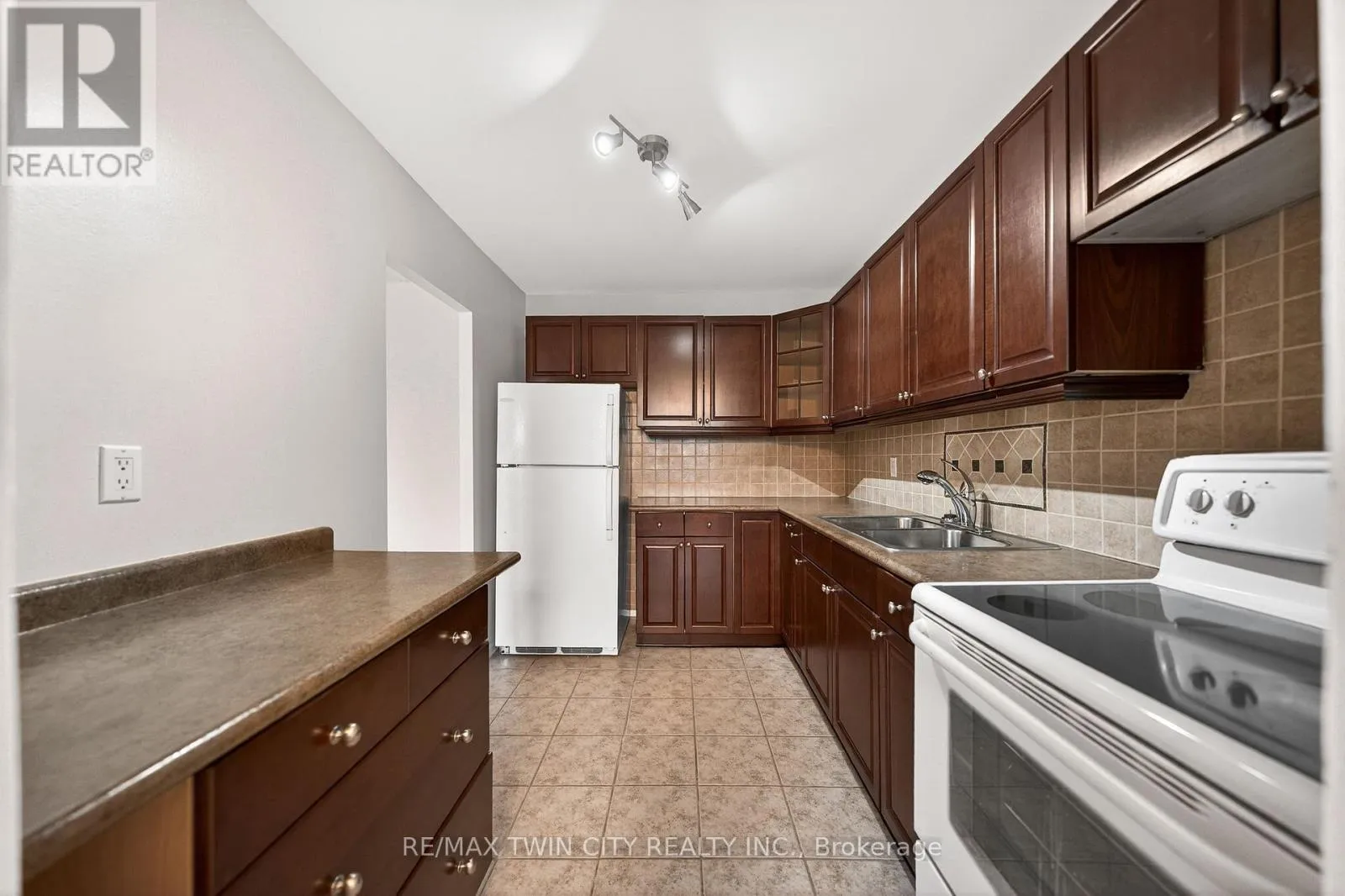 Cross Streets: BLOCK LINE ROAD. ** Directions: HOMER WATSON BLVD TO BLOCK LINE ROAD, THEN COURTLAND AVE E. This is the condo you've been waiting for! Rarely offered in this size & layout-sun-filled, all-inclusive condo living with southwest exposure. Welcome to 605-1100 Courtland Avenue East in Kitchener. Offering approximately 1,195 SF of carpet-free living space, this expansive 2-bedrm condo stands out with its generous proportions, functional layout, & a private balcony spanning the full width of the unit, an ideal extension of your living space to enjoy afternoon sun & evening unwind. The main living area is exceptionally spacious, featuring an open-concept living & dining layout filled with natural light & direct access to the balcony. Updated flooring, modern light fixtures, & a clean, neutral palette create a move-in ready interior that feels both comfortable & elevated. The kitchen is thoughtfully designed with ample cabinetry, tiled backsplash, laminate countertops, & a dedicated coffee bar/prep area, seamlessly connected to the main living space, ideal for both everyday living & entertaining. Both bedrms are generously sized with excellent closet space, complemented by a well-maintained 4-piece bathrm with tub/shower combination, & multiple in-suite storage areas. 1surface parking space is included. Residents enjoy access to a full suite of amenities, including an outdoor pool, sauna, fitness centre, & party rm-offering a low-maintenance, lifestyle-focused living experience. The location is exceptional: steps to the LRT & minutes to Fairview Park Mall, groceries, restaurants, & everyday essentials. Surrounded by parks & recreation including Wilson Park, Vanier Park, Rockway Gardens & Golf Course, & the Activa Sportsplex. Close to Chicopee Ski & Summer Resort, Grand River Hospital, & a range of public & Catholic schools, with quick HWY/401 access. Condo fees include heat, hydro, water, & building amenities-delivering true all-inclusive living with predictable monthly costs & minimal upkeep. Spacious, bright, & well-located-this is condo living done right. (id:27476)